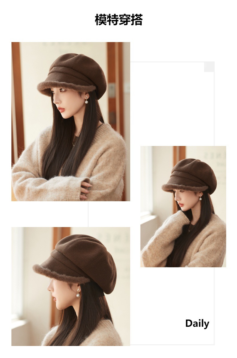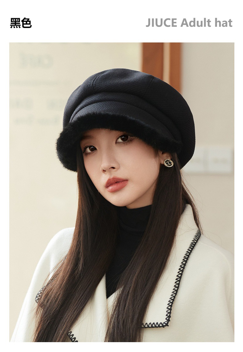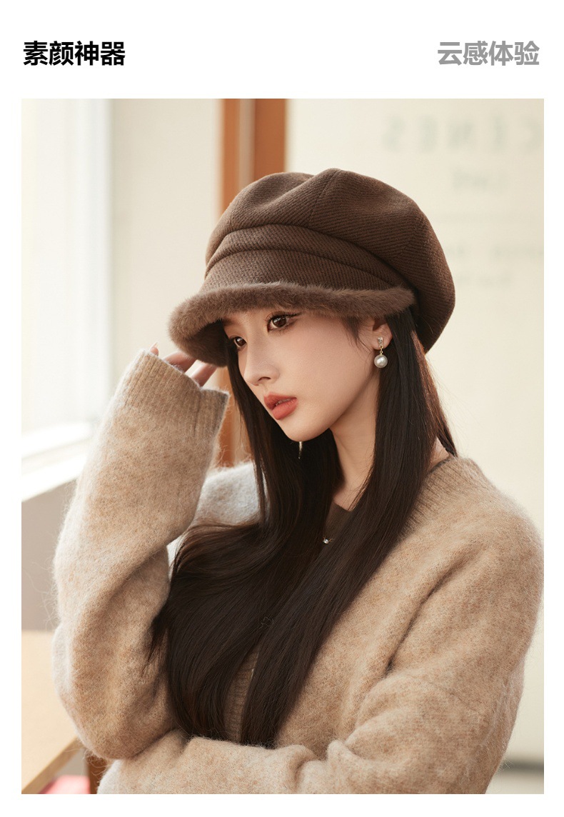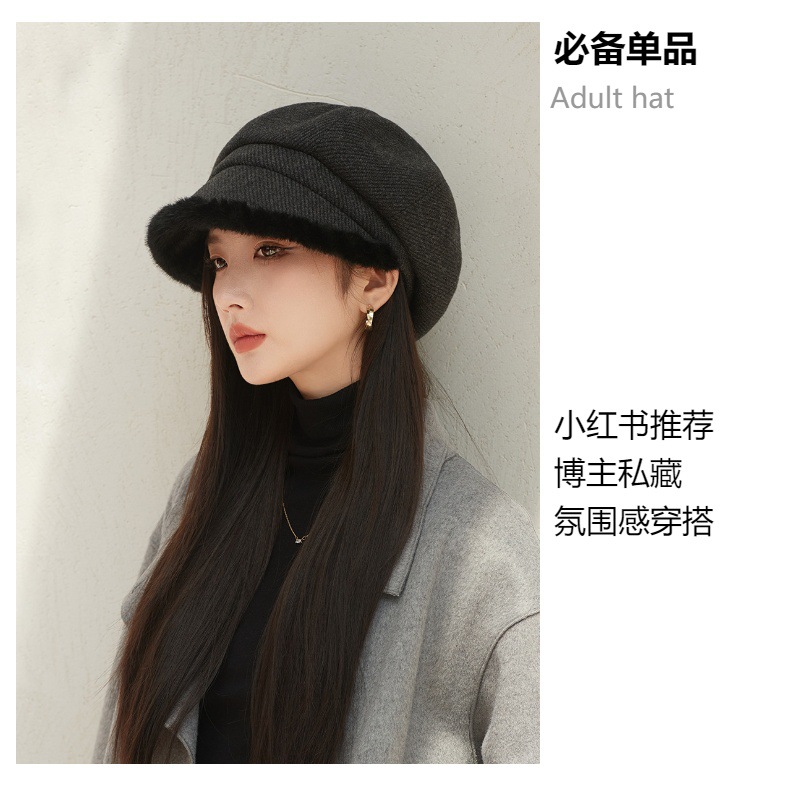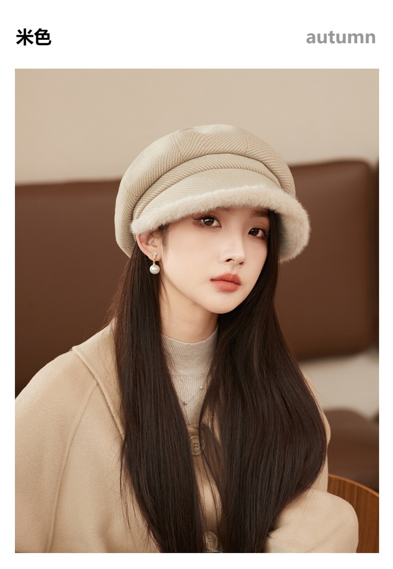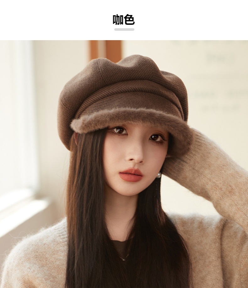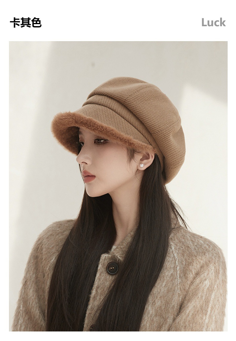 Sombrero de borde de peluche grueso, sombrero de ocho ángulos, sombrero de pintores de color sólido, sombrero de invierno y otoño japonés, sombrero de niños de alta calidad, moda