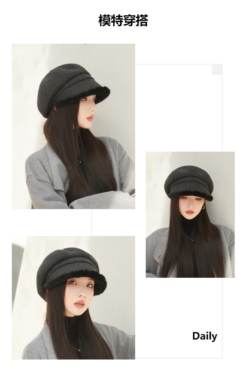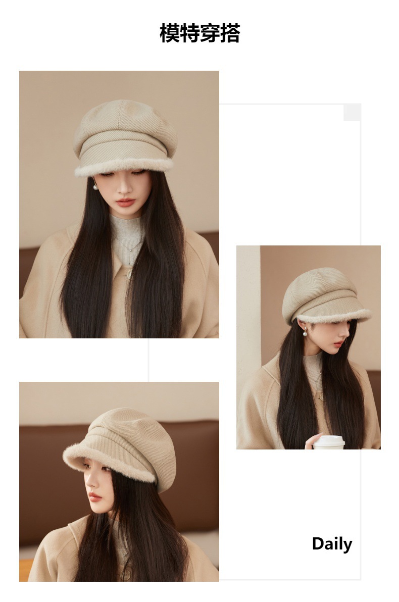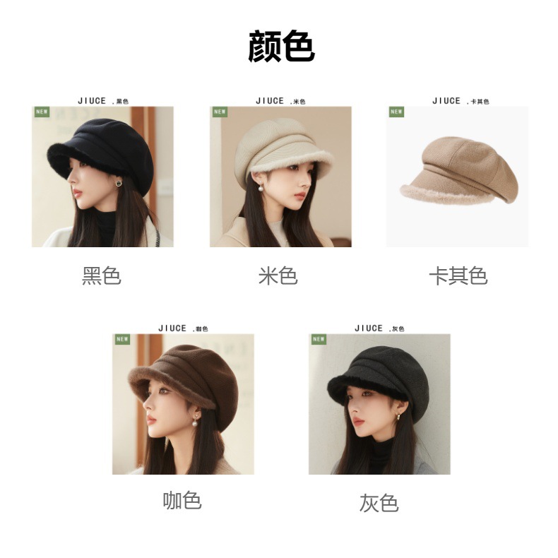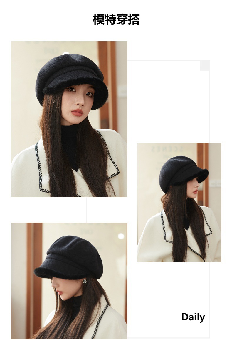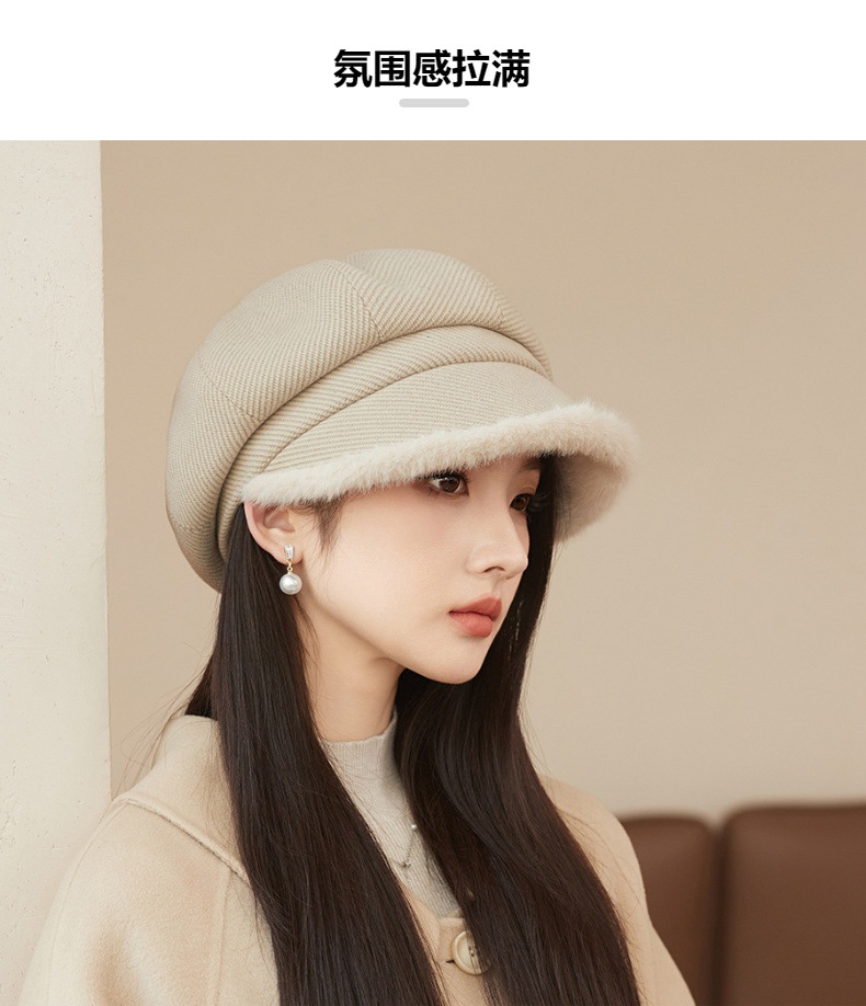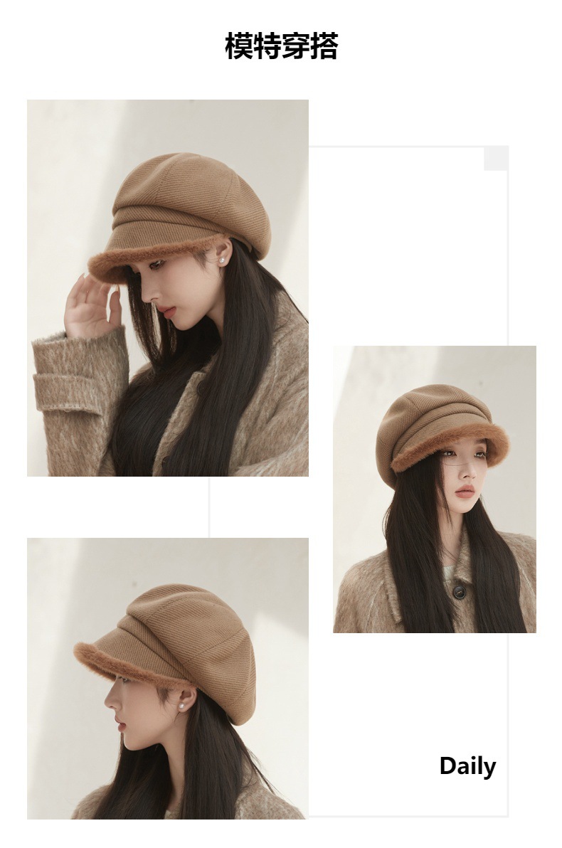 Sombrero de borde de peluche grueso, sombrero de ocho ángulos, sombrero de pintores de color sólido, sombrero de invierno y otoño japonés, sombrero de niños de alta calidad, moda