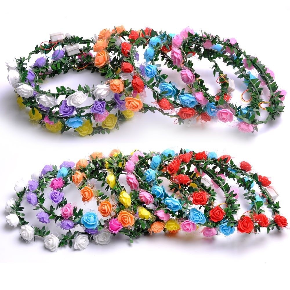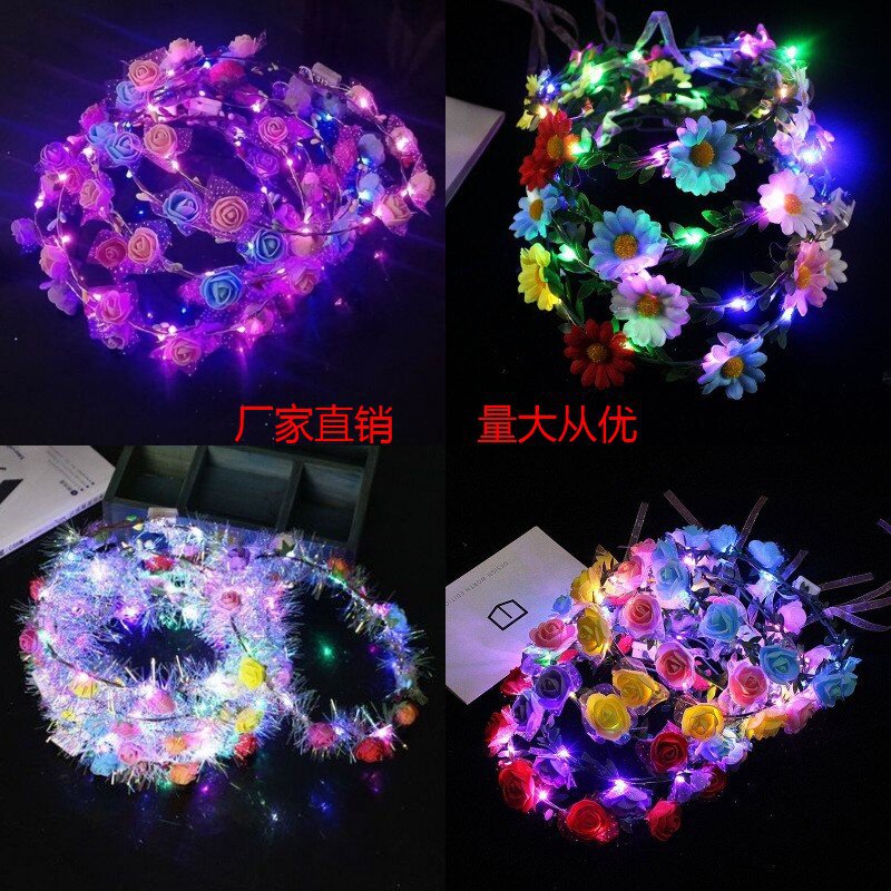 Corona de flores retro luminiscente, anillo de luz de caña, espuma de flores, tocado flash, venta al por mayor en Amazon