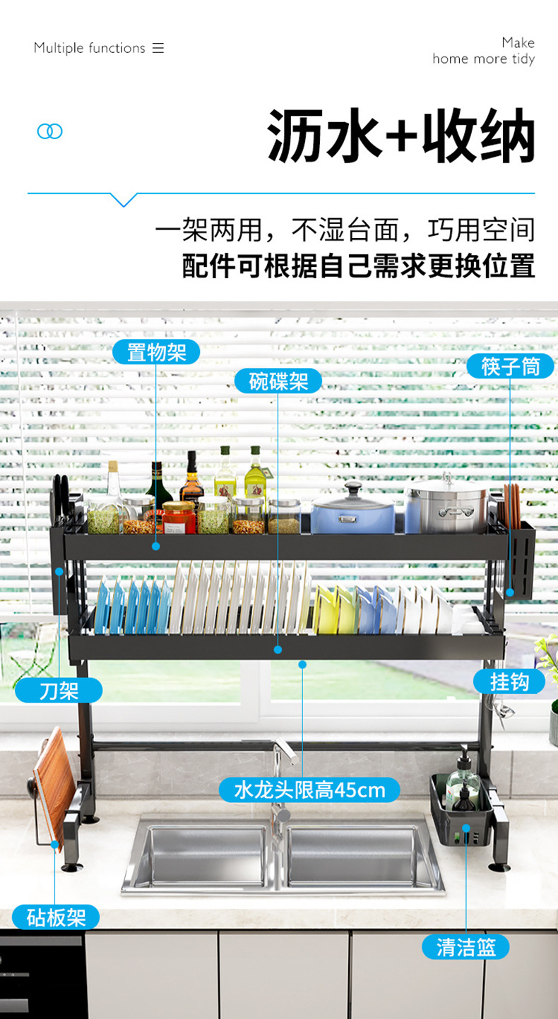 Fregadero escurrir rack de cocina de acero inoxidable escurrir retráctil plato estante de almacenamiento rack fregadero