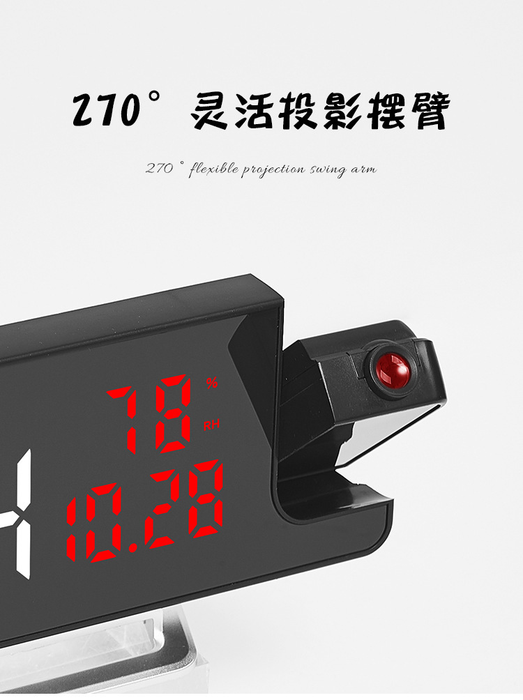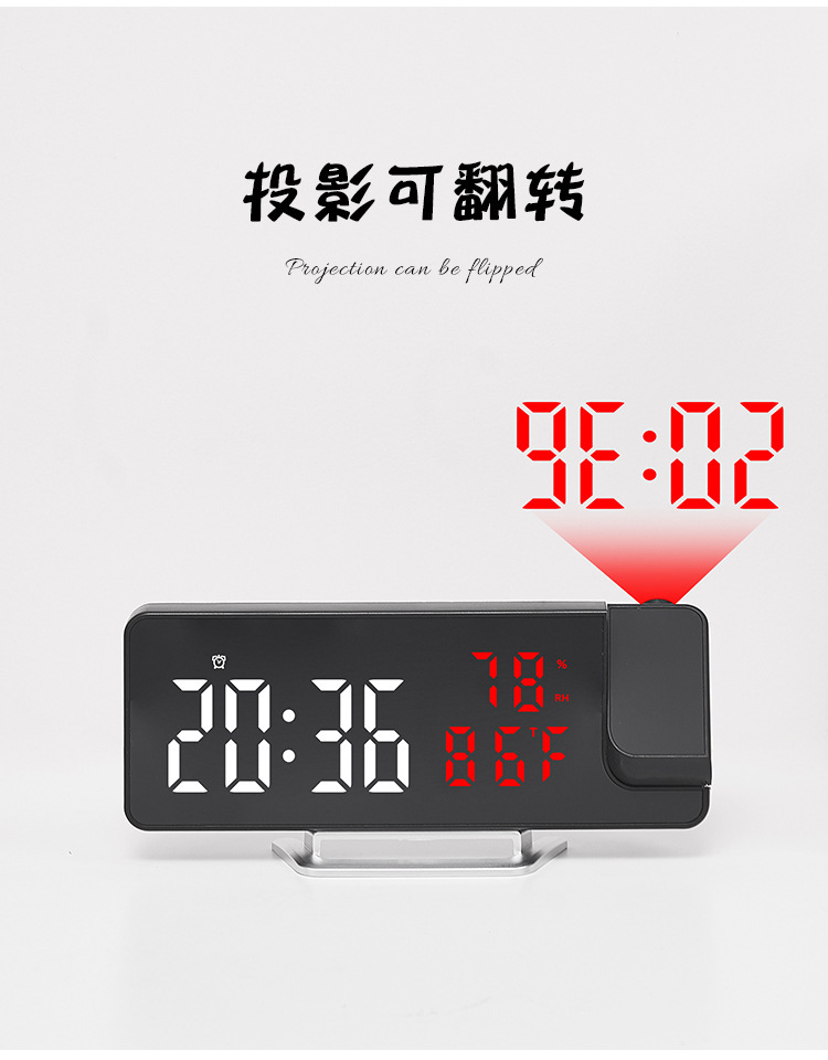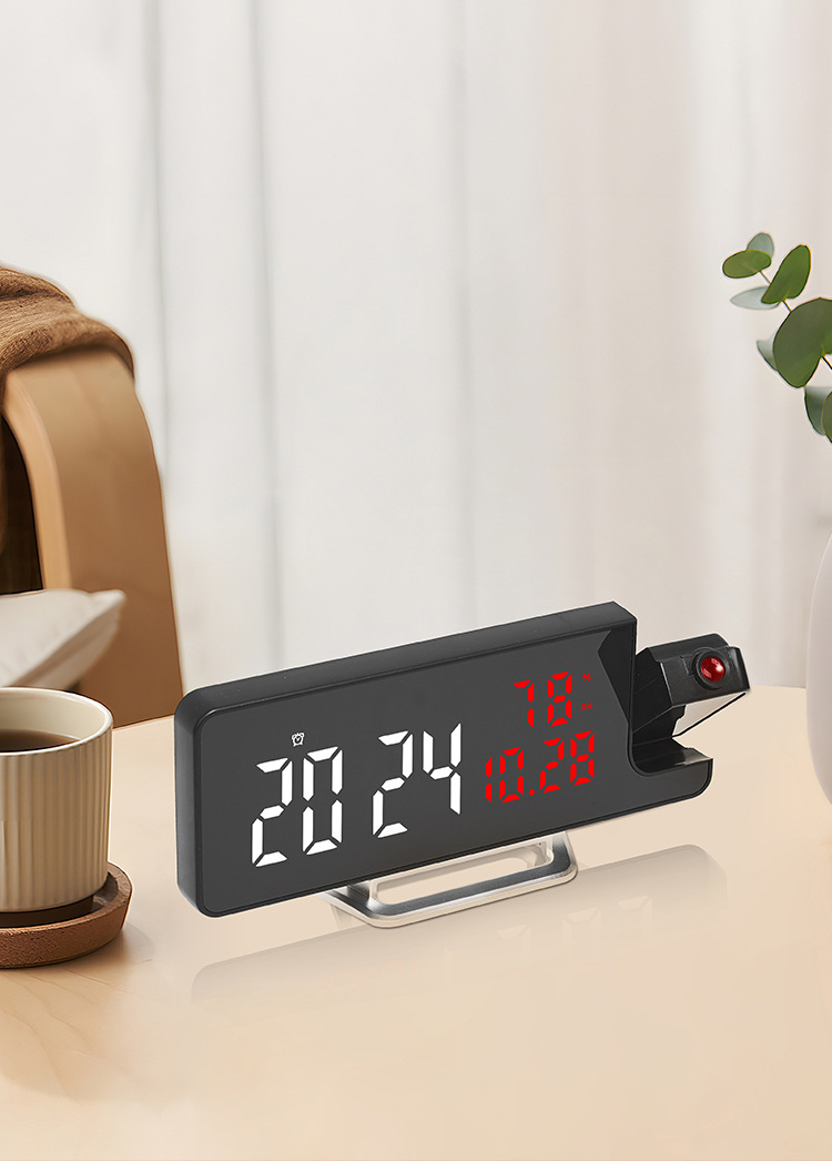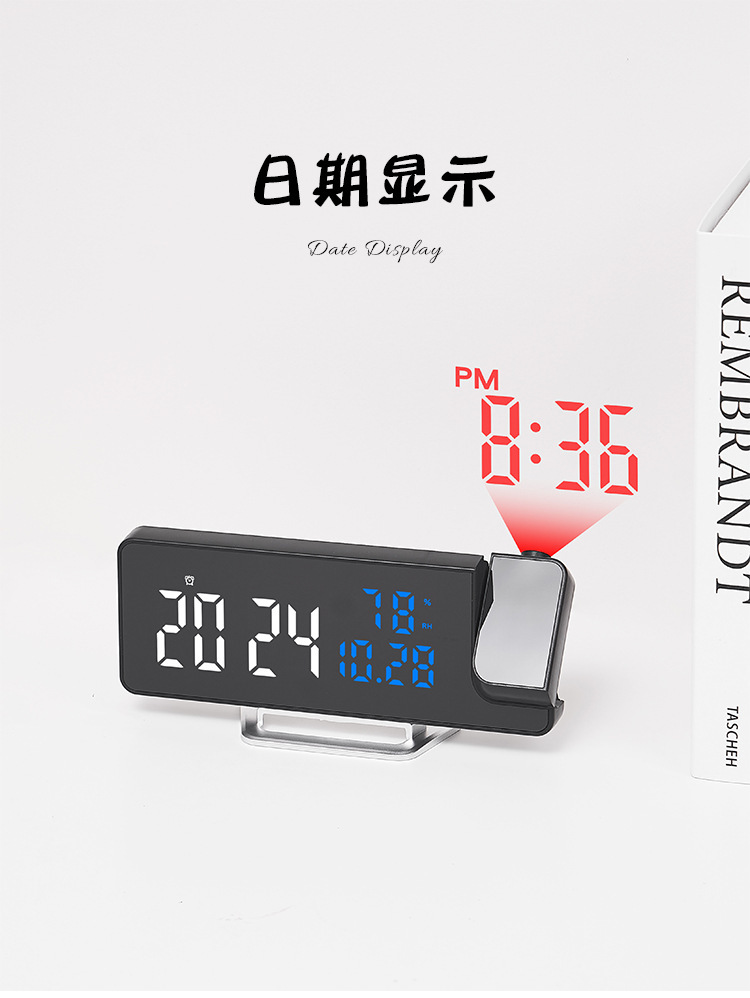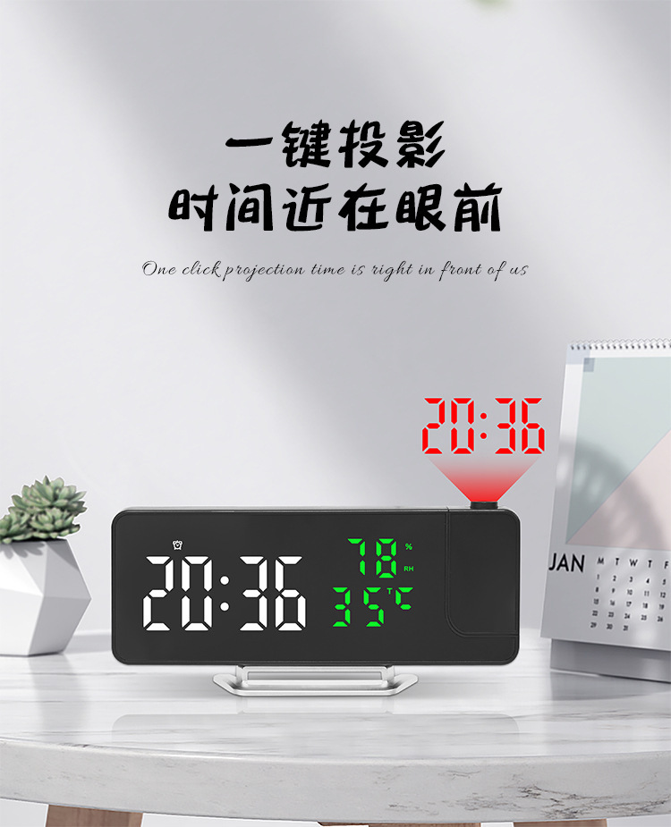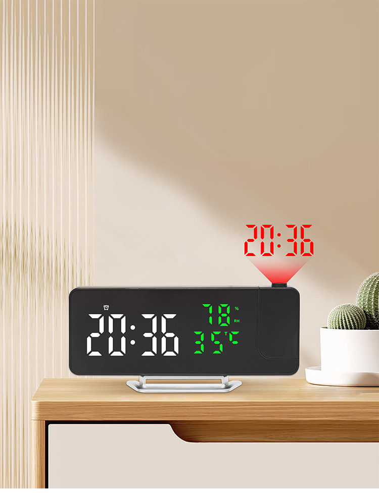 Reloj despertador multifunción LED con espejo, proyección de temperatura y humedad, modelo 675 para comercio transfronterizo.