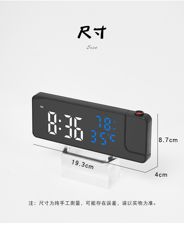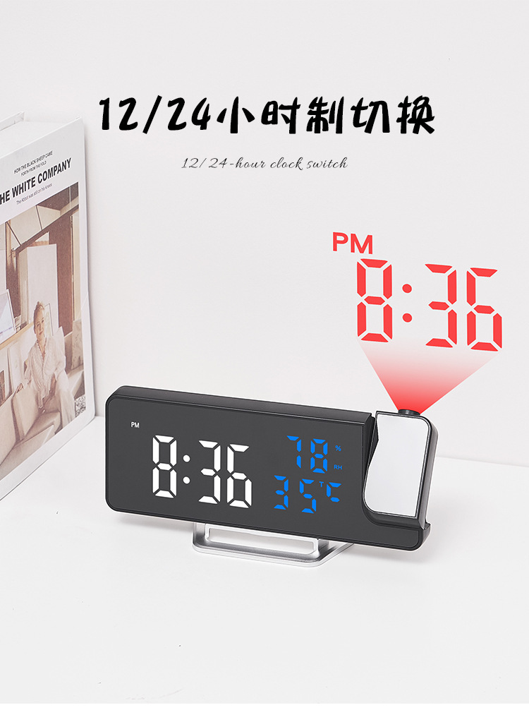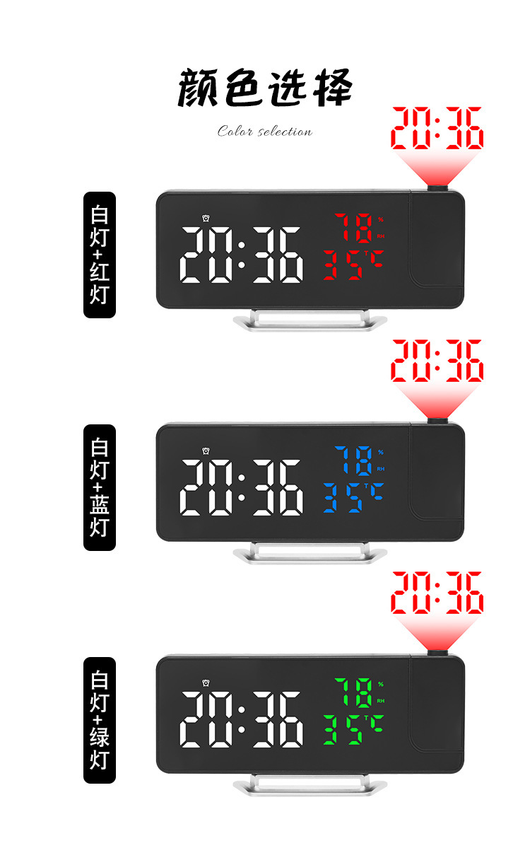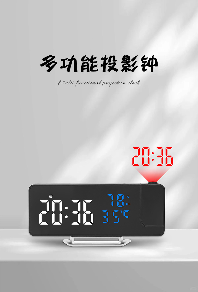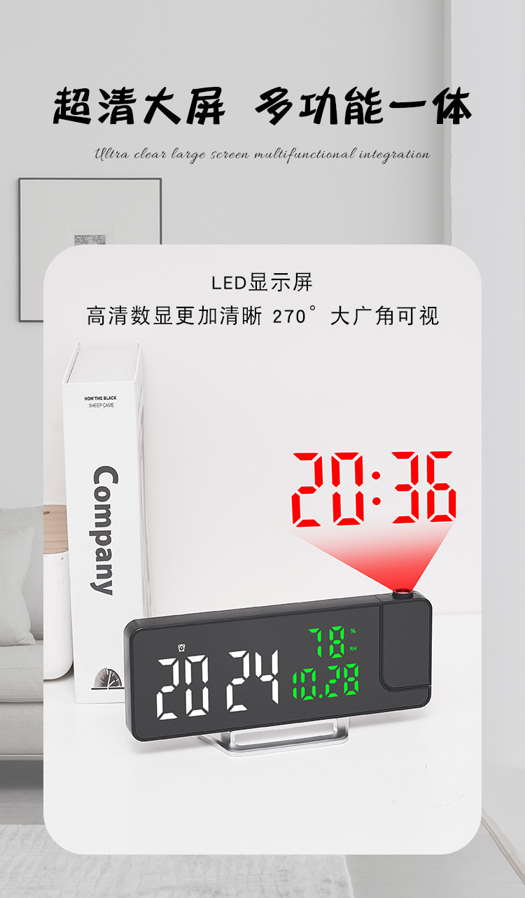 Reloj despertador multifunción LED con espejo, proyección de temperatura y humedad, modelo 675 para comercio transfronterizo.