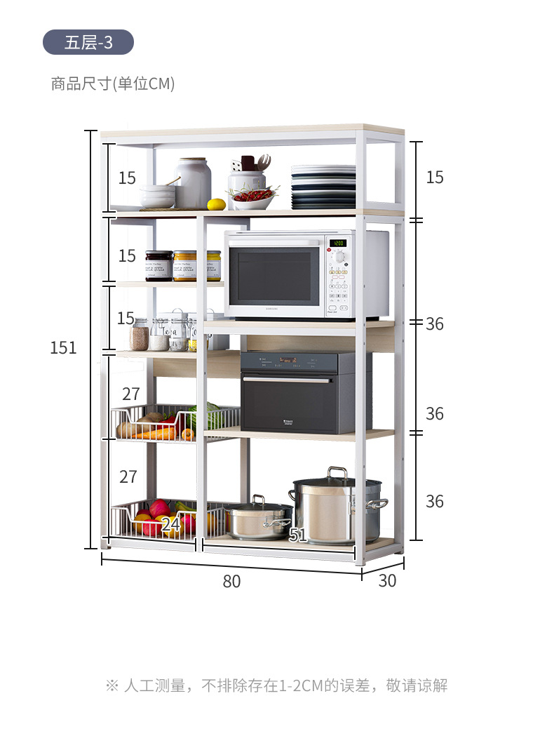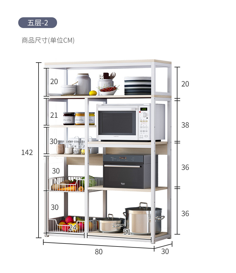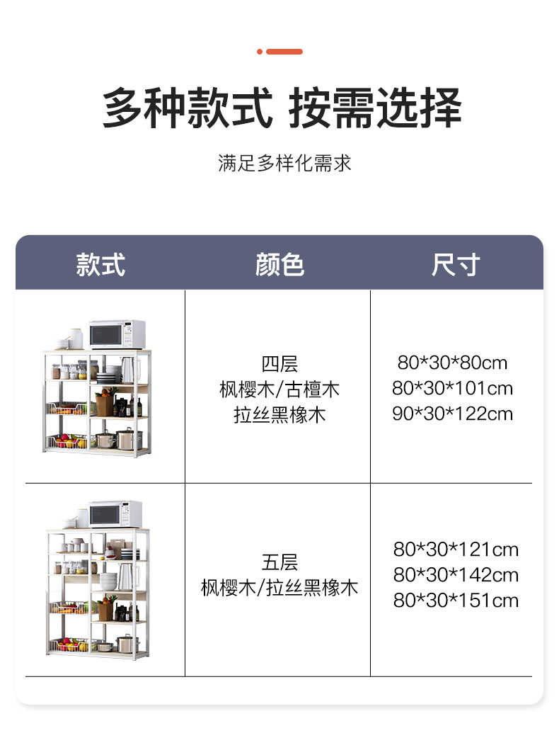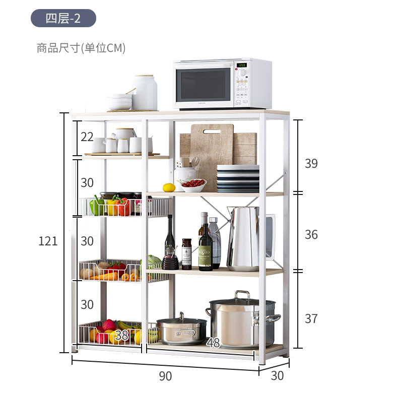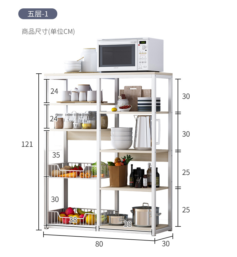 Estante de almacenamiento de cocina de pie multicapa, gabinete completo multifuncional para microondas, para el hogar.