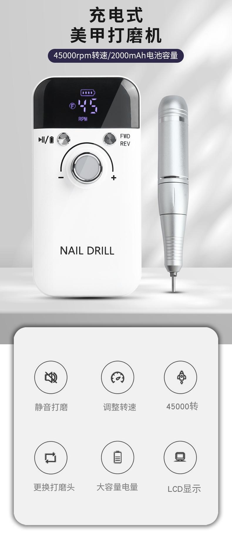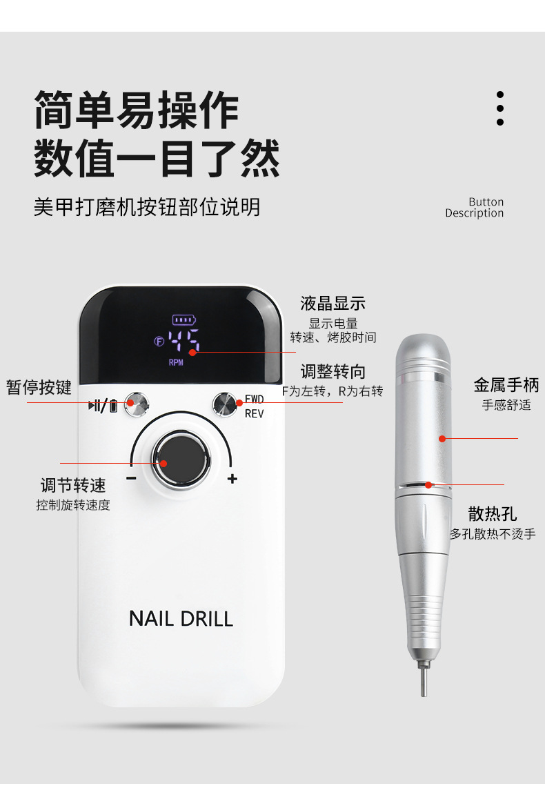 Portátil de larga resistencia de uñas máquina de pulir eléctrico removedor de uñas salón de uñas especial pequeño removedor de uñas transfronterizo