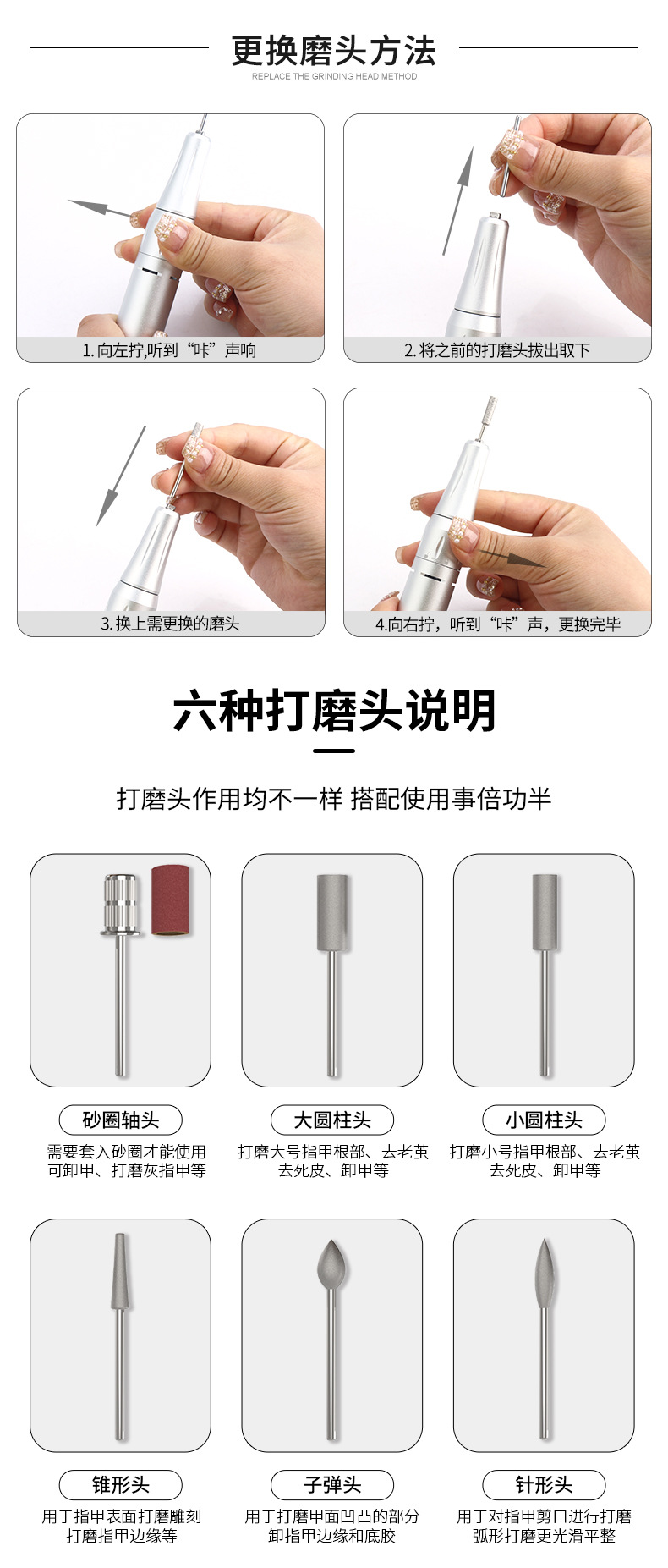 | Especificaciones | V-6B/lijadora de almacenamiento/blanca,Juego de 5 piezas de V-6BT/lijadora de almacenamiento/blanco (color de pincel aleatorio),V-6F/lijadora de almacenamiento/rosa,Juego de 5 piezas de V-6FT/lijadora de almacenamiento/rosa (color de pincel aleatorio),V-6Z/lijadora de almacenamiento/púrpura colorido,Juego de 5 piezas de V-6ZT/lijadora de almacenamiento/púrpura colorido (color de pincel aleatorio) |