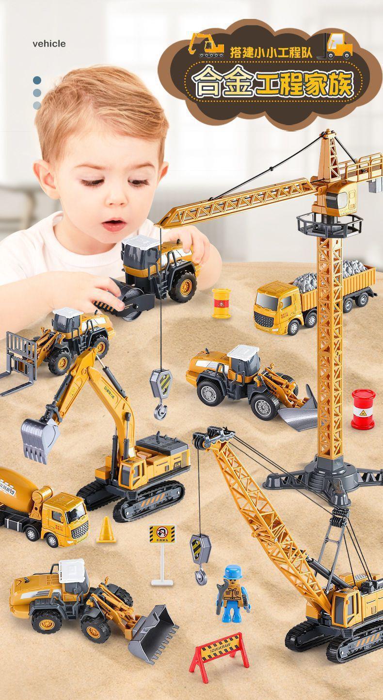 Vehículo de ingeniería de aleación excavadora grúa bulldozer transporte camión gran camión mezclador de cemento grúa rodadora camión juguetes