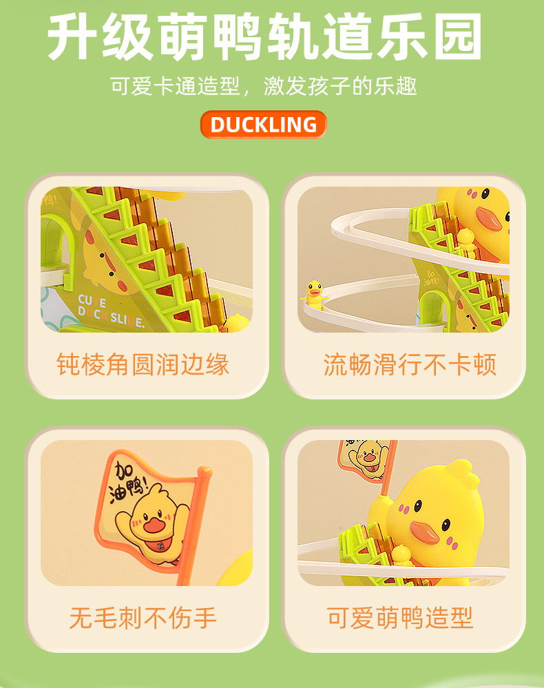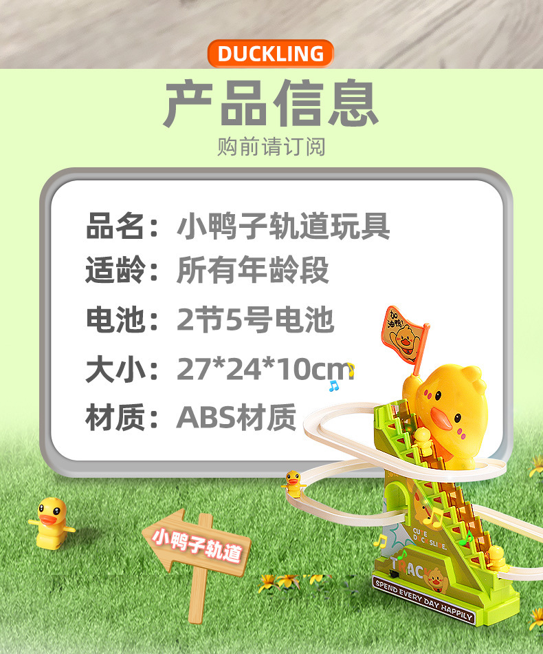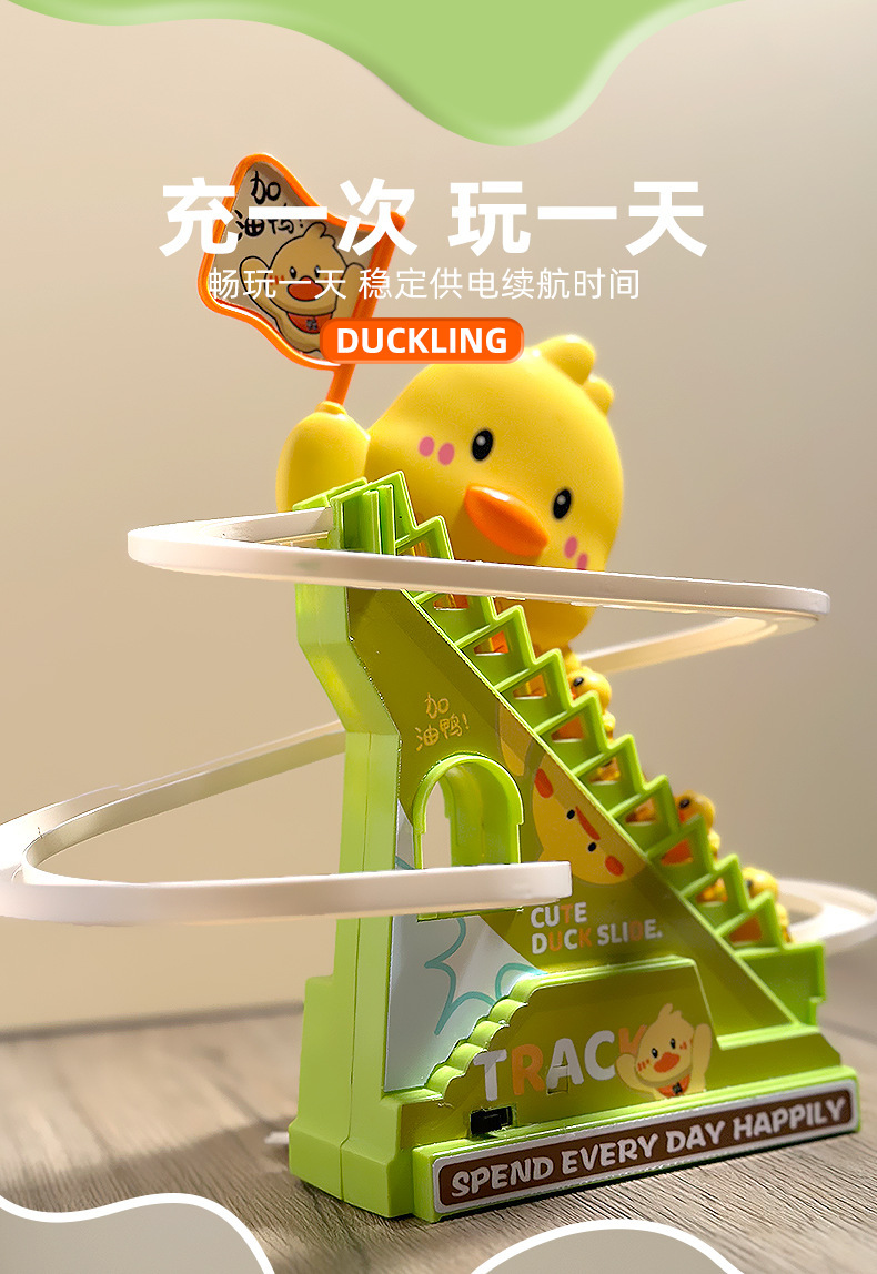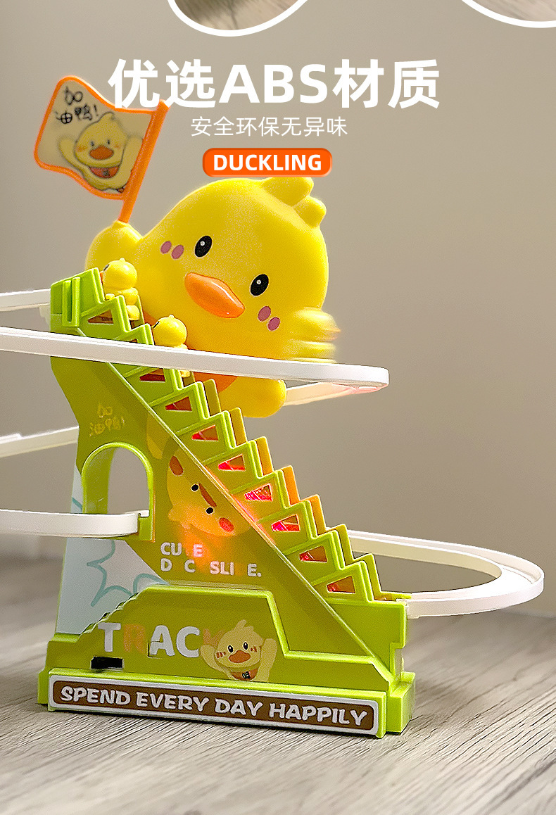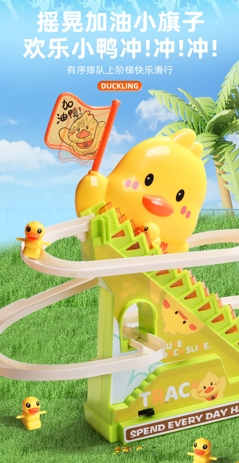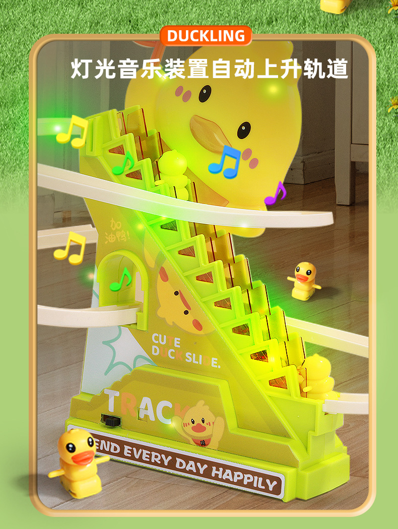 Douyin mismo tipo de patito sube automáticamente las escaleras, vagón de ferrocarril eléctrico, juguete de diapositiva de pato amarillo educativo para niños