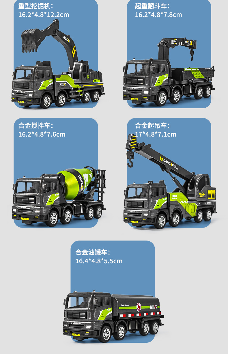 Niños mezcladores excavadoras inerciales grúa de aleación camión de ingeniería camión volquete juguetes al por mayor puestos transfronterizos