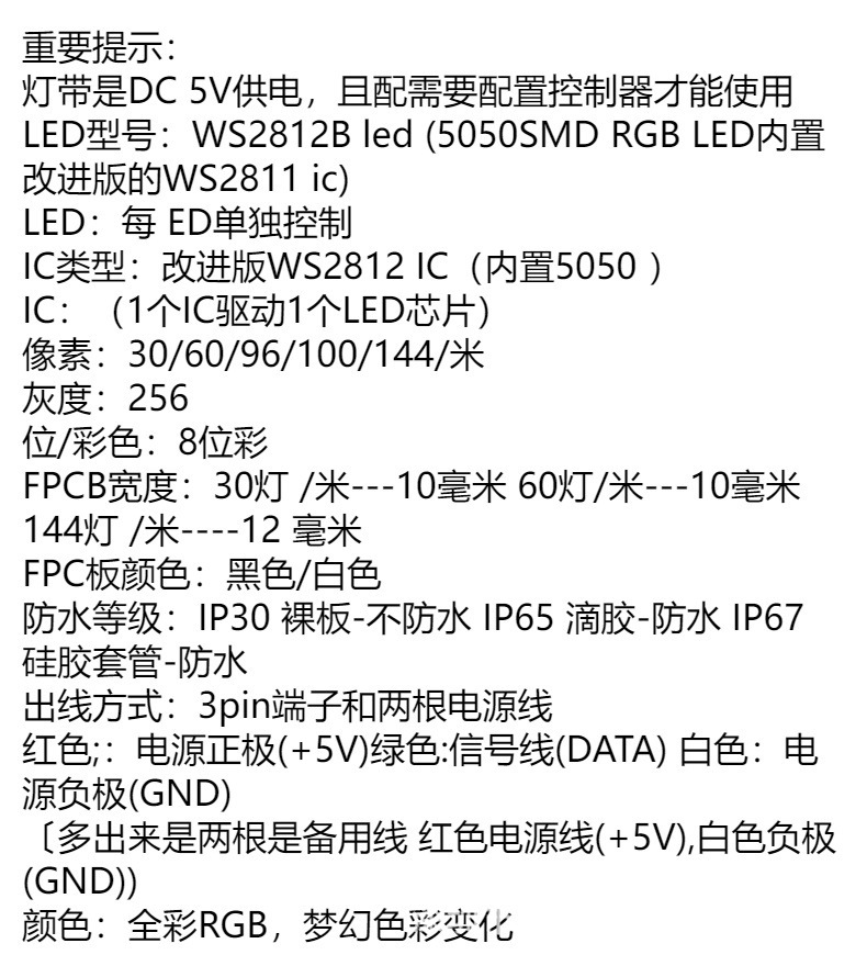 Lámpara LED Symphony con banda de marquesina RGB a todo color IC incorporada 30/60/144 luz DC5V control de un solo punto WS2812b
