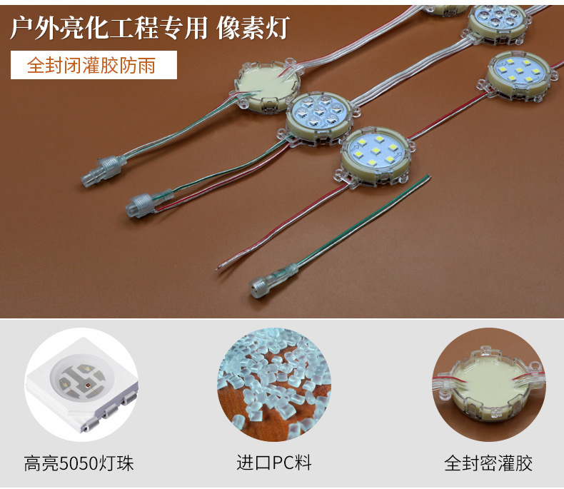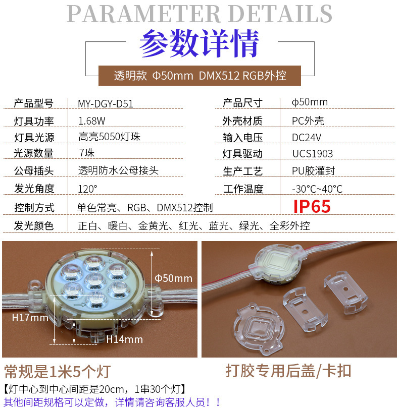 Fuente de luz puntual LED a todo color marquesina colorida RGB letrero borde control interno programación control externo burbuja de bola impermeable 5 cm