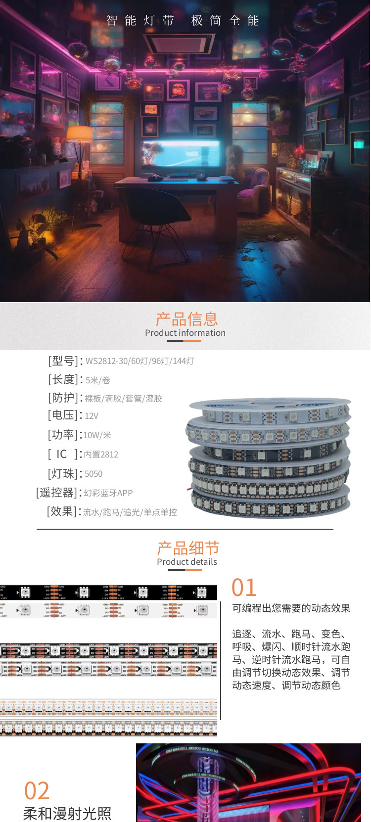 WS2812B lámpara de color deslizante con barra de lámpara de caballo 5050 colorido IC5V placa estrecha 5.5 ancho 90144 tipo de lámpara