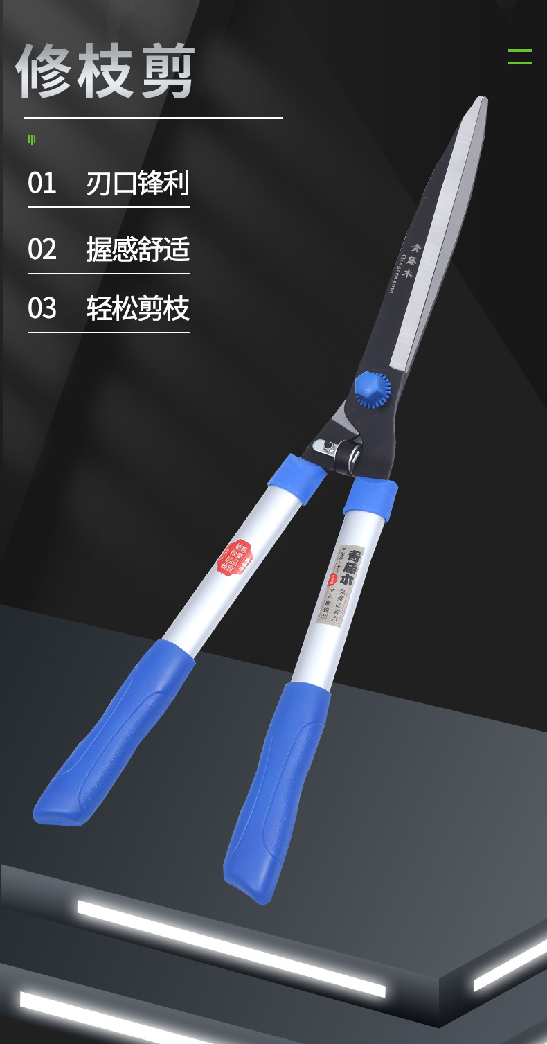 Tijeras de césped de jardín de vid verde Tijeras de acebo Tijeras de aleación de aluminio Fábrica en stock Tijeras de césped de jardín verde
