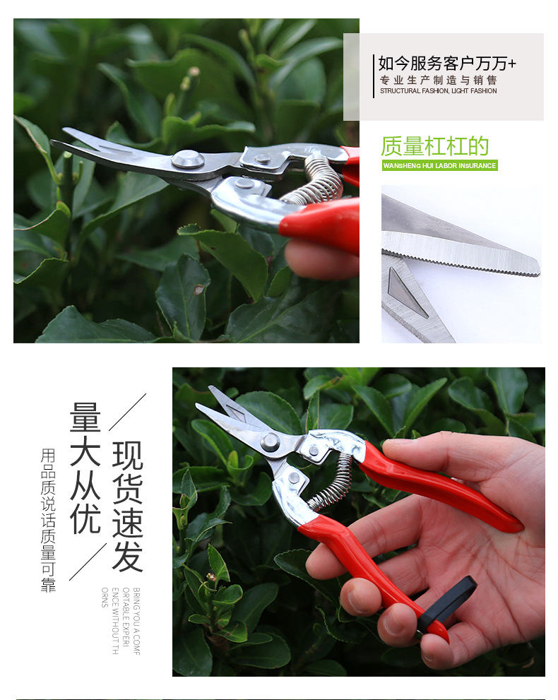 Fábrica de tijeras de ramas de acero inoxidable en stock huerto recoger tijeras de ramas de árboles frutales herramientas de bonsai cortar verduras y frutas tijeras
