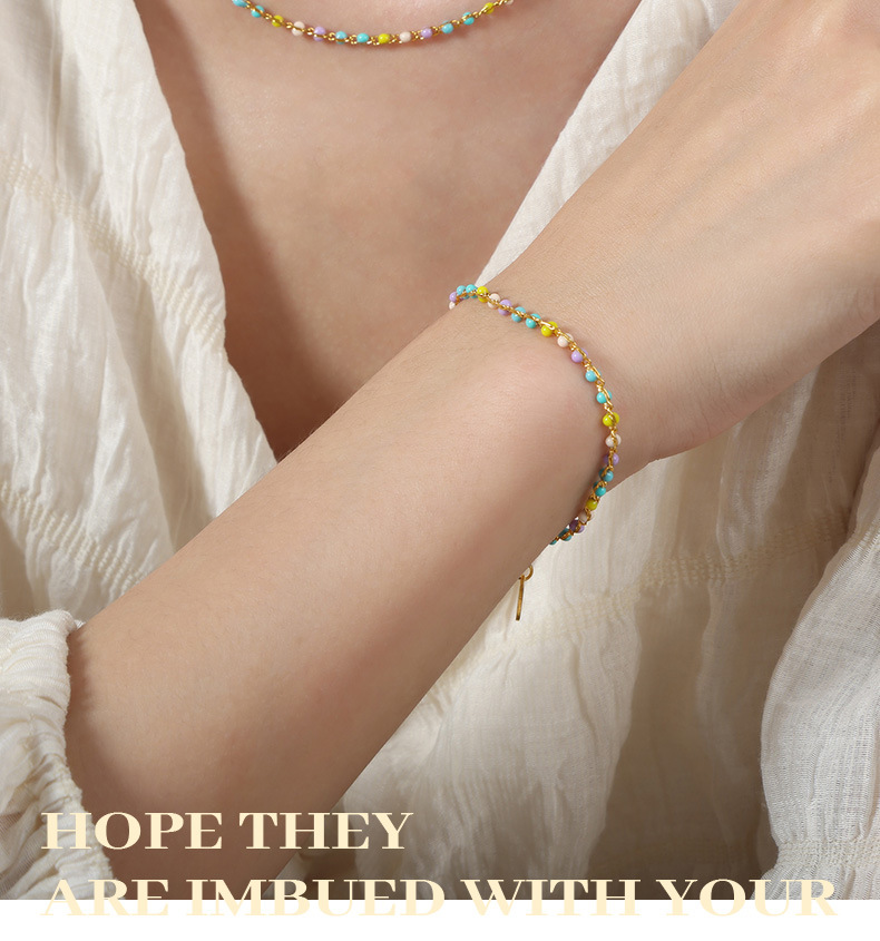 Luz de lujo personalidad nicho color eje colorido goteo collar de aceite de titanio acero todo fósforo de hadas temperamento pulsera joyería de moda para las mujeres