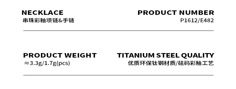 | Color | Pulsera E482-steel-14 + 5cm,Pulsera de E482-gold-14 + 5cm,Pulsera acero esmaltado E482-black-14 + 5cm,E482-black esmalte pulsera de oro-14 + 5cm,Pulsera de acero esmaltado E482-green-14 + 5cm,Pulsera de oro esmalte E482-green-14 + 5cm,Pulsera acero esmaltado E482-brown-14 + 5cm,Pulsera de oro esmalte E482-brown-14 + 5cm,Collar P1612-gold-40 + 5cm,Collar P1612-Steel-40 + 5cm,Collar de Acero Esmaltado P1612-black-40 + 5cm,P1612-Black esmalte collar de oro-40 + 5cm,Collar de Acero Esmaltado P1612-green-40 + 5cm,Collar de oro esmalte P1612-green-40 + 5cm,Collar de Acero Esmaltado P1612-brown-40 + 5cm,P1612-brown esmalte collar de oro-40 + 5cm |