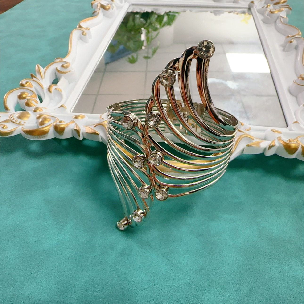 Europa y los Estados Unidos lujosos transfronterizos de diamantes metálicos de diamantes huecos brazalete de ala de moda simple pulsera de alta calidad al por mayor