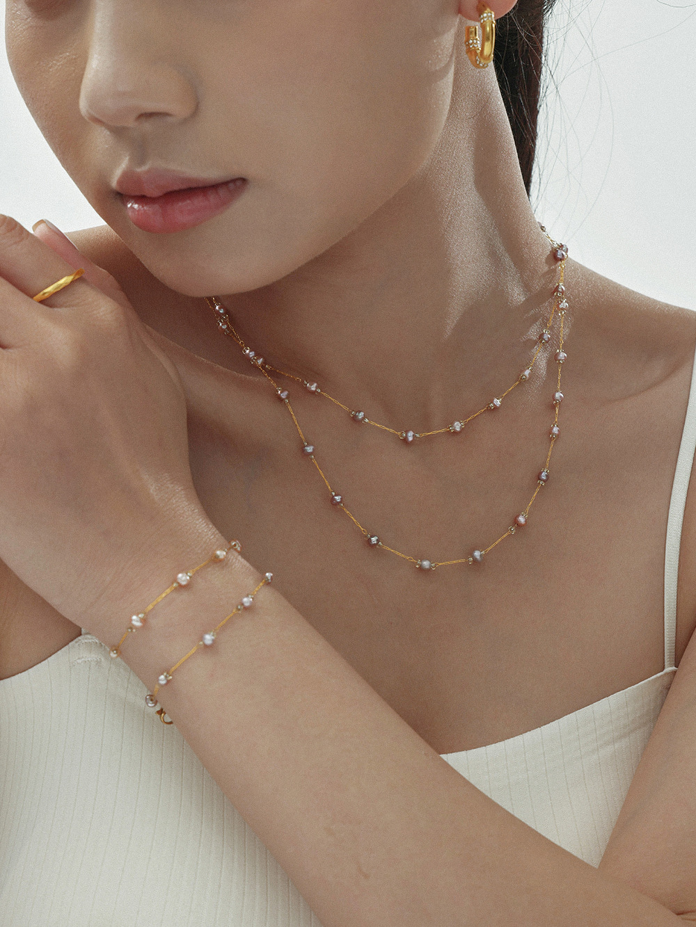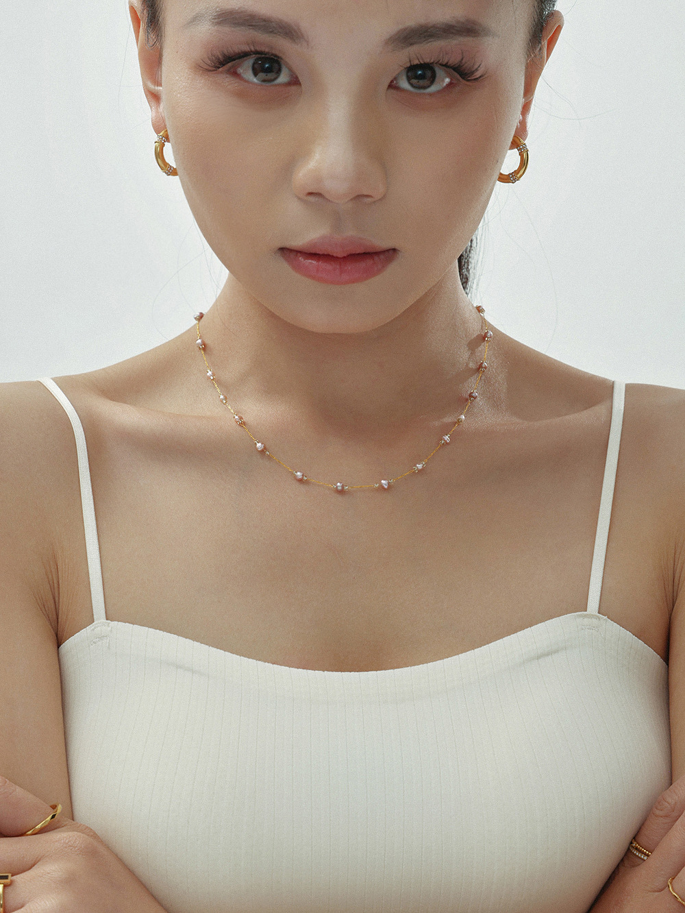 Collar de perlas de agua dulce ligero de lujo natural, calidad rara, collar rosa sin marcas, conjunto áspero en stock para mujeres