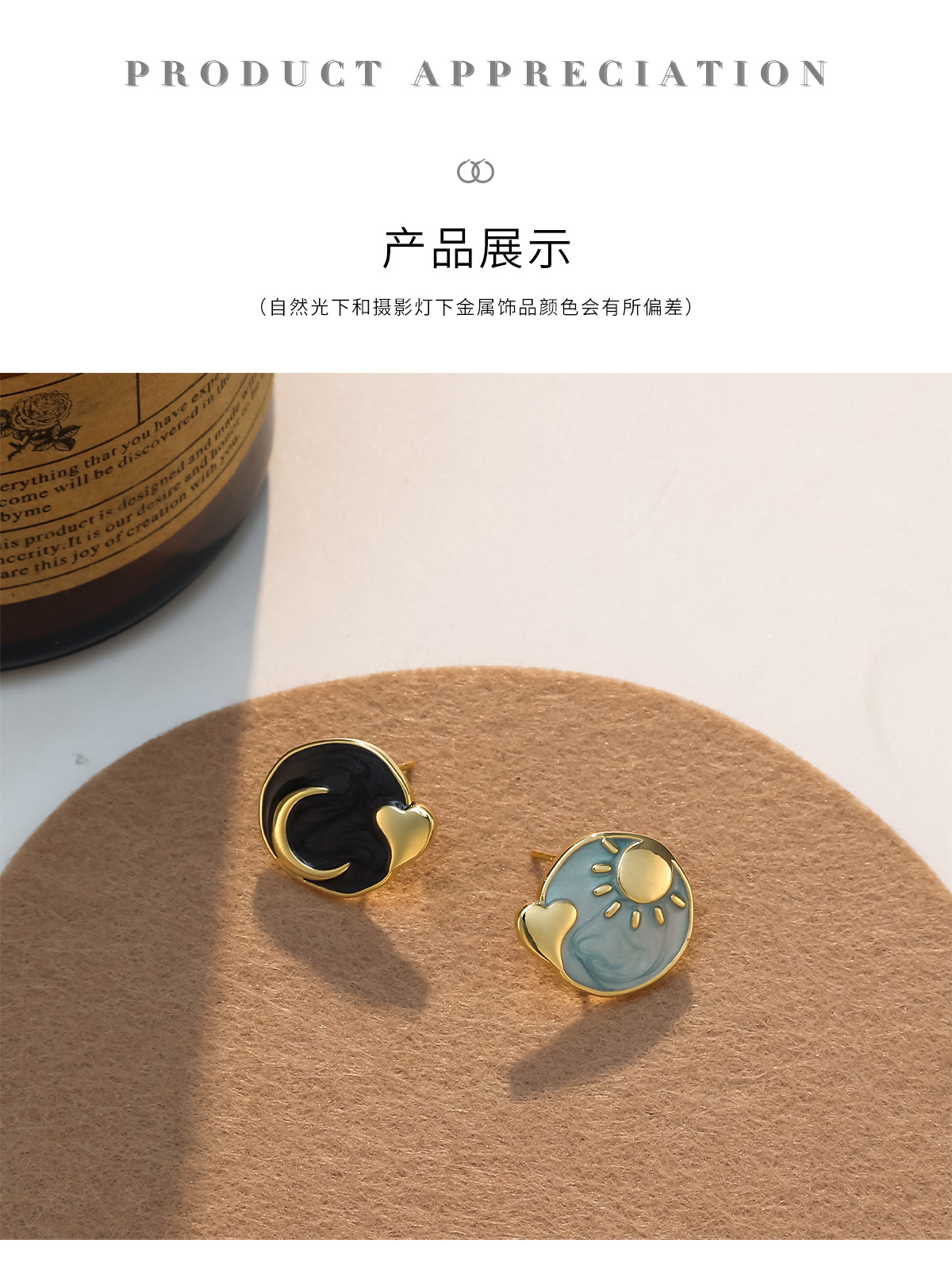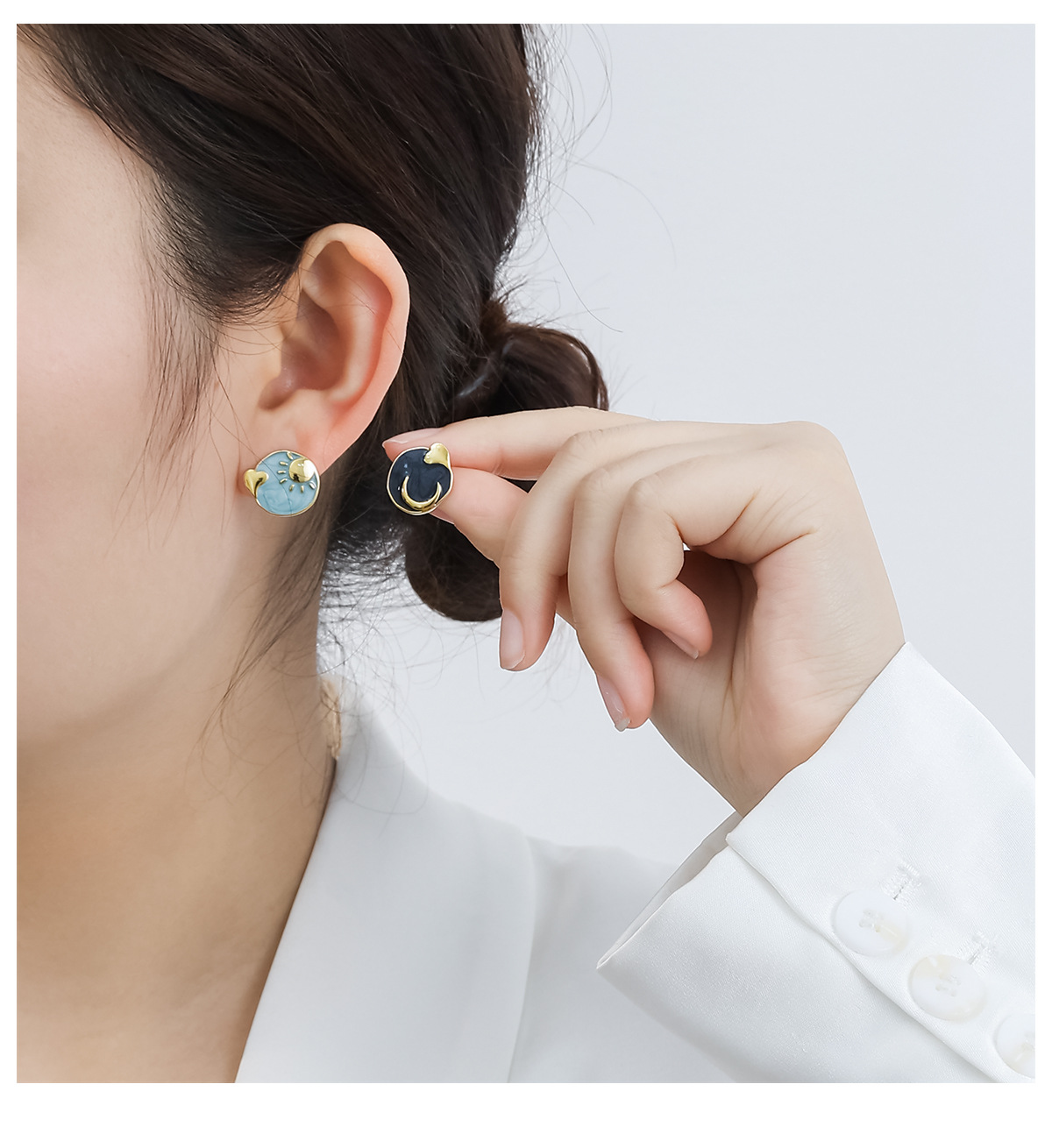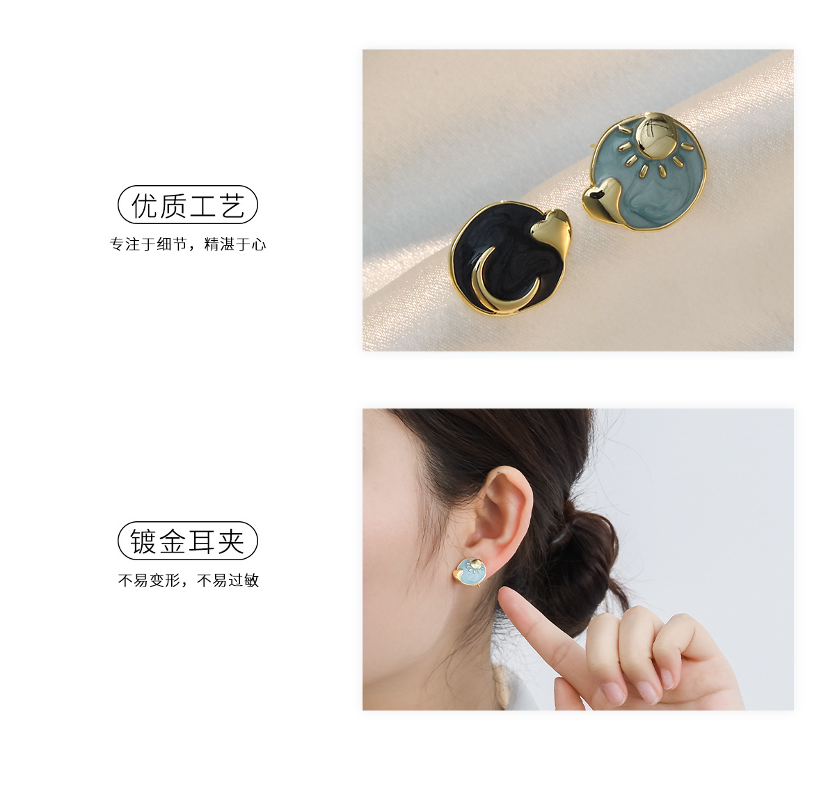 Pintura al óleo mosquito bobina oreja clip hembra sin perforado francés retro sol Luna tachona temperamento pendientes encantadores al por mayor