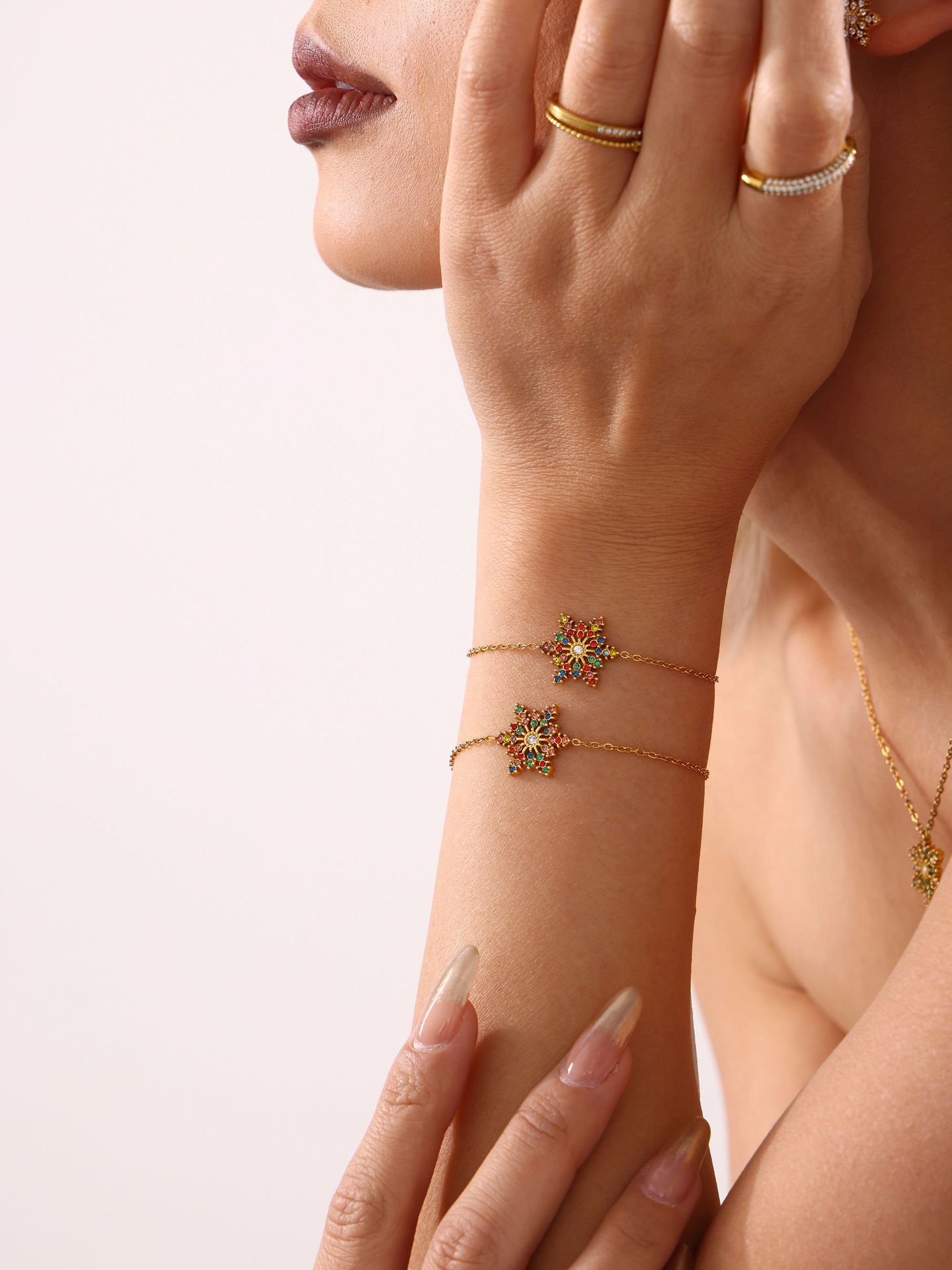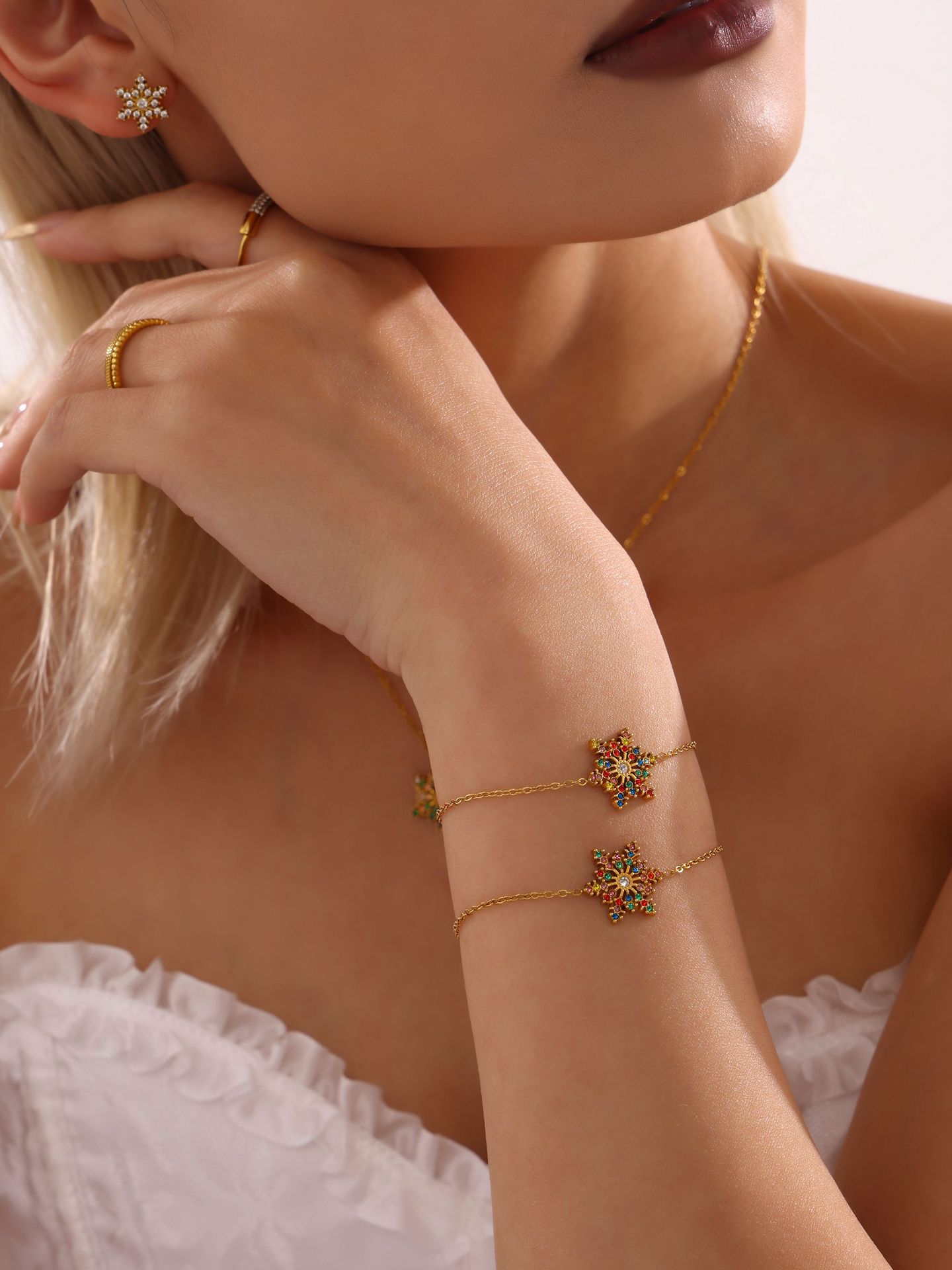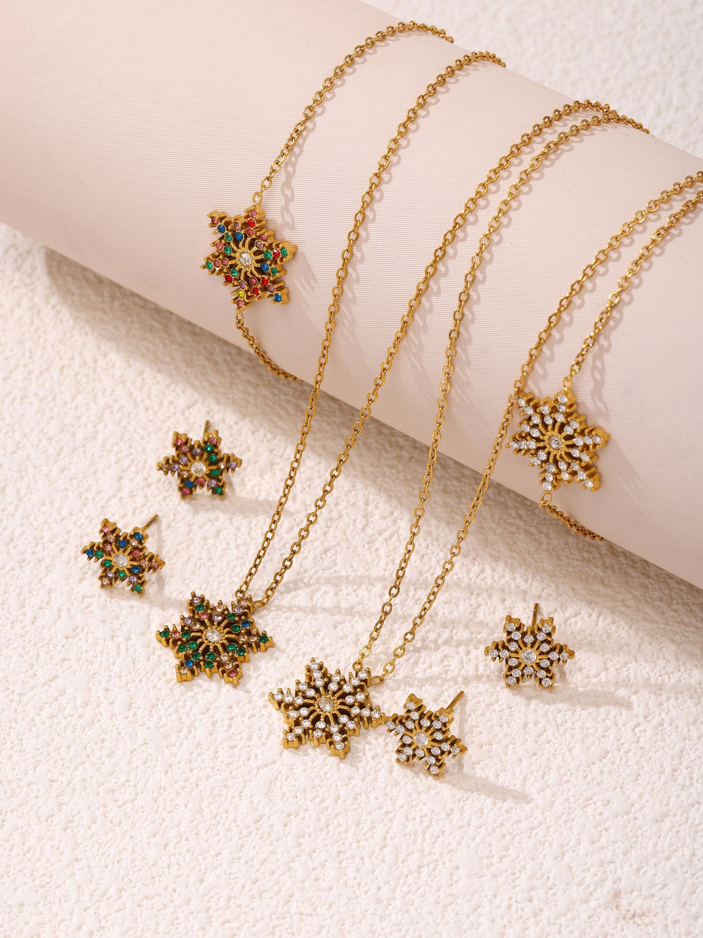 Collar de nieve de zircón colorido, pulsera, ajuste de pernos de orejas de acero de titanio, joyas de diamante no se desvanecen en stock