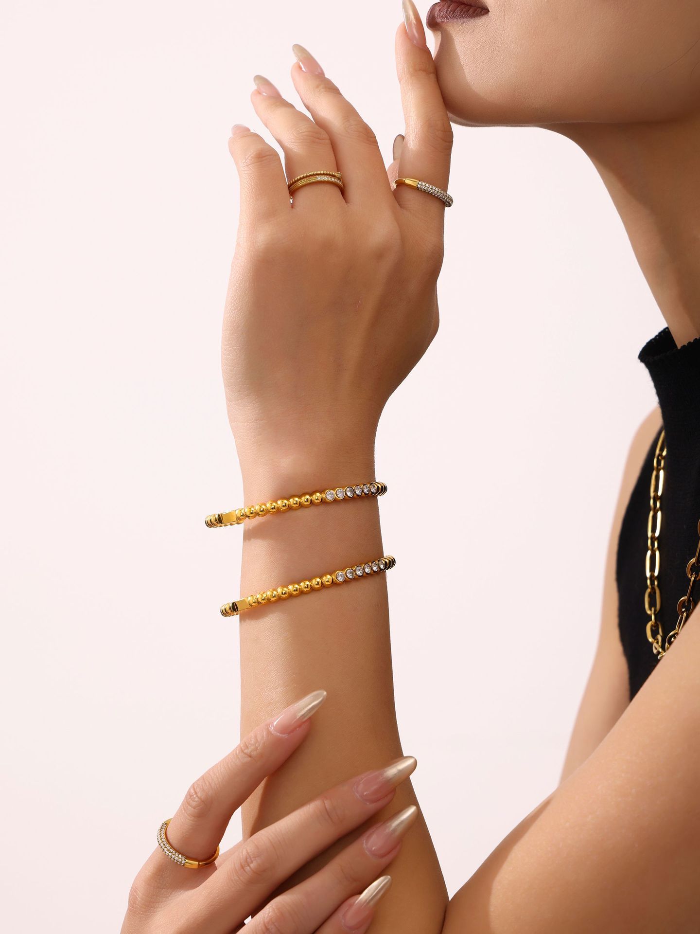 Brazalete de diamante de zircón de diamante de Zhengyu T, brazalete de acero inoxidable incrustado a mano en Europa y Estados Unidos, simple y ligera, pulsera de lujo transfronteriza