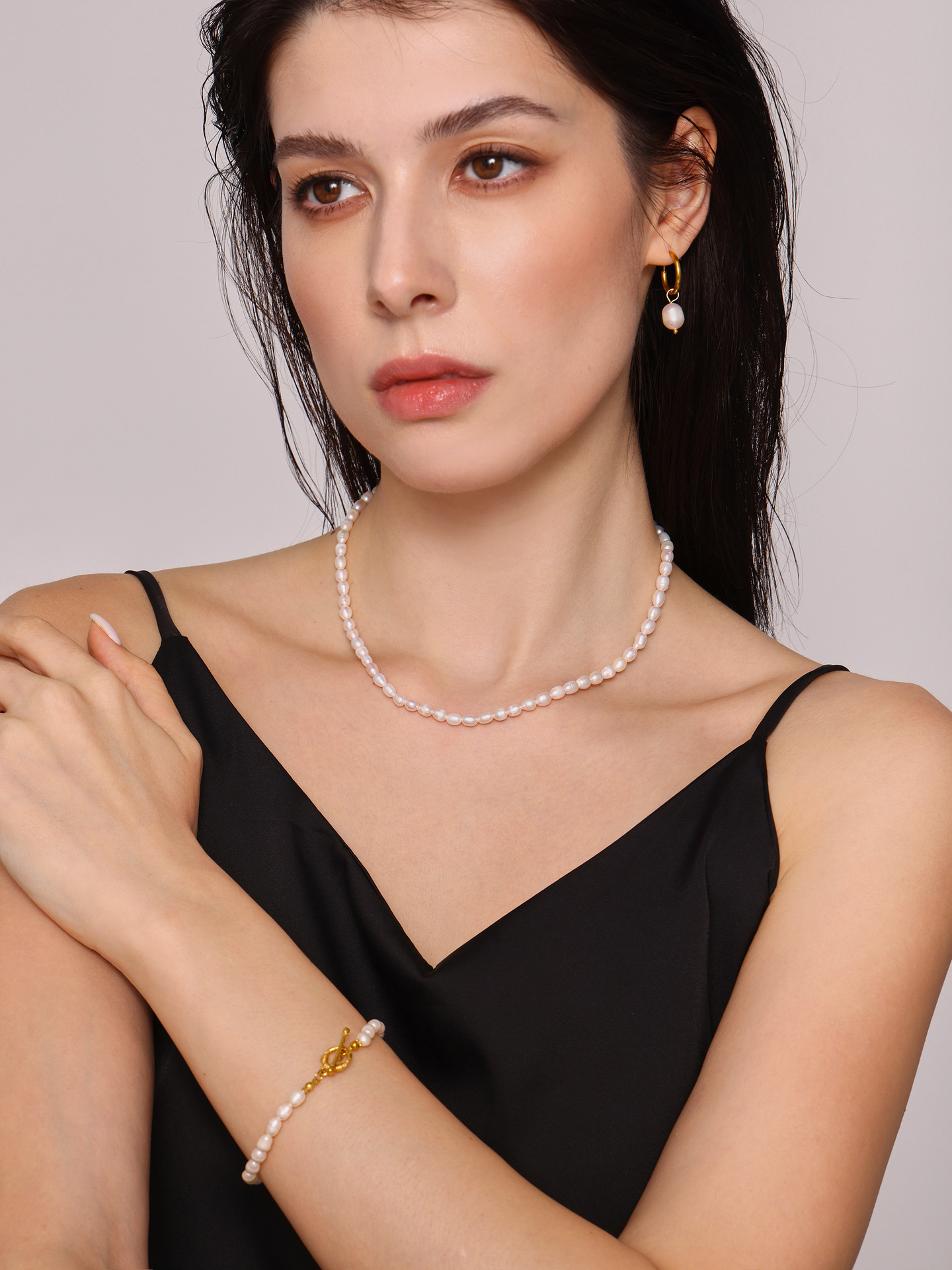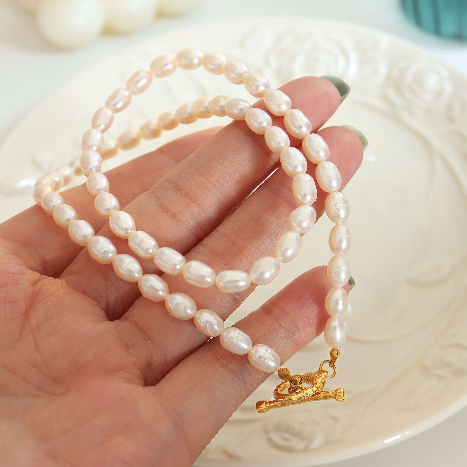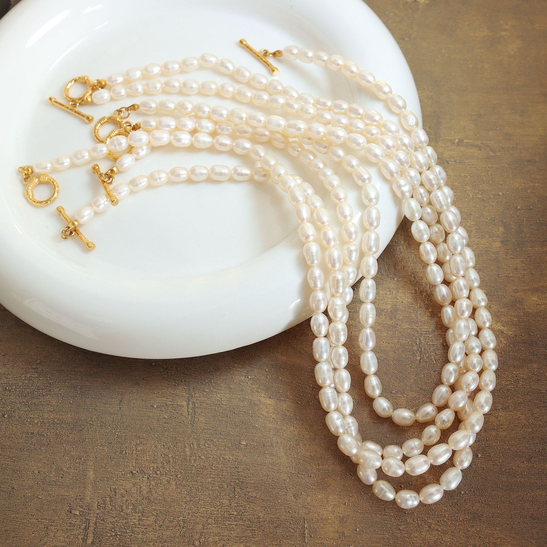 Qiangyan Barroco agua fresca collar de perlas pulseras pendientes nicho dulce viento conjunto de regalos de novia al por mayor