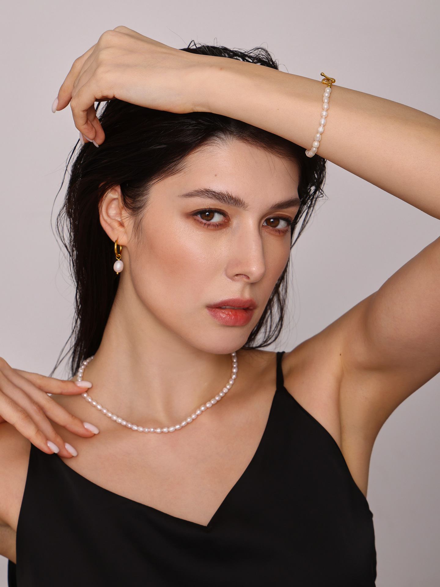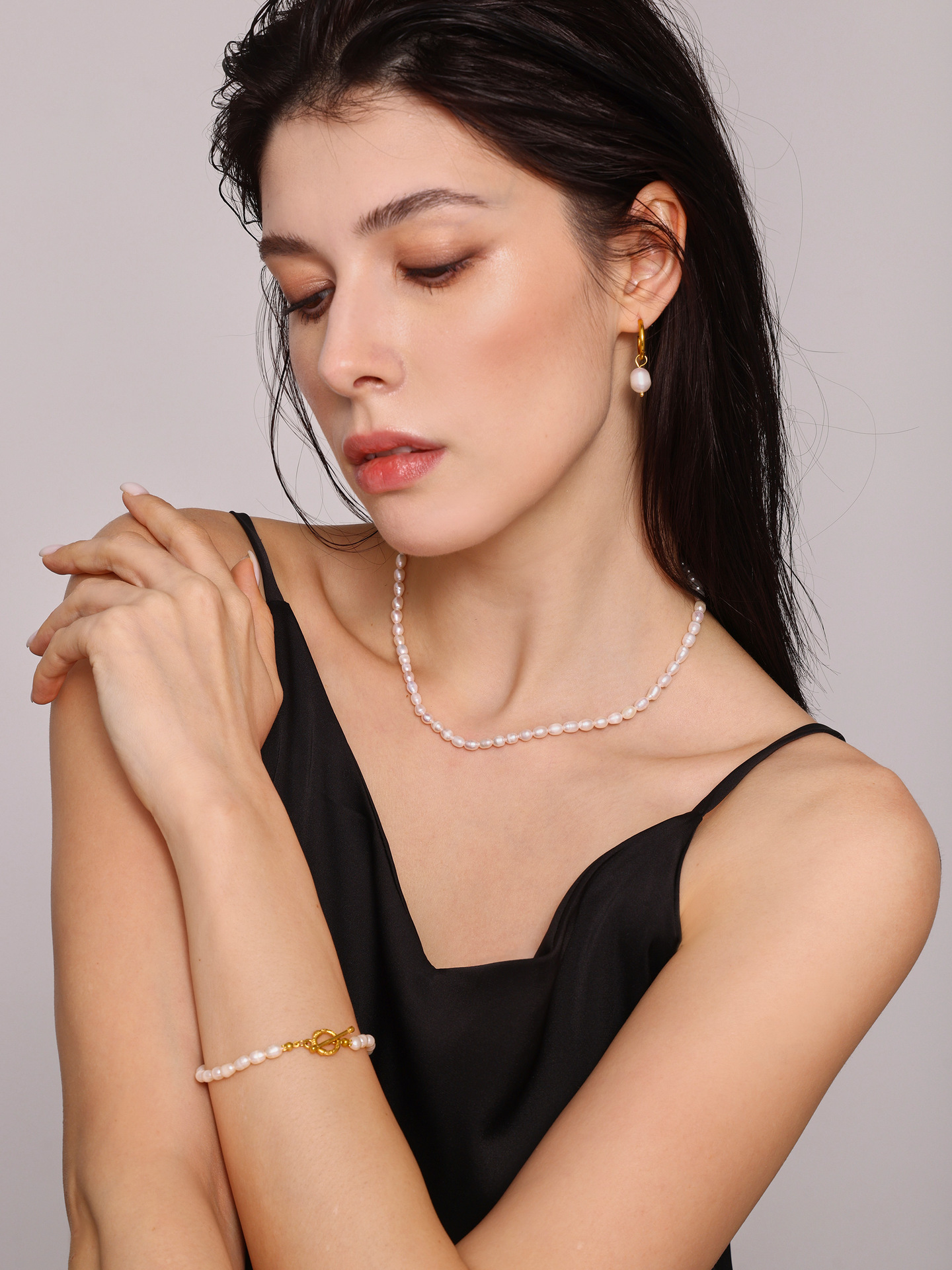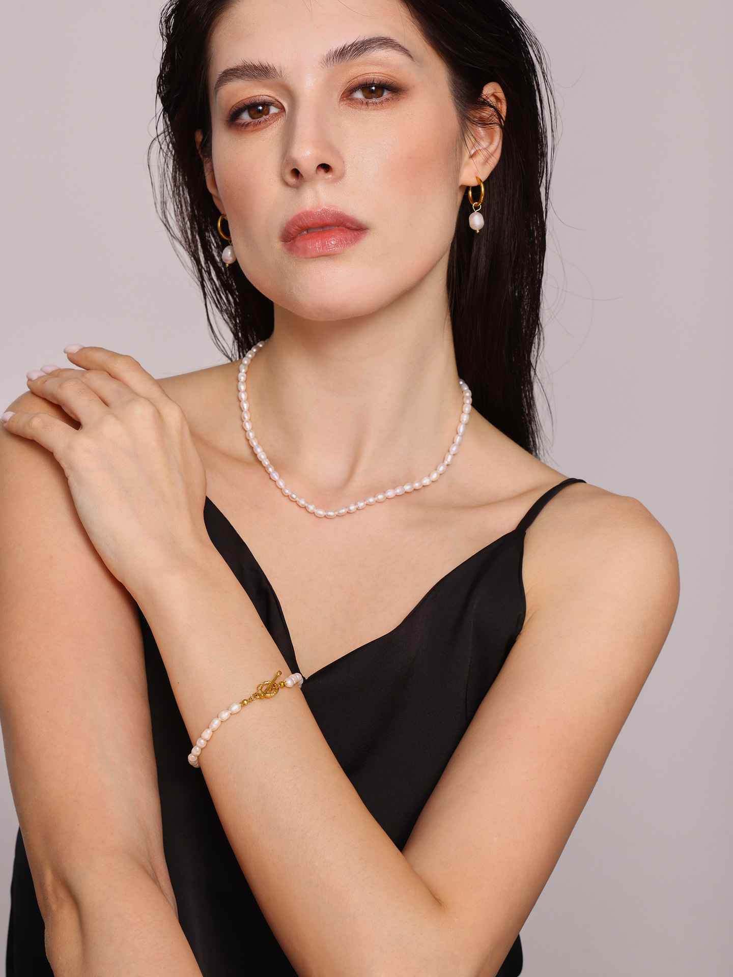 Qiangyan Barroco agua fresca collar de perlas pulseras pendientes nicho dulce viento conjunto de regalos de novia al por mayor