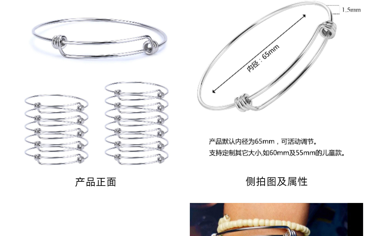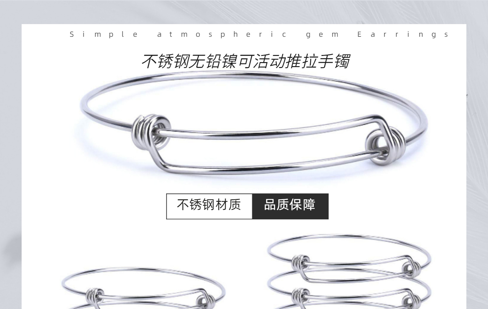 Pulsera de acero inoxidable móvil Push-Pull pulsera de alambre de acero antialérgico ajustable de alta calidad fábrica al por mayor