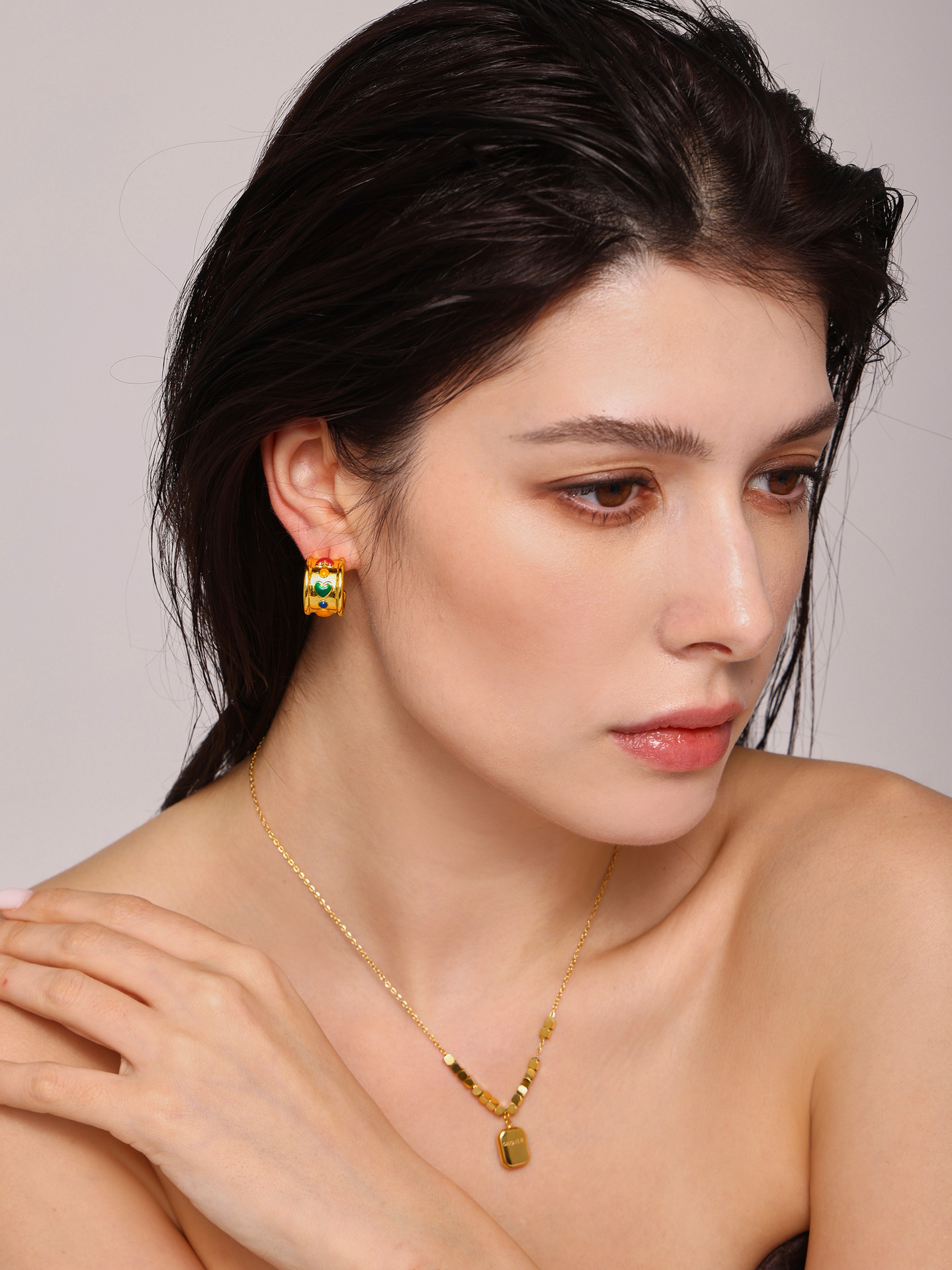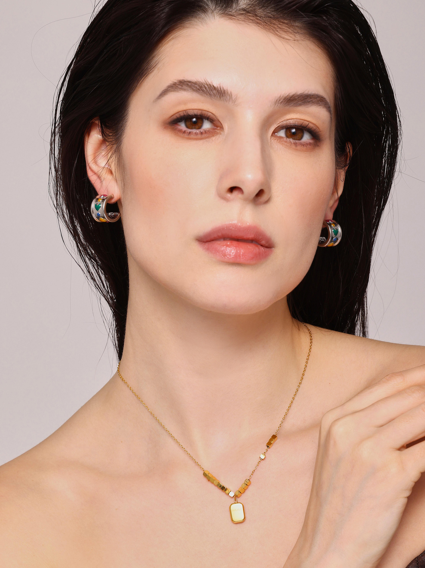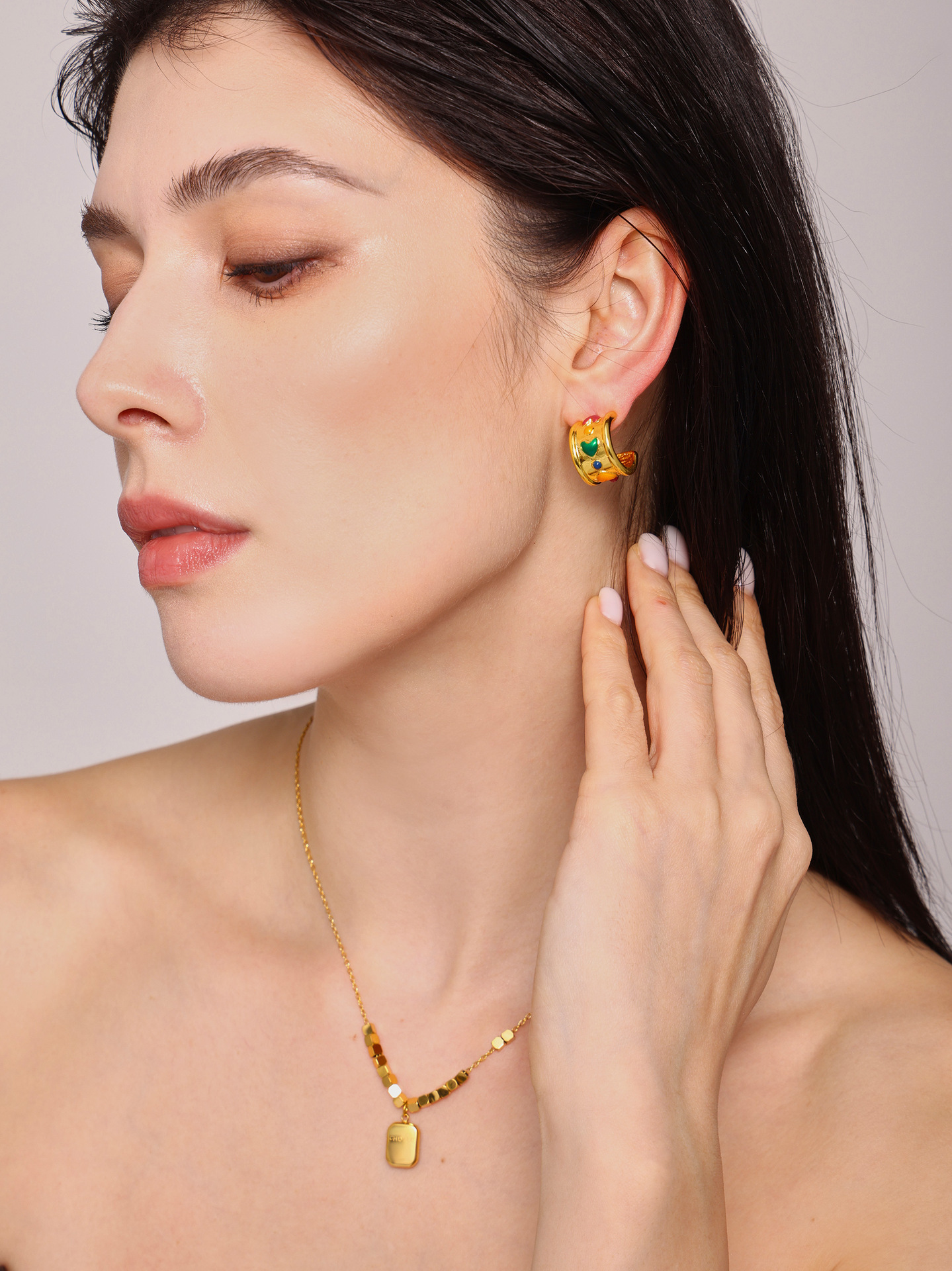 C-C amor amplio aretes instiguado nuevo estilo cuadrado logotipo colgante collar de acero titanio combinación de tendencia