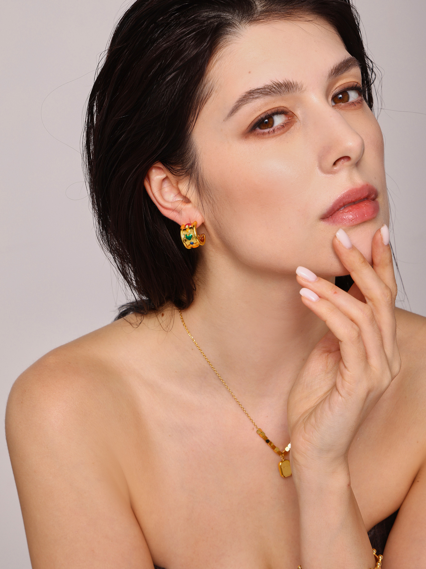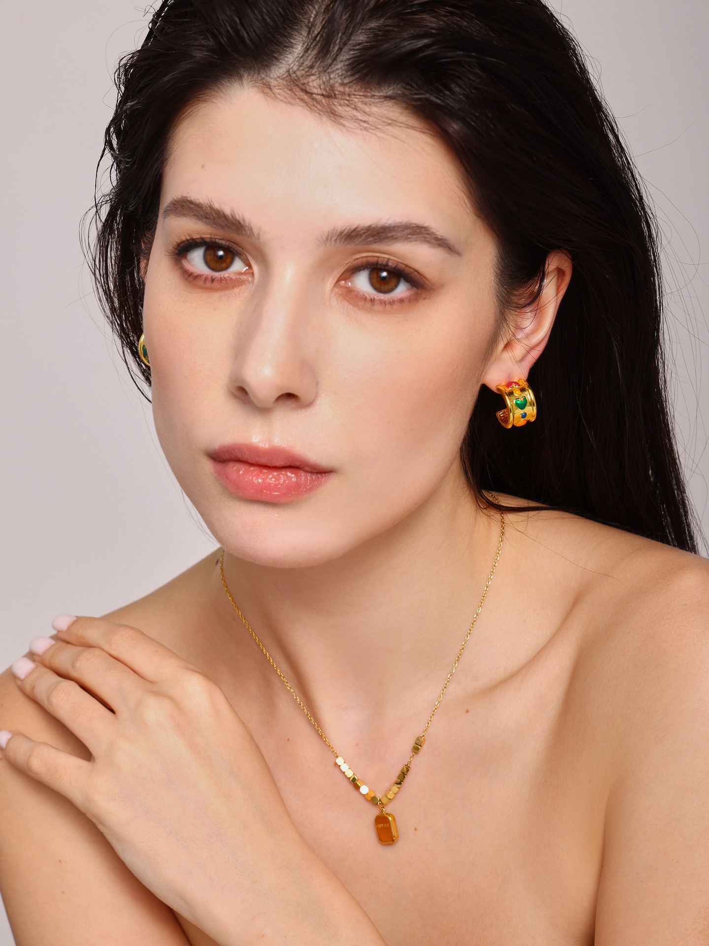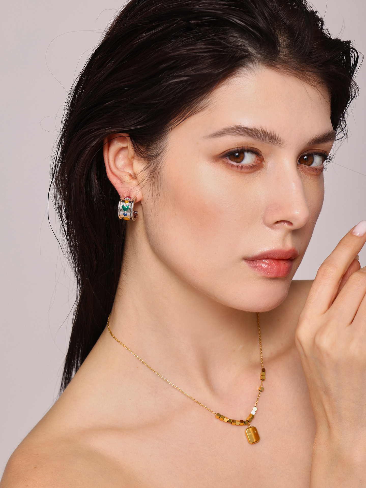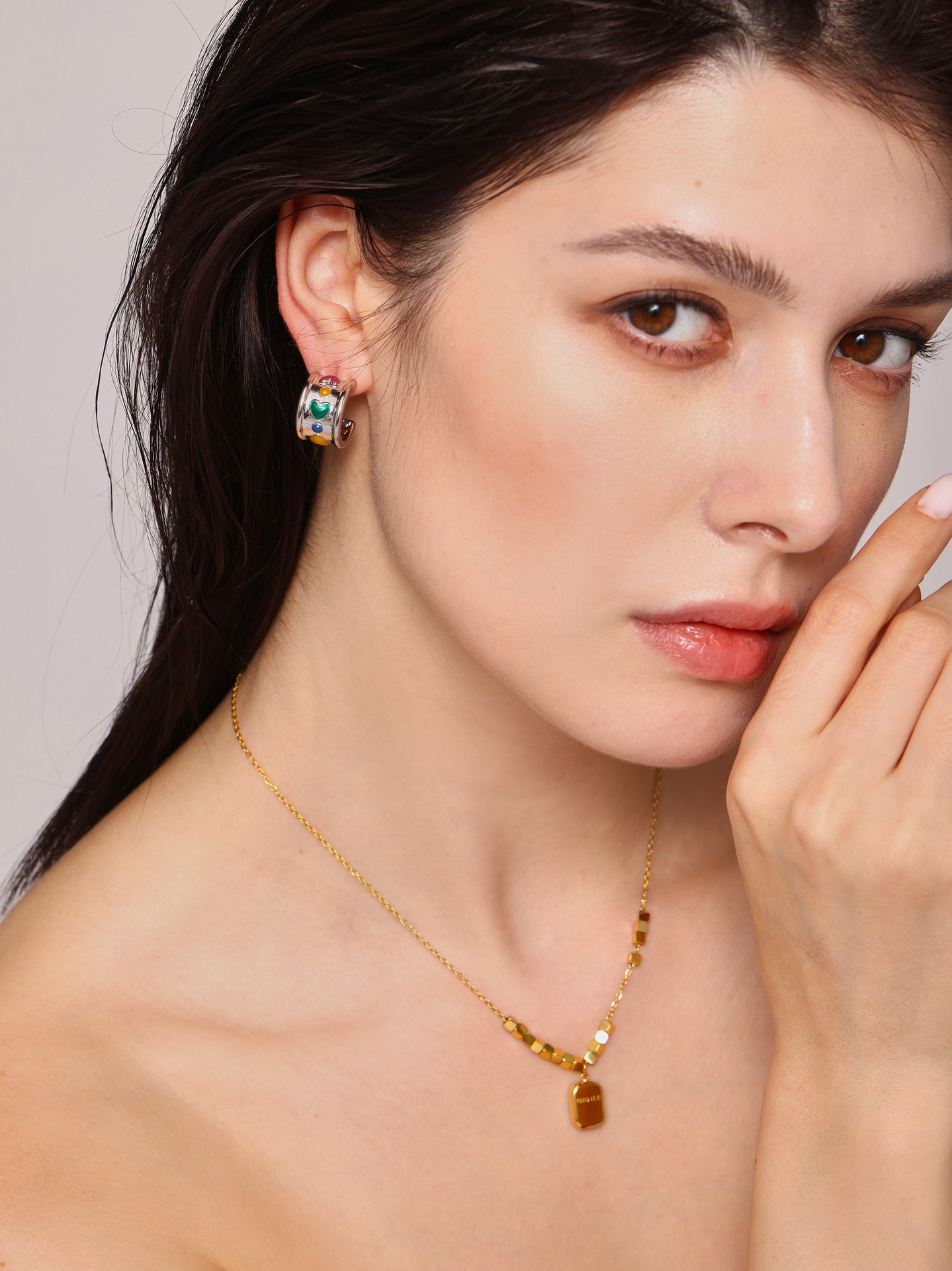 C-C amor amplio aretes instiguado nuevo estilo cuadrado logotipo colgante collar de acero titanio combinación de tendencia