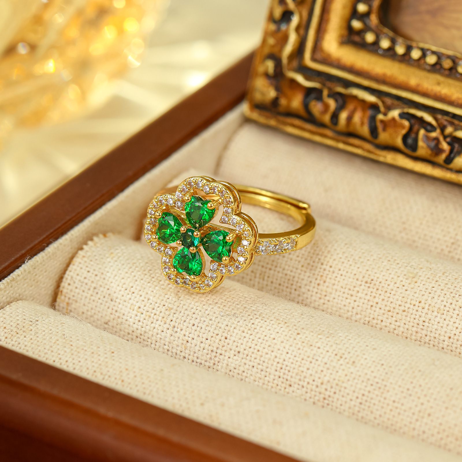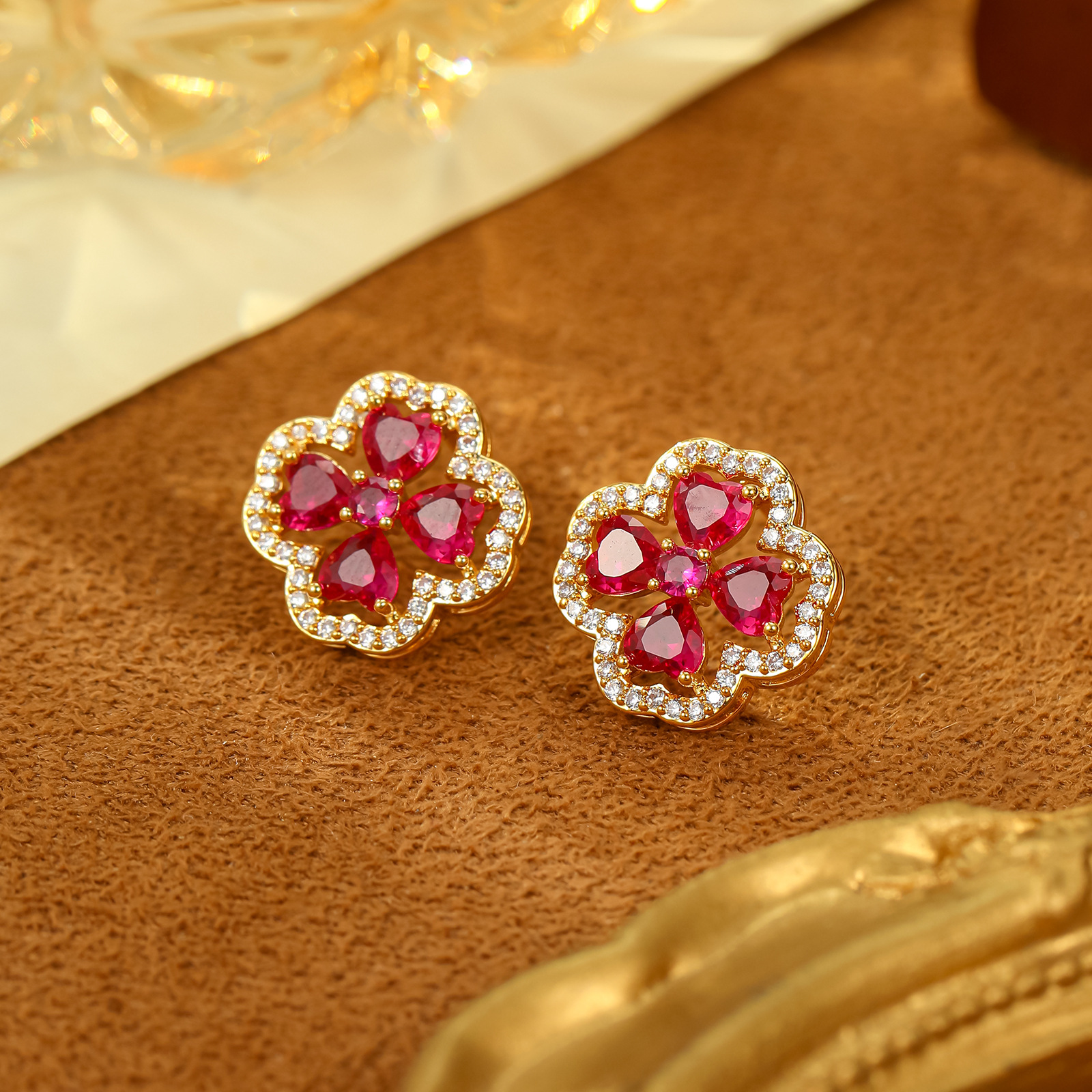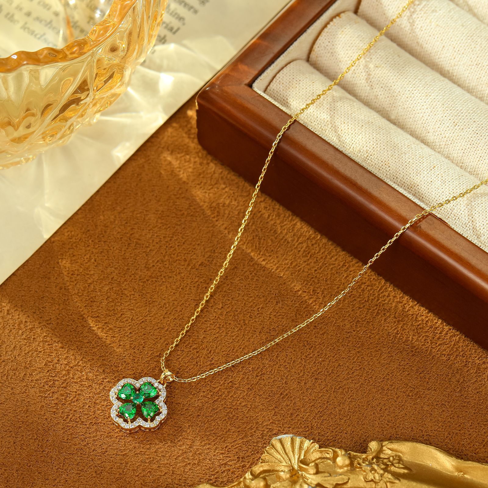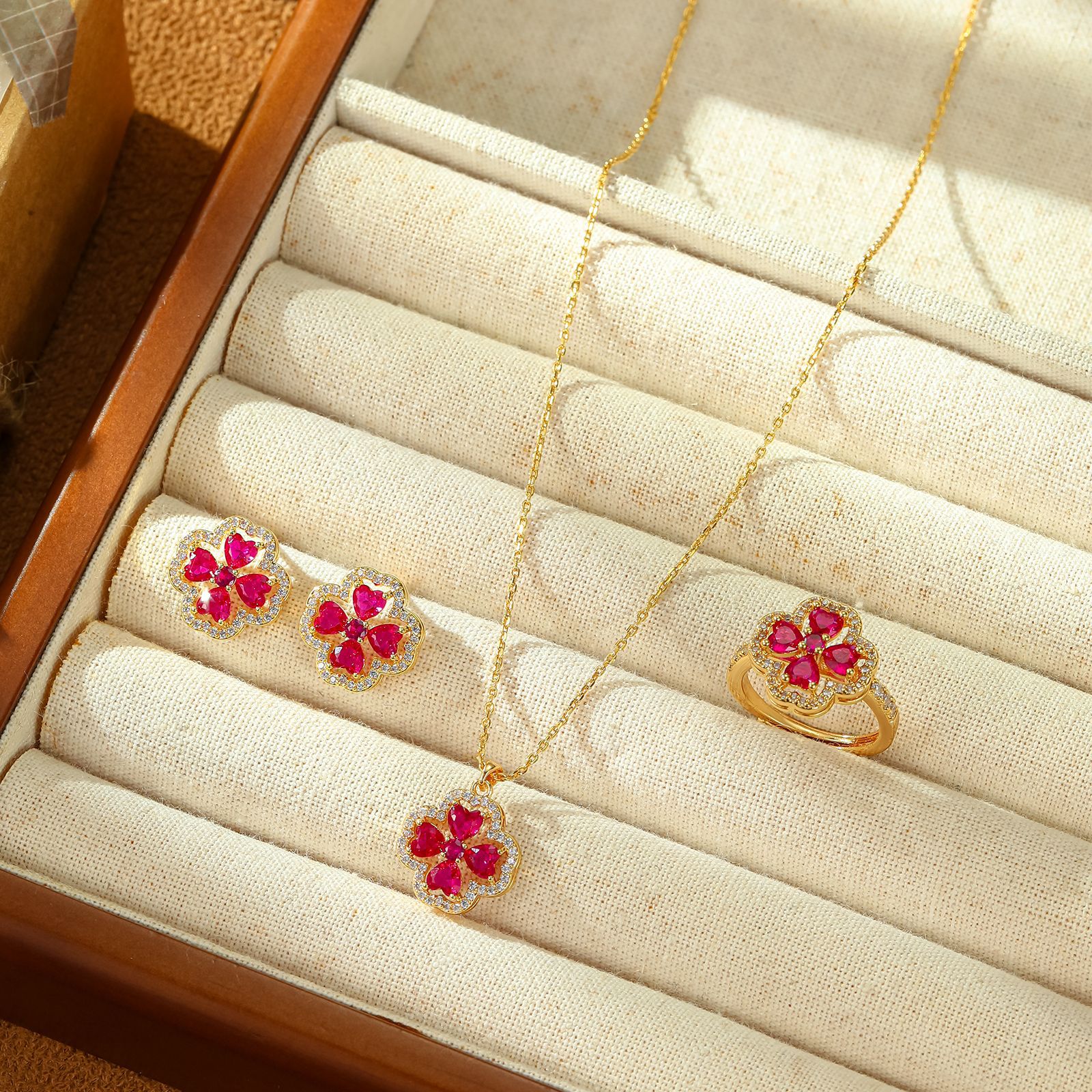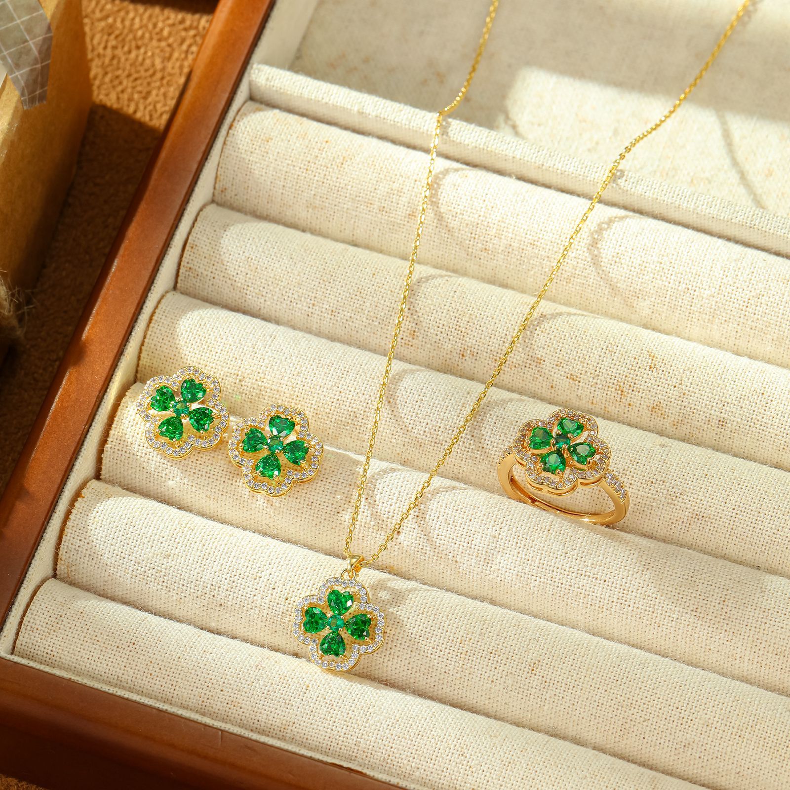 Explosiones transfronterizas lujosas de cuatro hojas color zircon conjunto de joyería de alta sensación única retro simple exquisita versátil