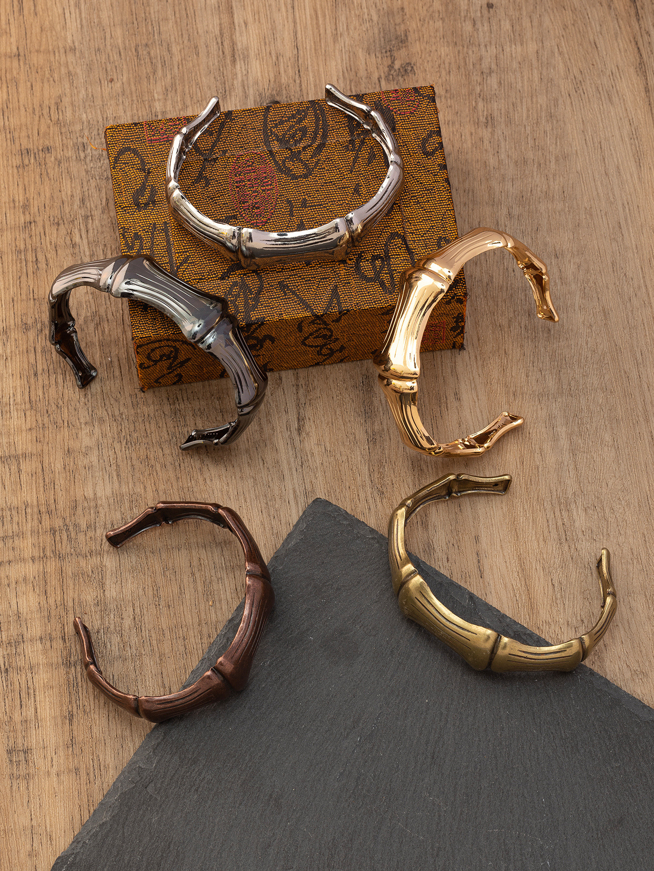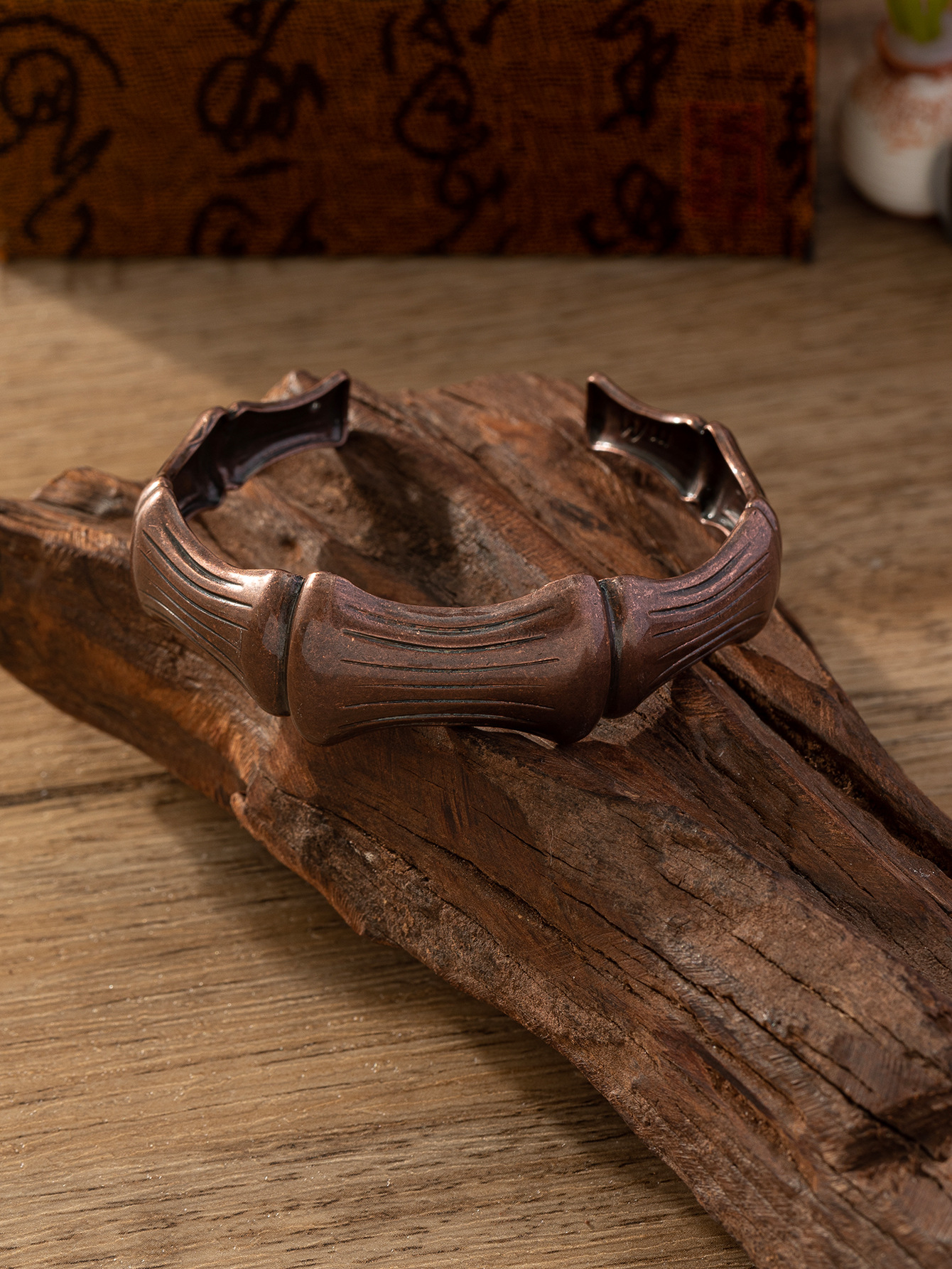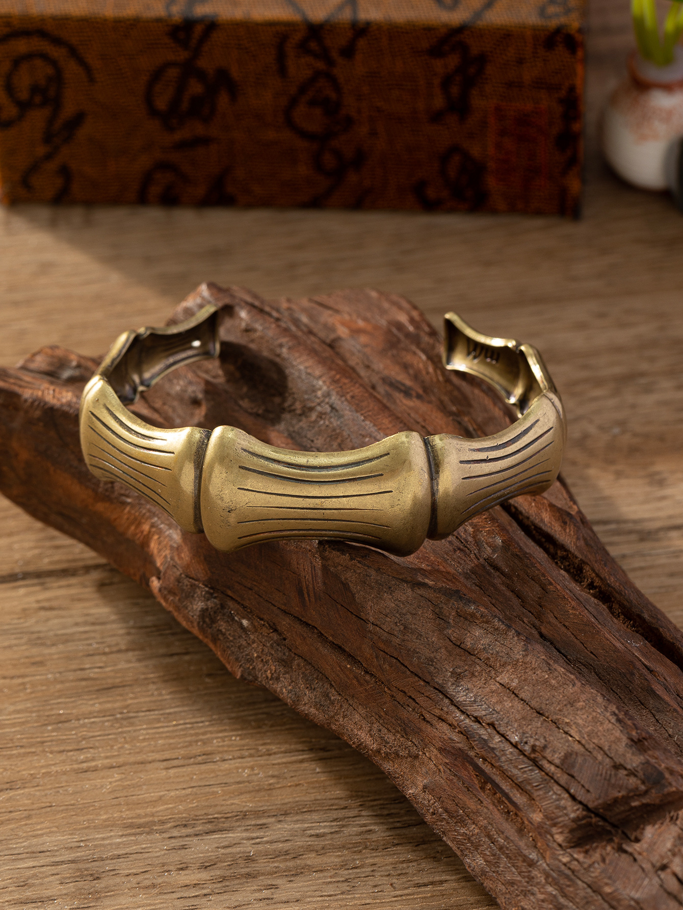 Joyería transfronteriza vintage afligido tallado impreso de bambú pulsera abierta personalidad artística de las mujeres pulsera de estilo étnico
