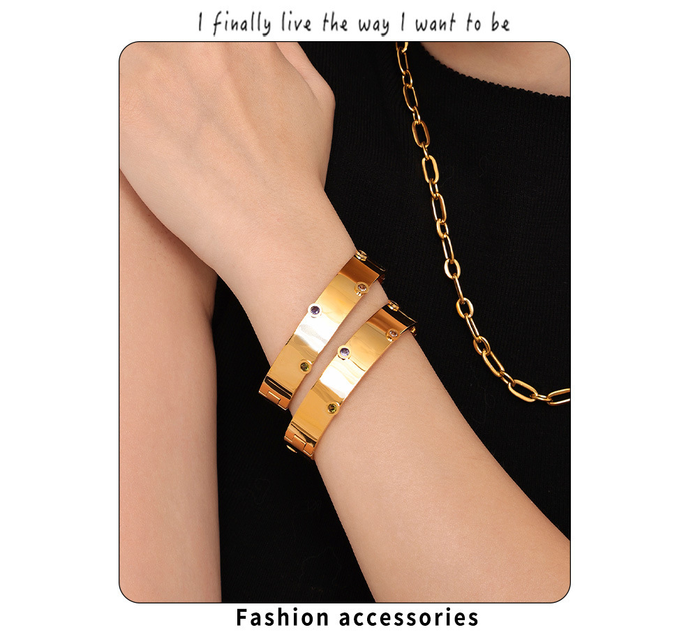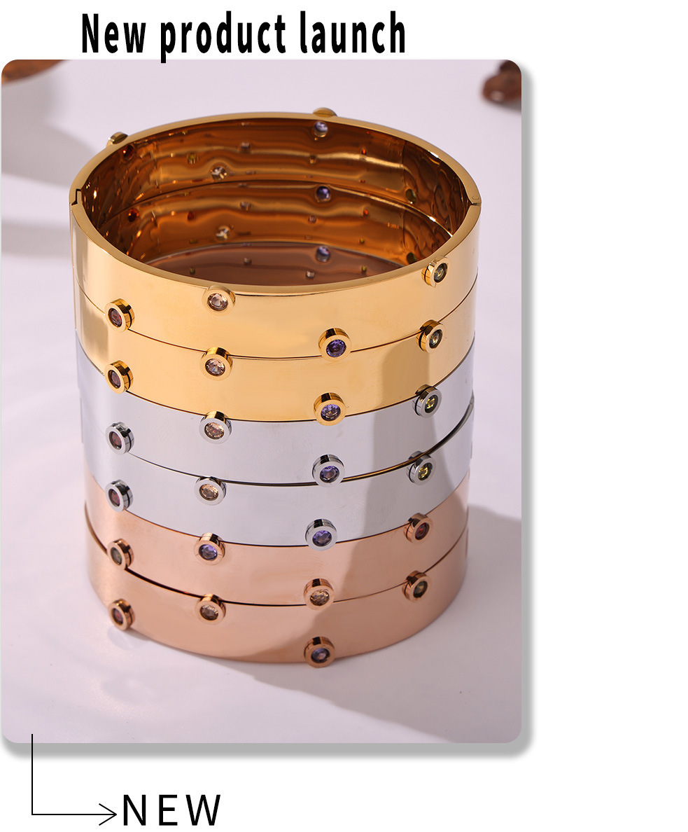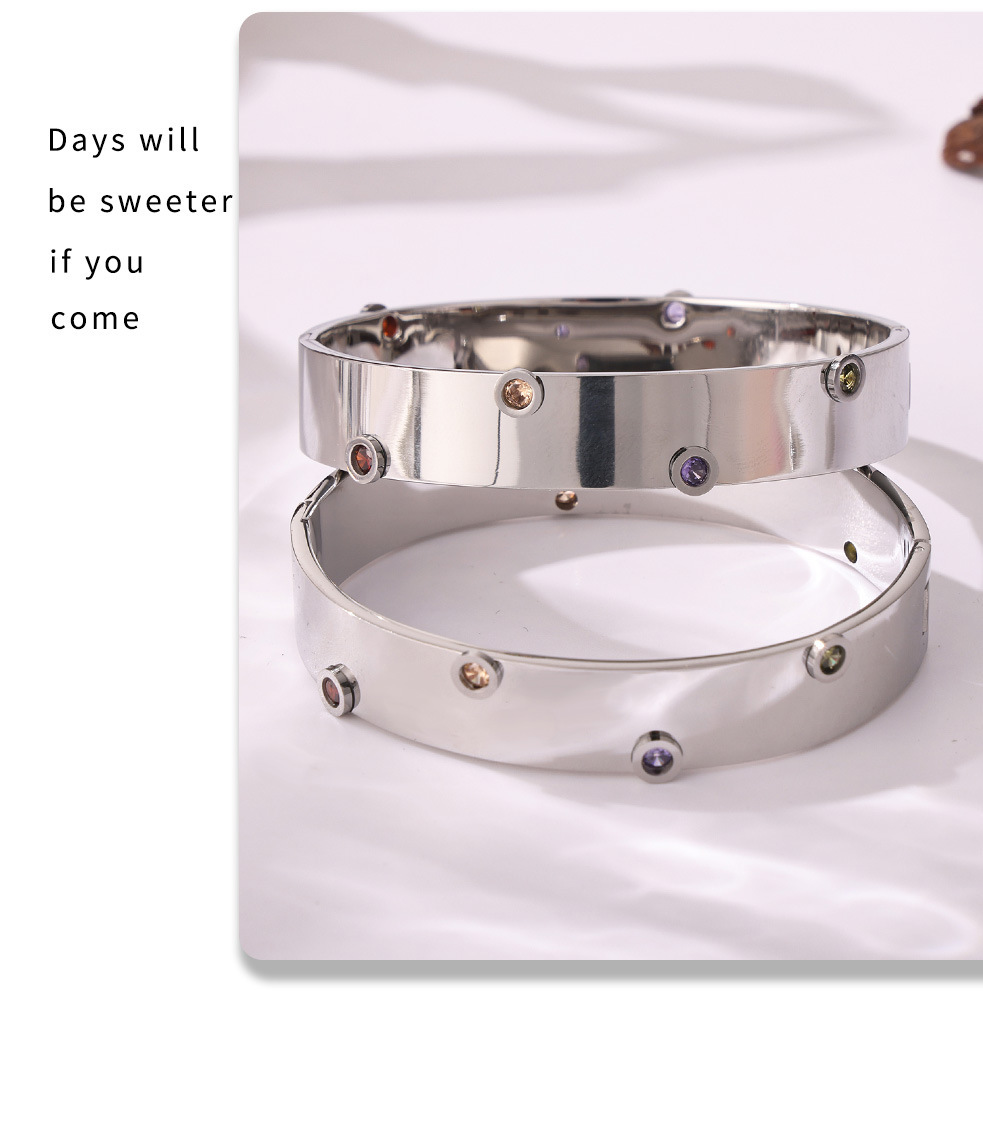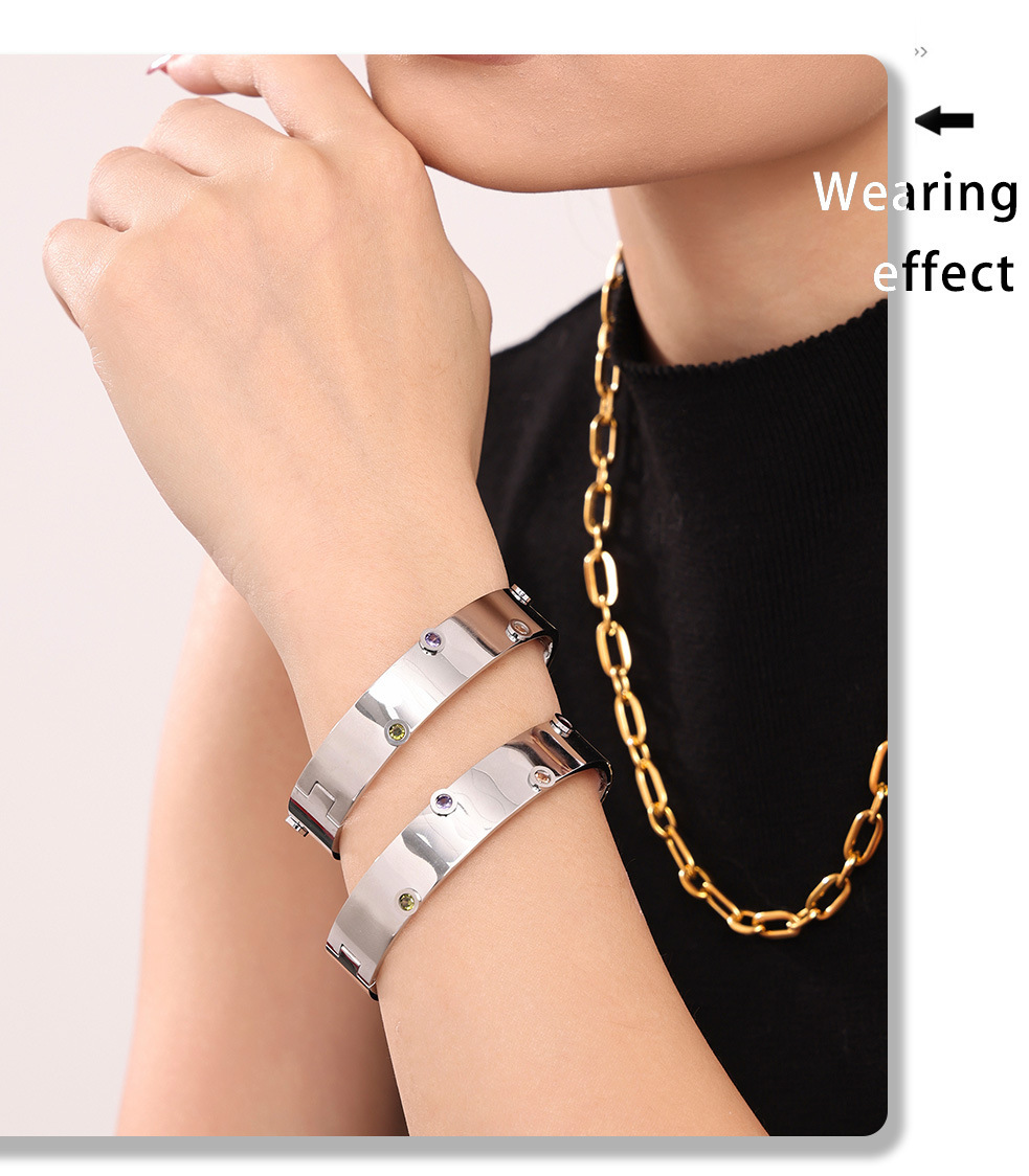Brazalete de textura de zircón de color incrustado a mano Europa y Estados Unidos de acero inoxidable transfronterizo no desvanecido pulsera de viaje de moda