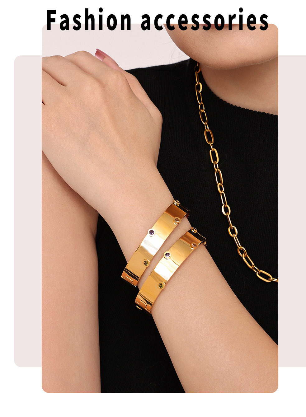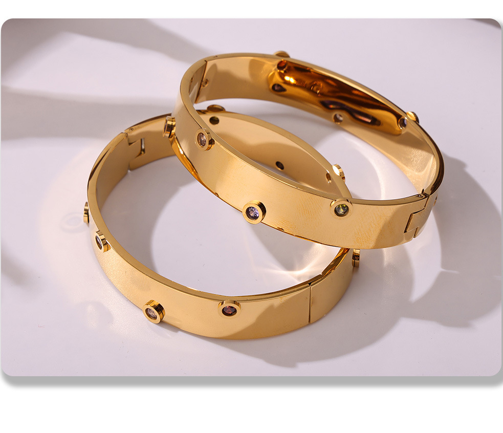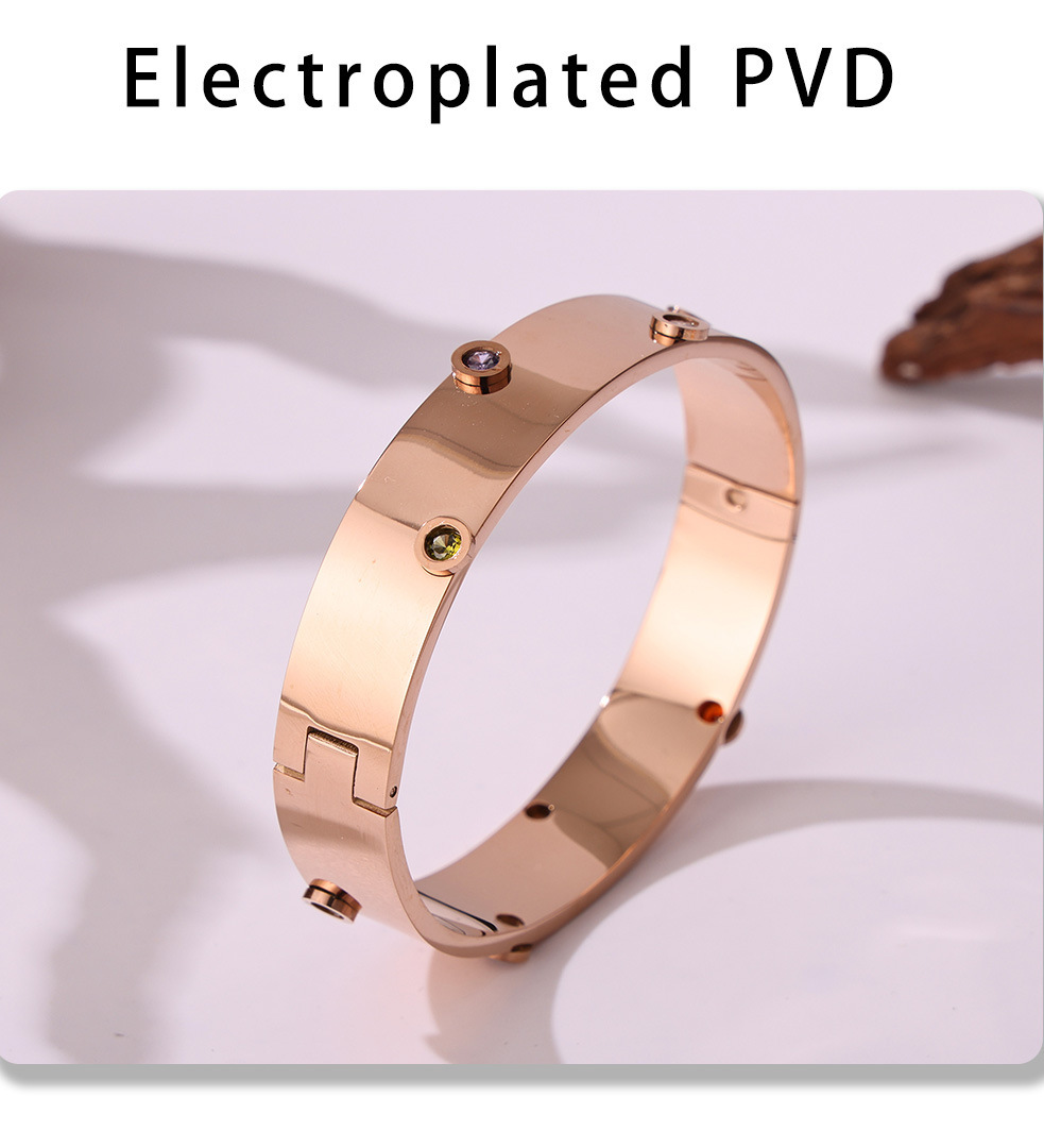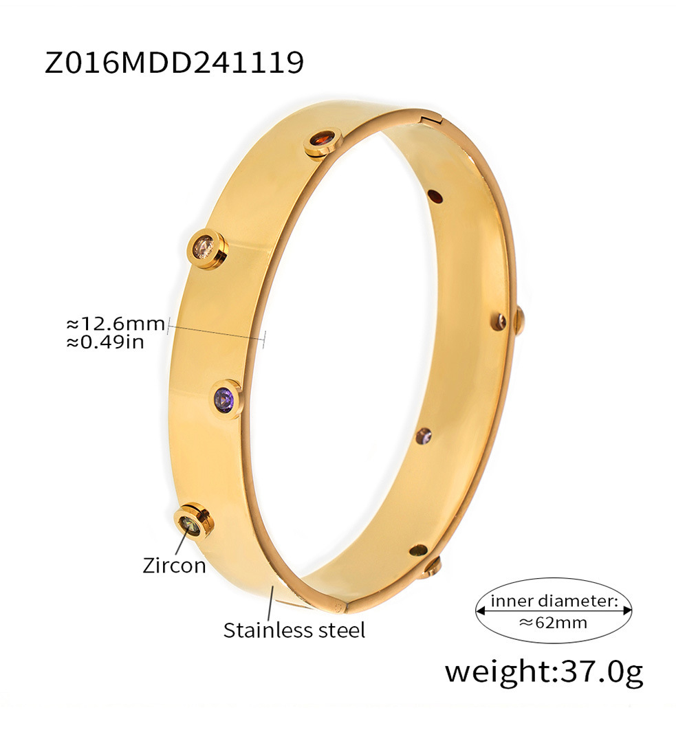 Brazalete de textura de zircón de color incrustado a mano Europa y Estados Unidos de acero inoxidable transfronterizo no desvanecido pulsera de viaje de moda