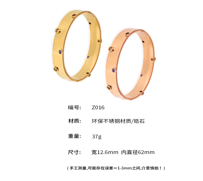 | Color | Z016 - pulsera de zircon colorido dorado, pulsera de zircon colorido de acero z016 - pulsera de zircon colorido rosa |