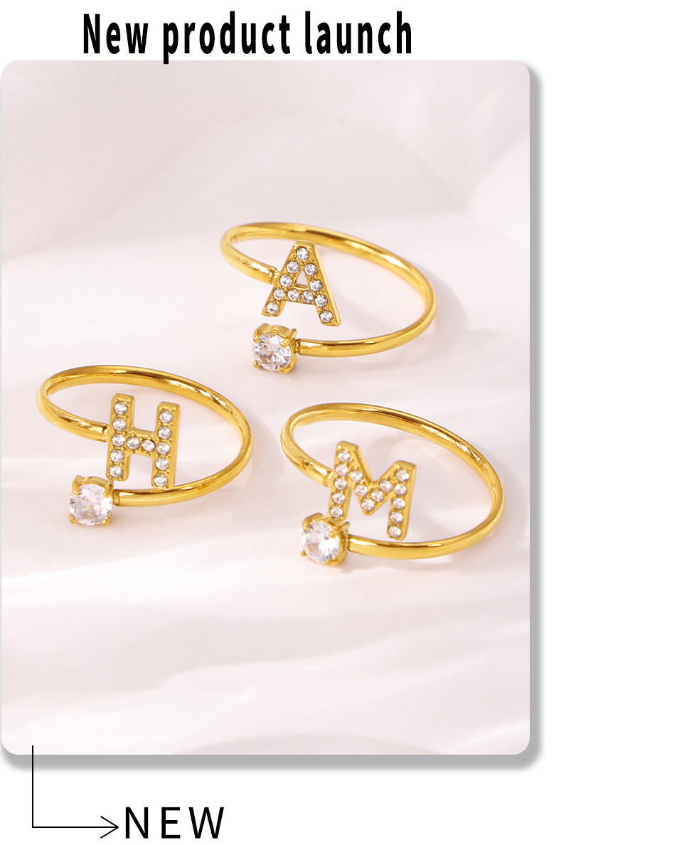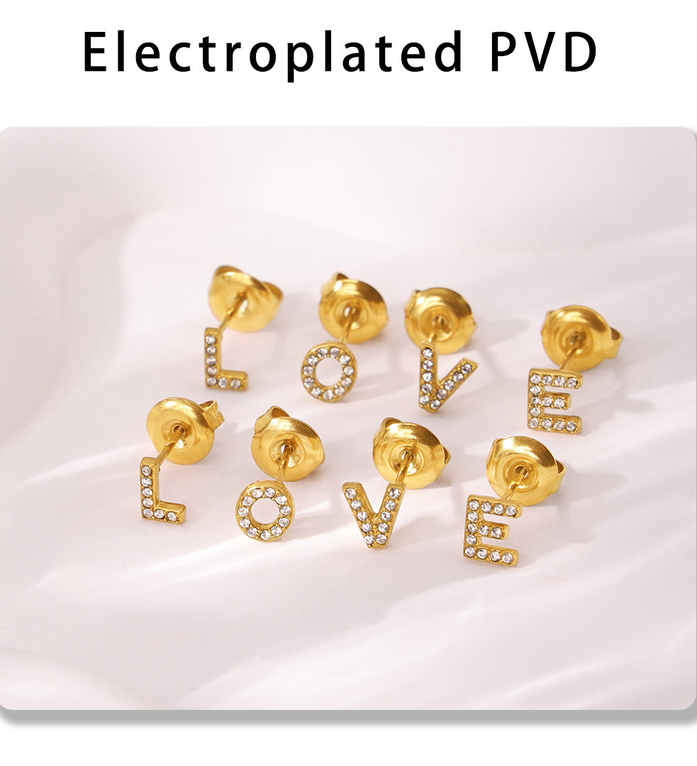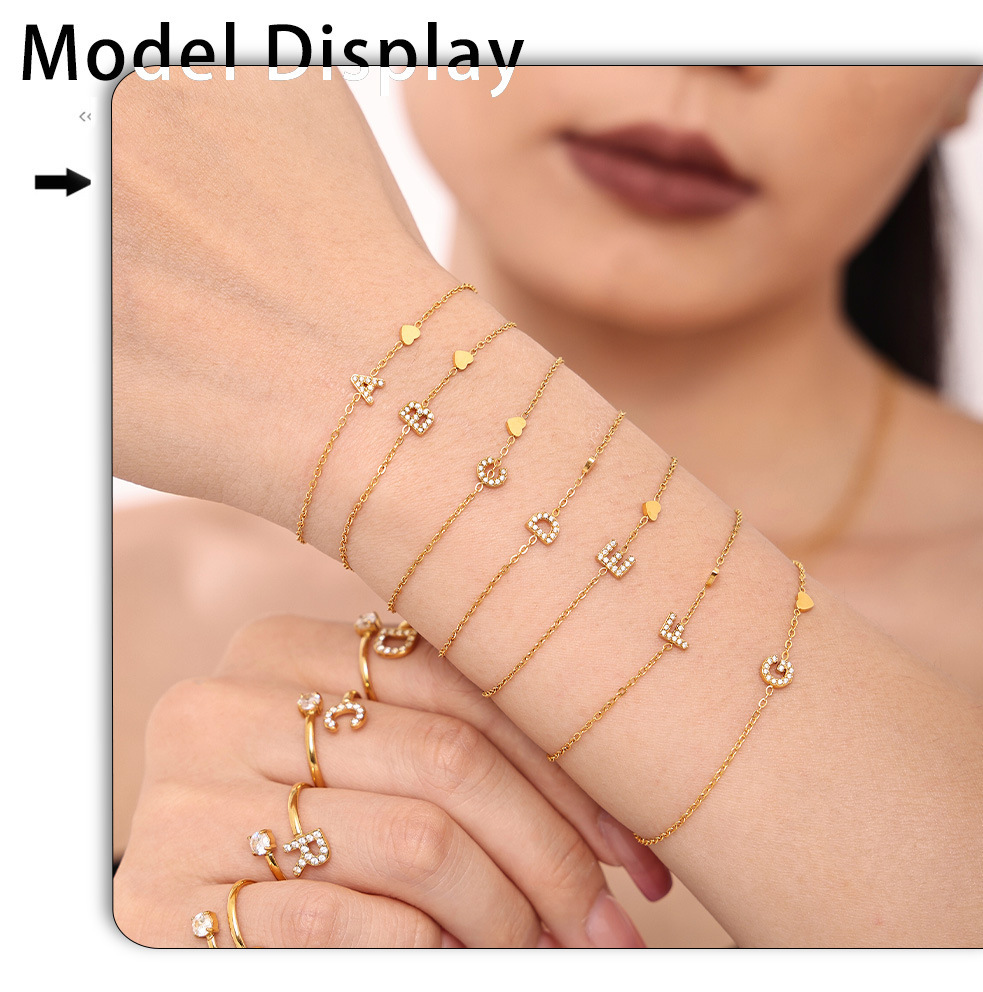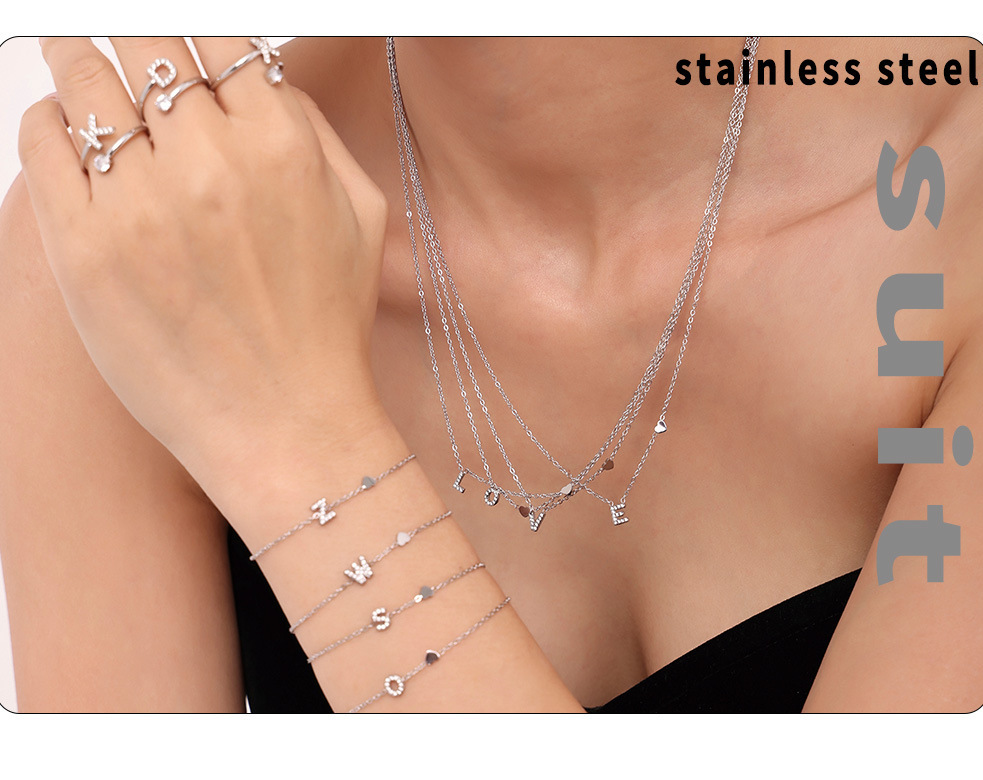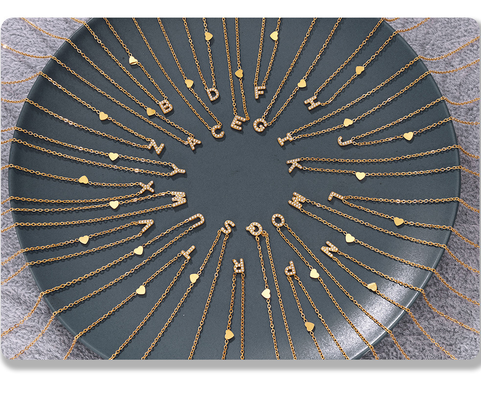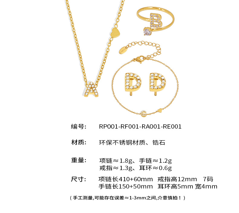 Qiong Yao Titanium Steel 26 letras con incrustaciones de circón Juego de joyas PVD chapado en oro real collar de retención de color pulsera anillo aretes