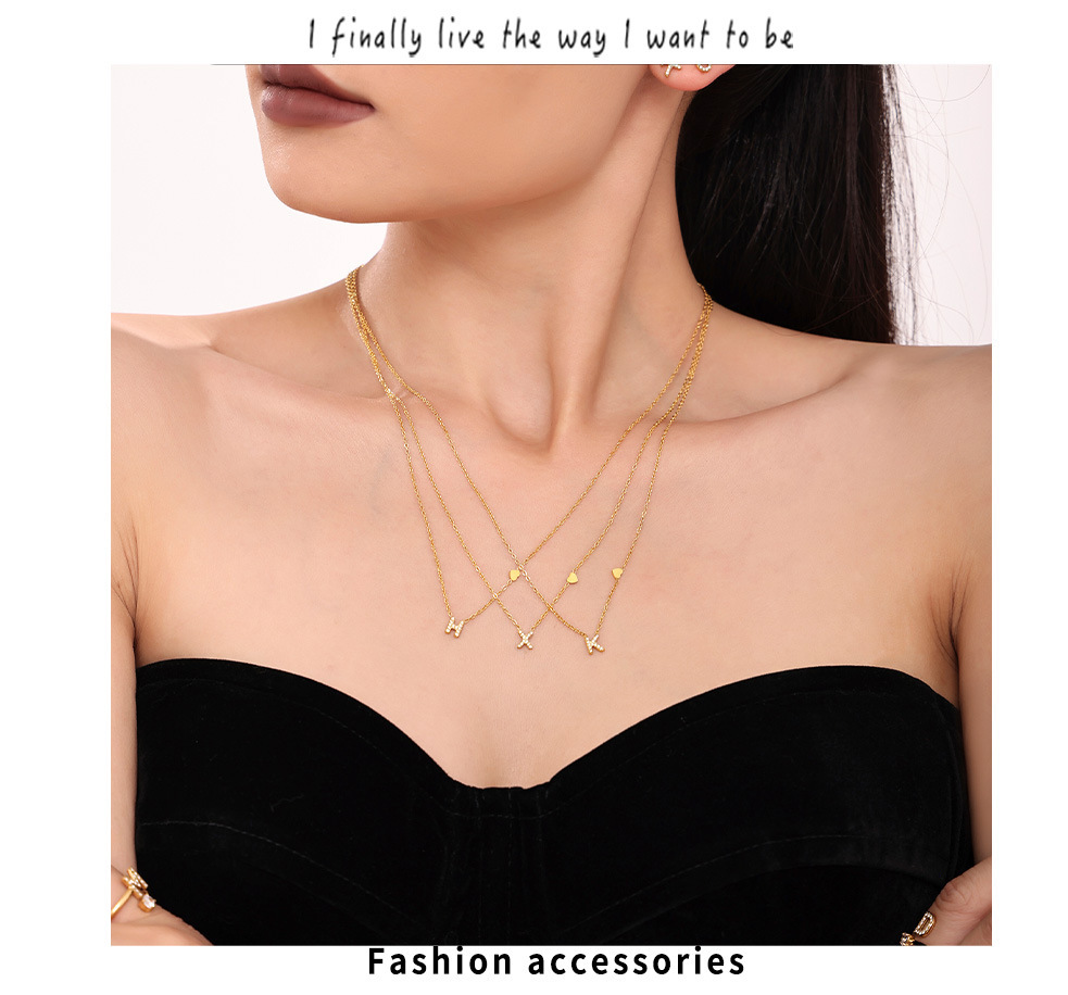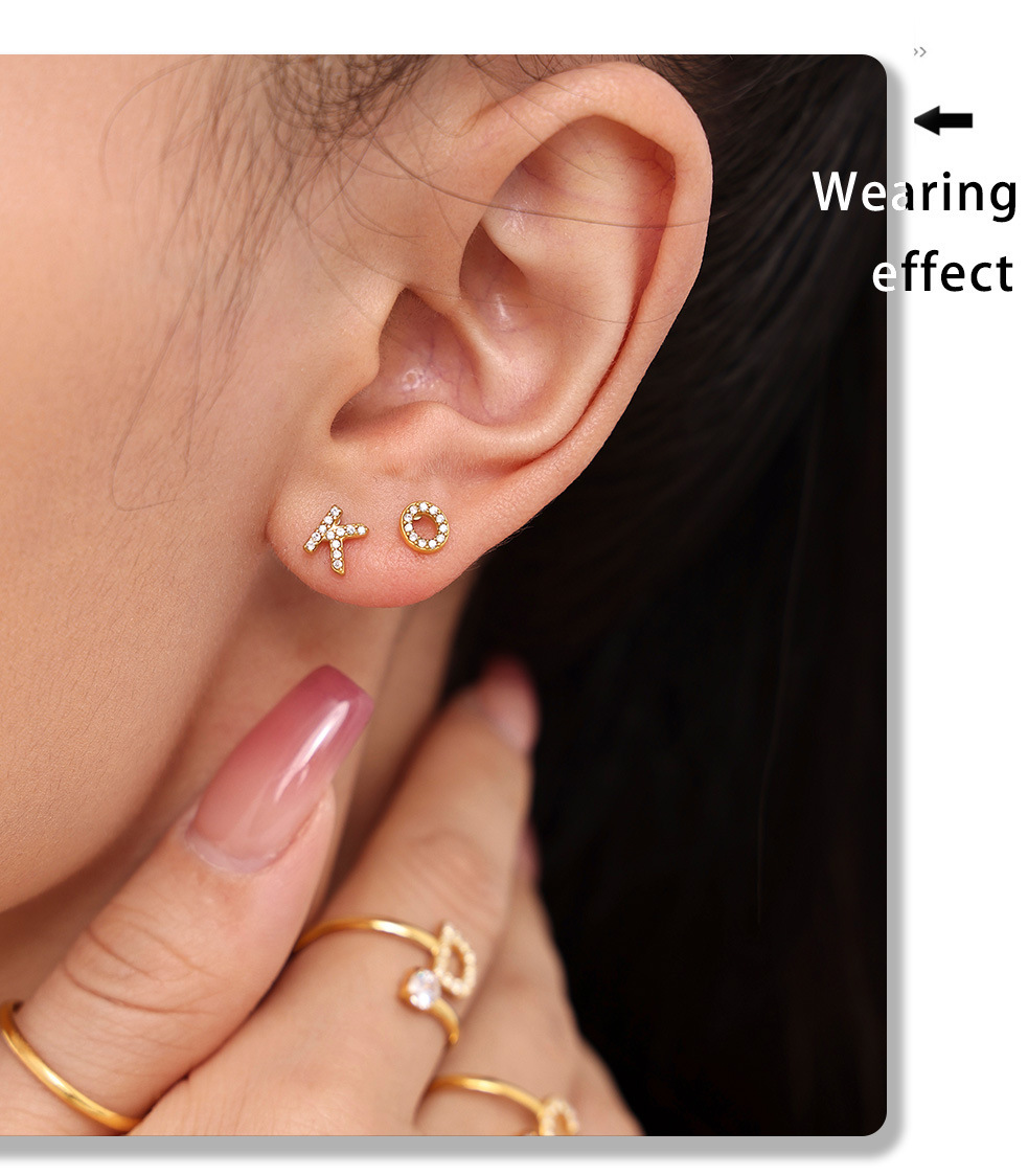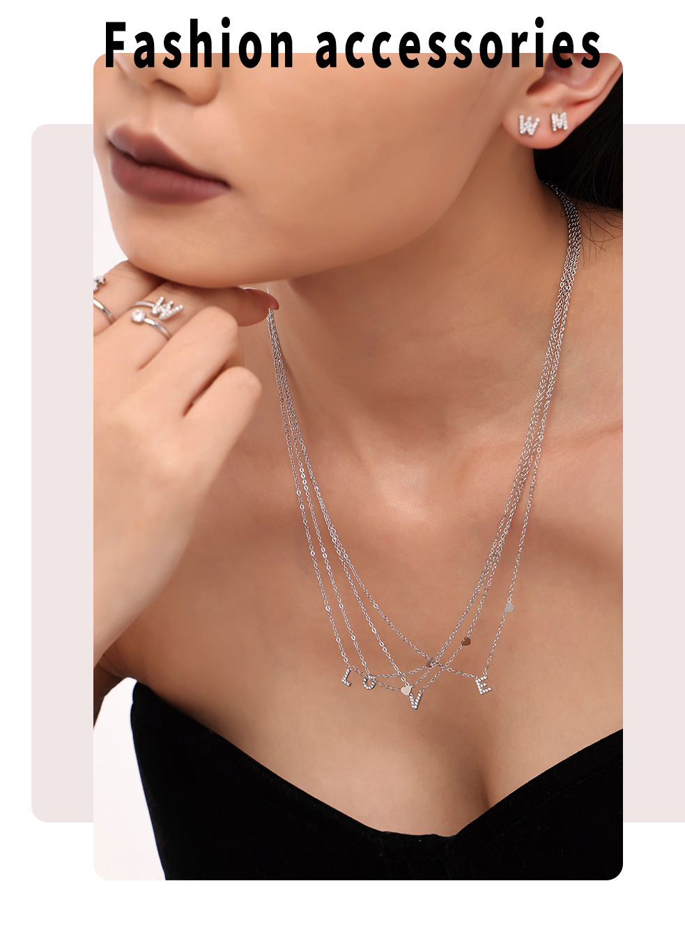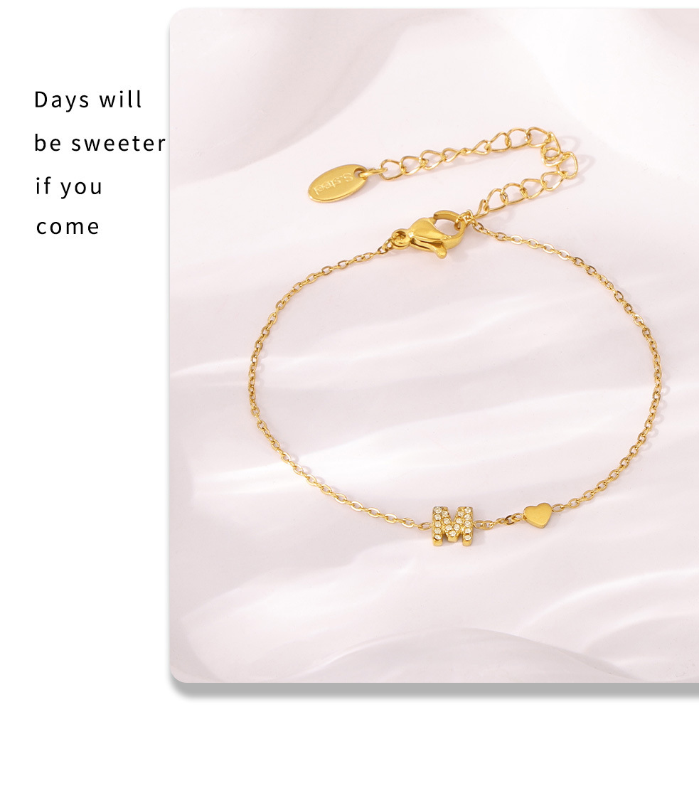Qiong Yao Titanium Steel 26 letras con incrustaciones de circón Juego de joyas PVD chapado en oro real collar de retención de color pulsera anillo aretes