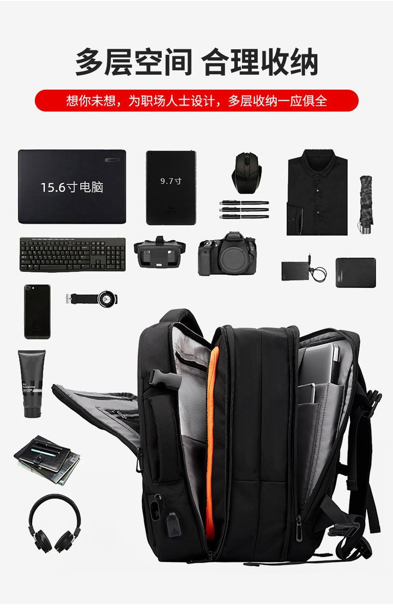 Viaje de negocios ligero Mochila De Negocios bolsa de ordenador portátil casual expansión de gran capacidad mochila