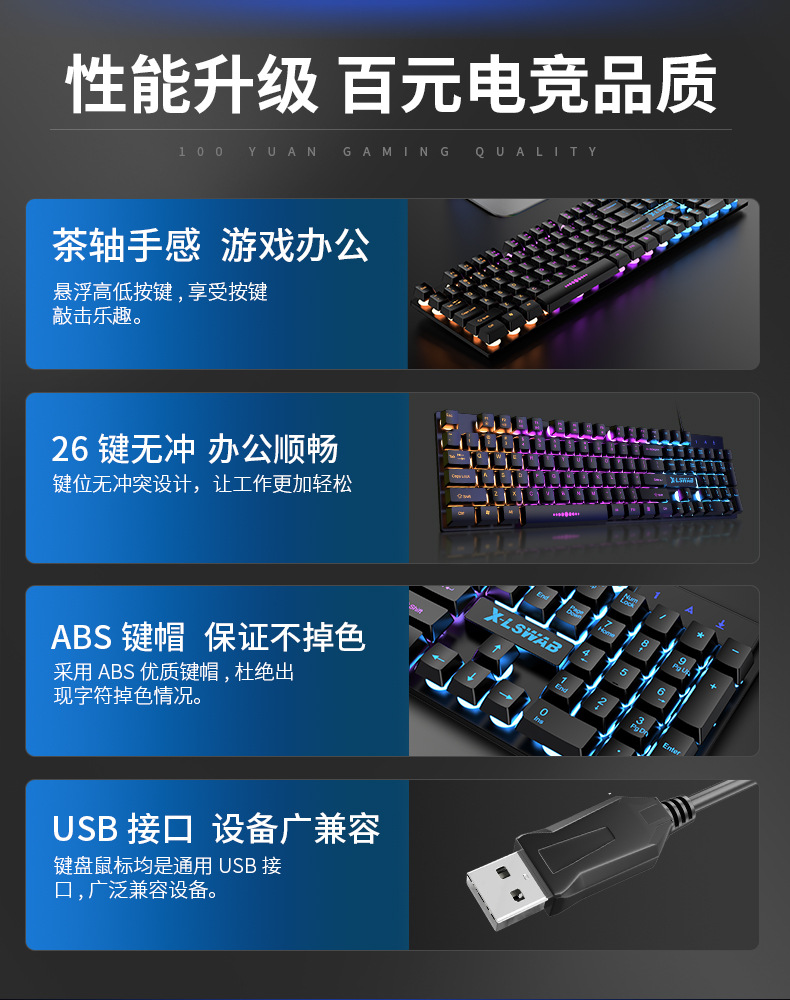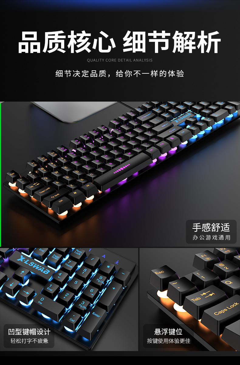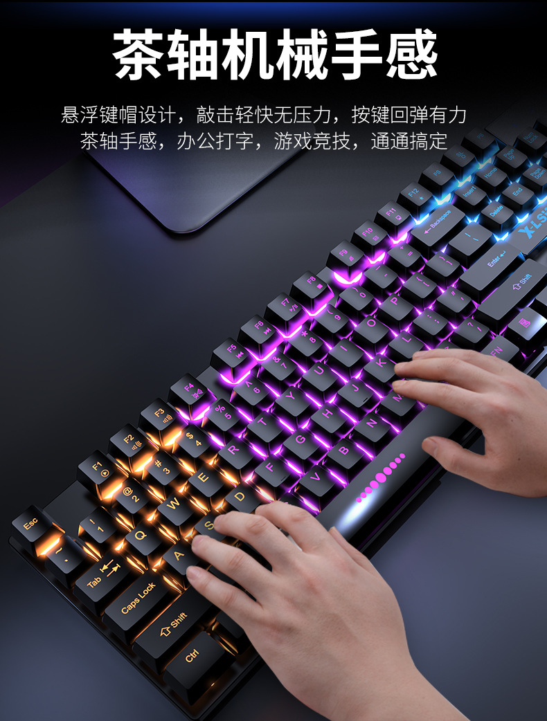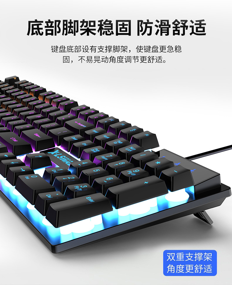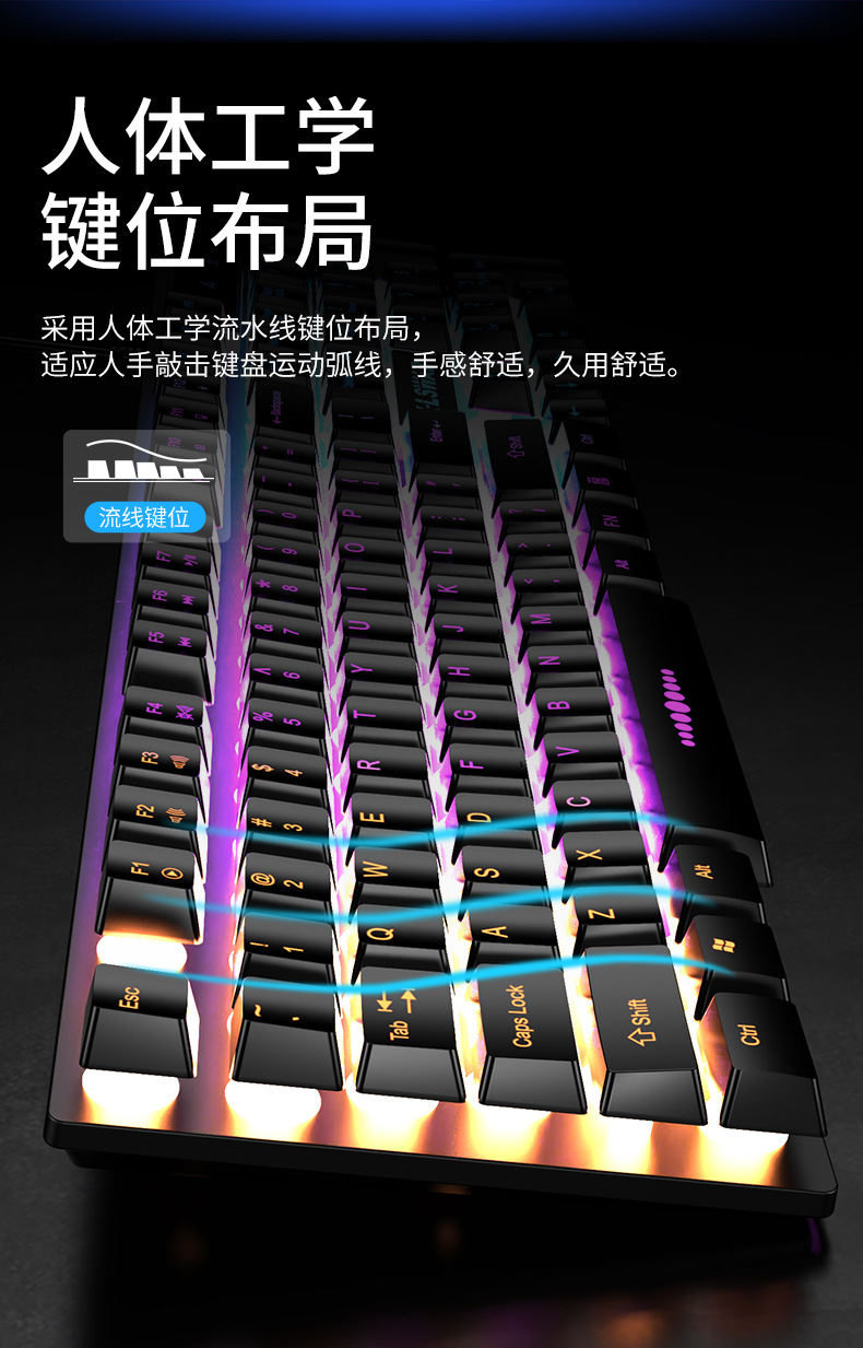 Traje de ratón de teclado transfronterizo sensación mecánica impermeable teclado con cable teclado luminoso ratón auricular juego universal al por mayor