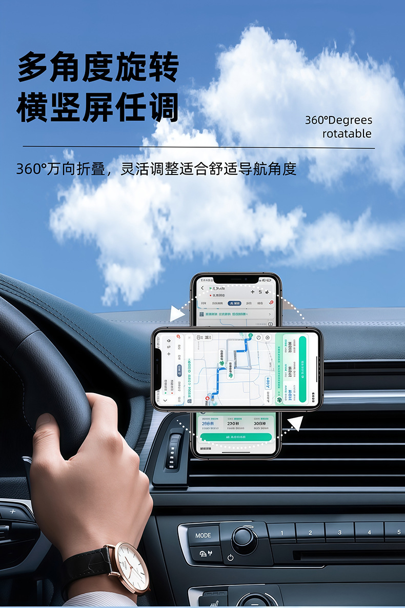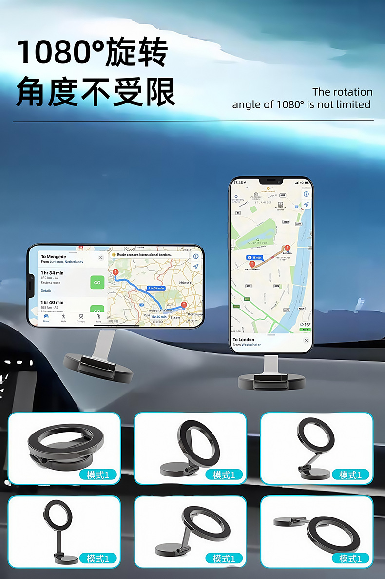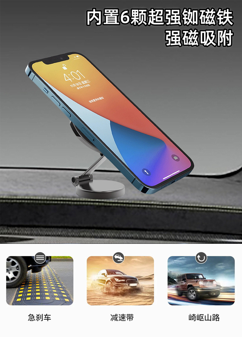 Transfronterizo 720 ° giratorio de absorción magnética montado en automóvil soporte de teléfono móvil plegable de alta gama tablero de instrumentos magnético fuerte marco de navegación de automóvil
