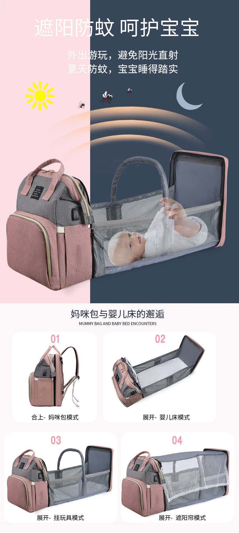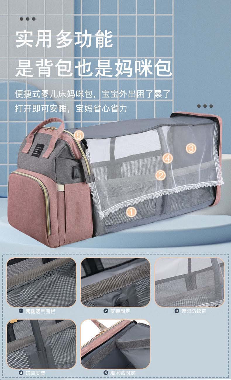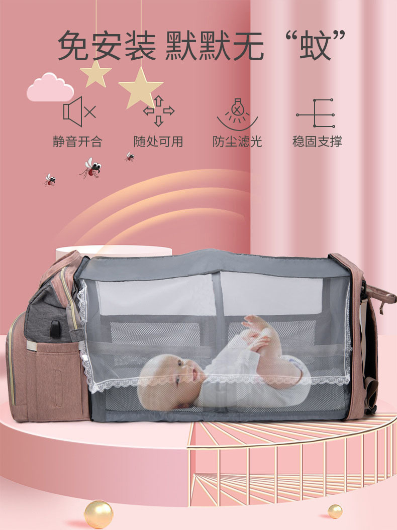 Bolso de mamá plegable de cama plegable al por mayor transfronterizo con mosquitera