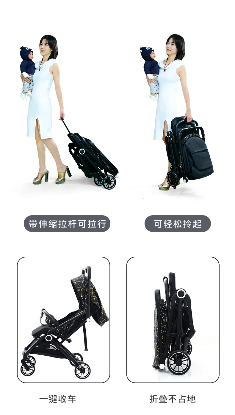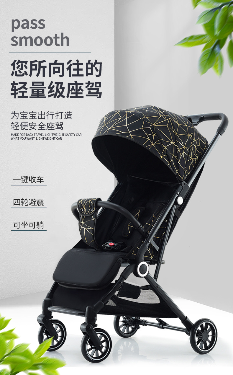 El cochecito de bebé de paseo de alto paisaje se puede sentar y acostarse, amortiguador de bebé plegable ligero, cochecito de bolsillo para niños