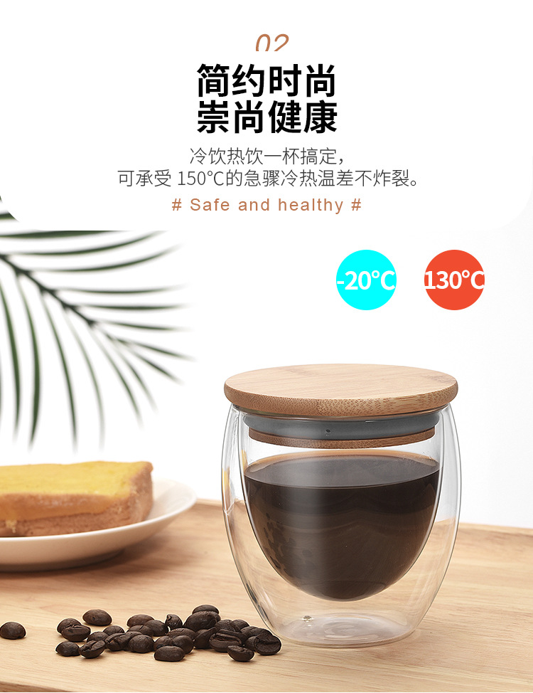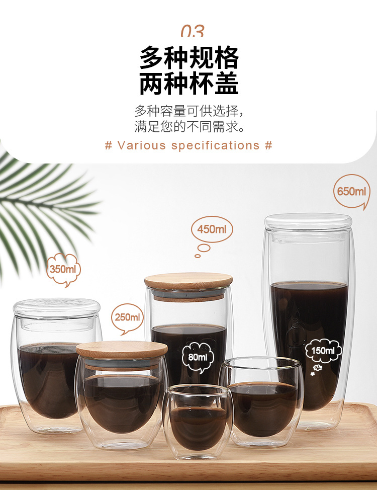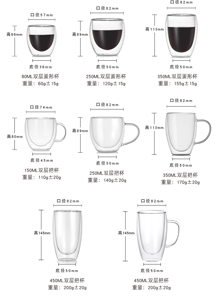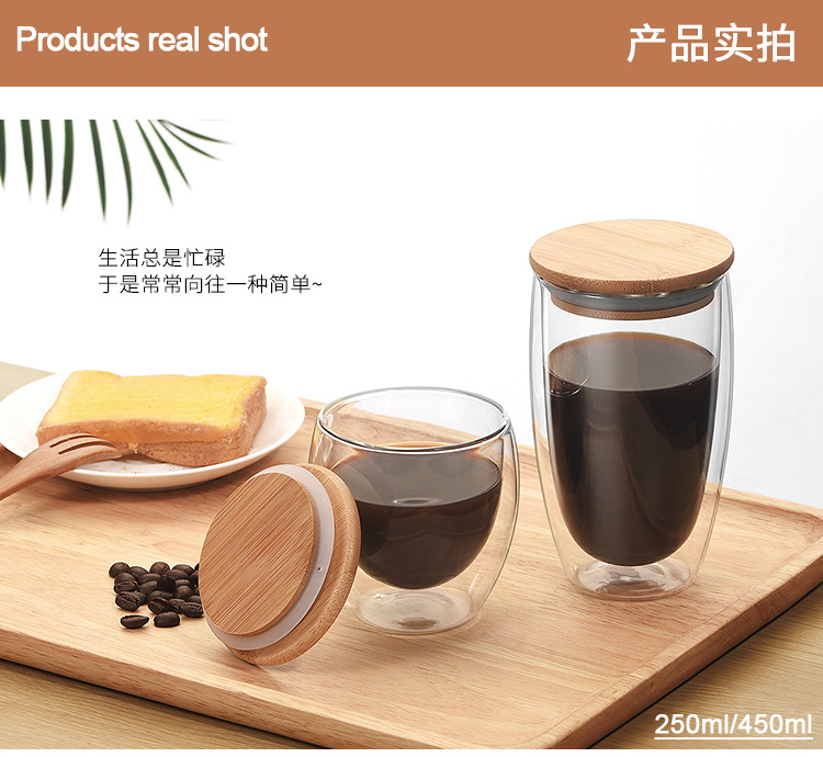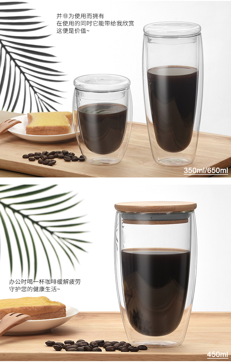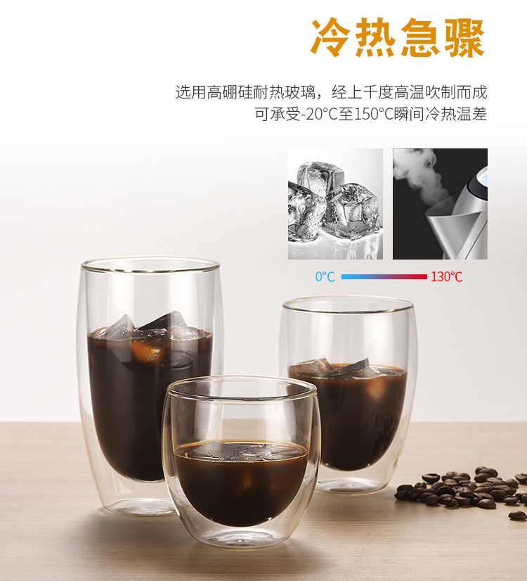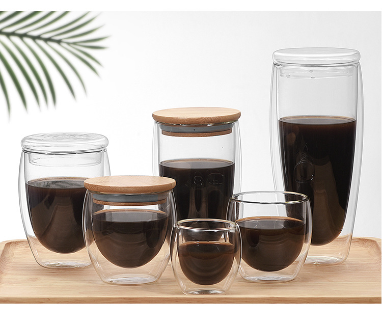Taza personalizada de vidrio de doble capa taza de agua resistente a altas temperaturas taza de desayuno de alto aspecto taza de café resistente al calor taza de beber para el hogar