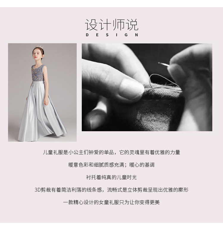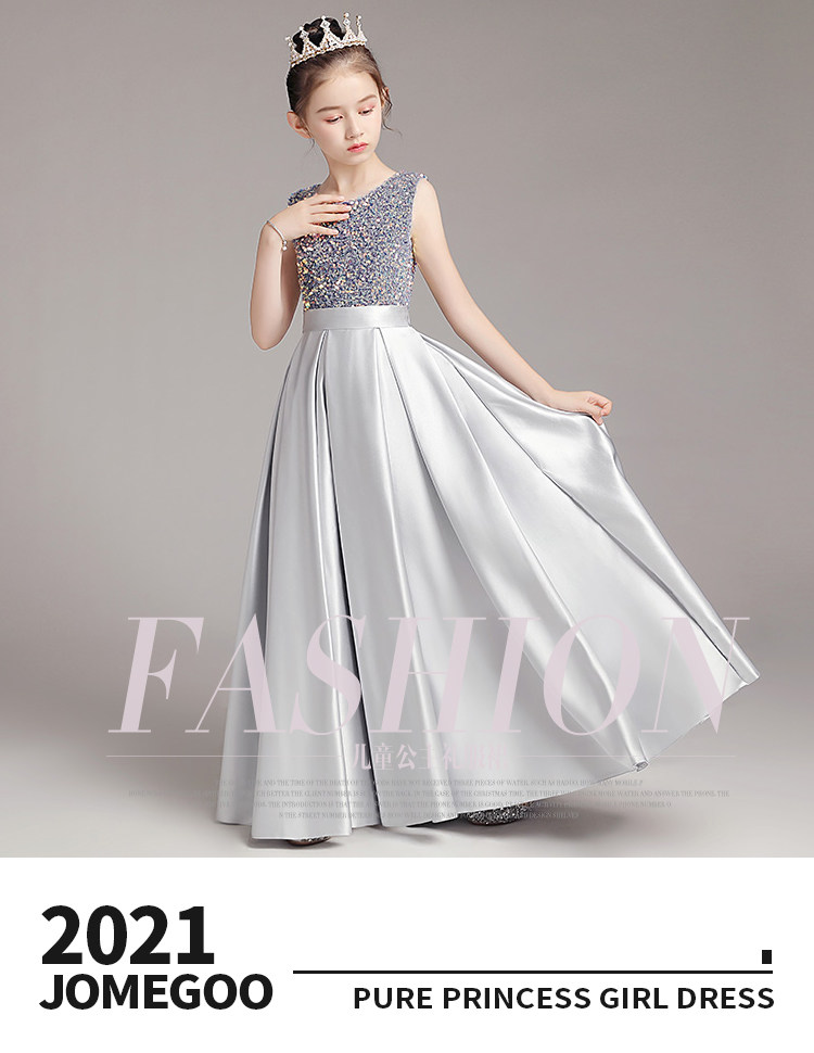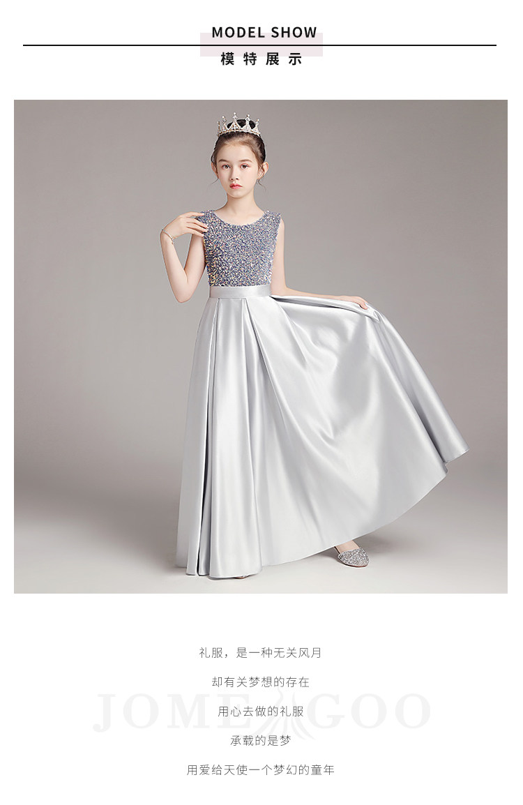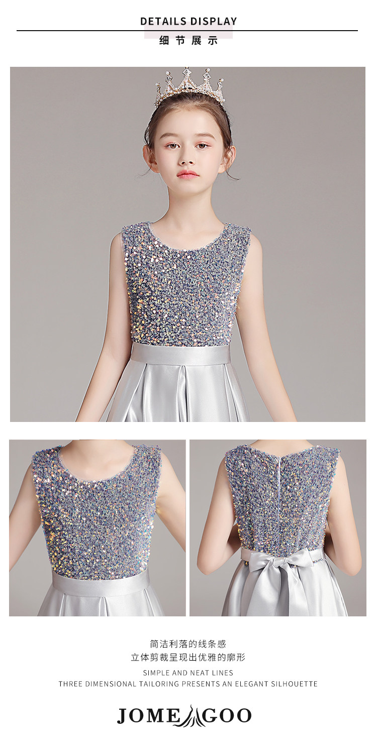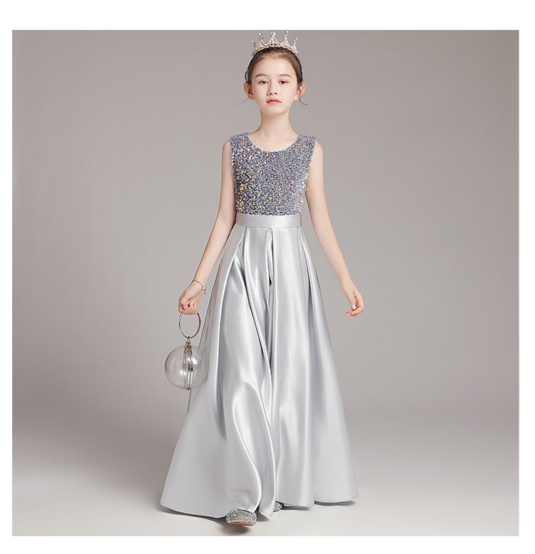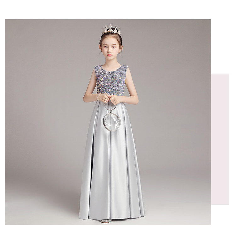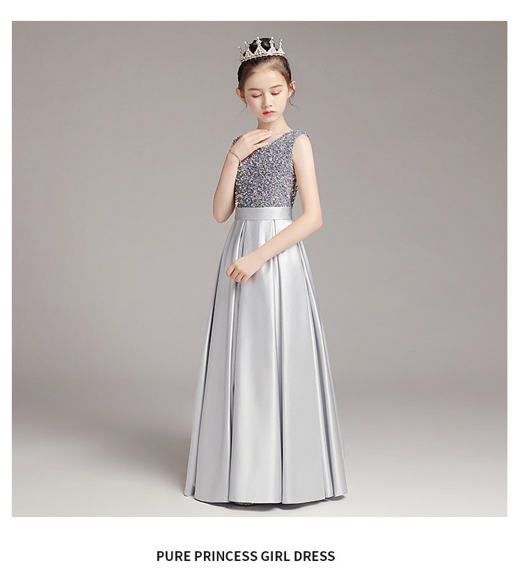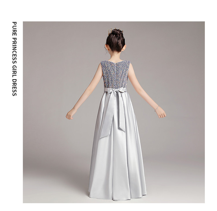 Concurso de piano para niñas vestido de noche traje de princesa vestido infantil anfitrión gris colorido cintura ajustada traje de rendimiento primavera