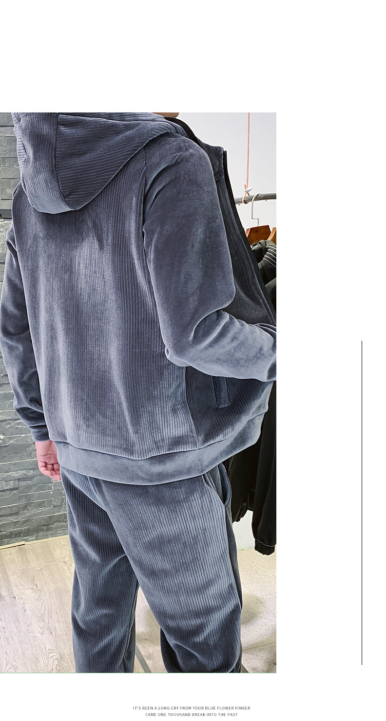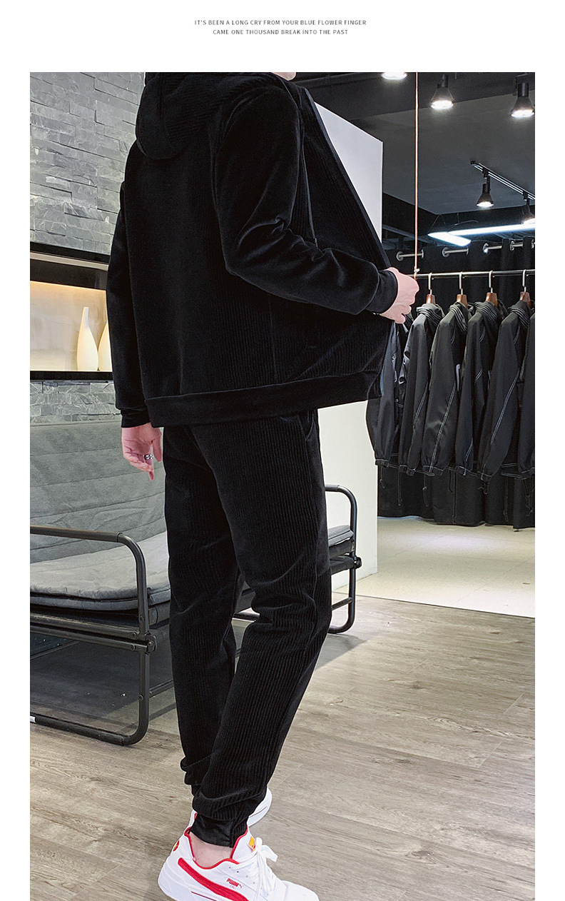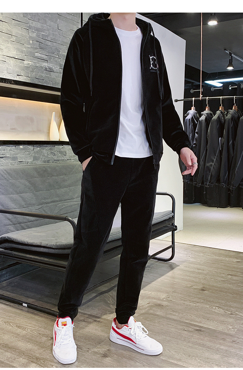 Traje deportivo para hombre Otoño e Invierno Nueva ropa deportiva de terciopelo dorado para hombre casual Chaqueta de punto con capucha de manga larga