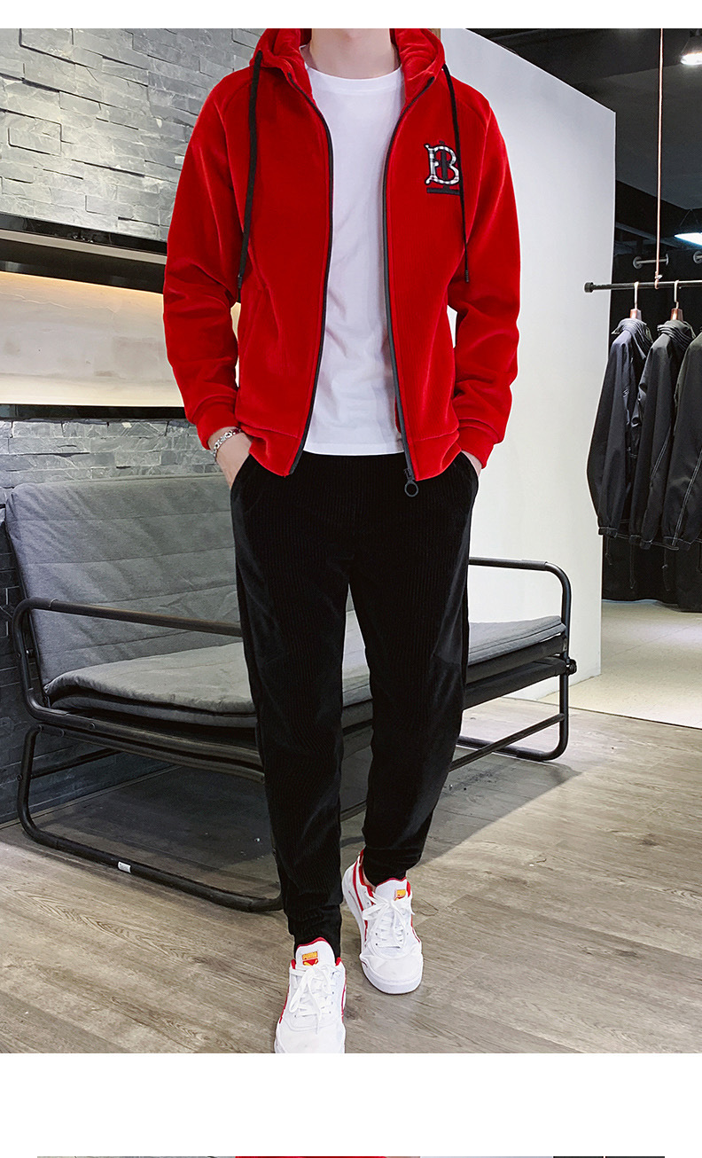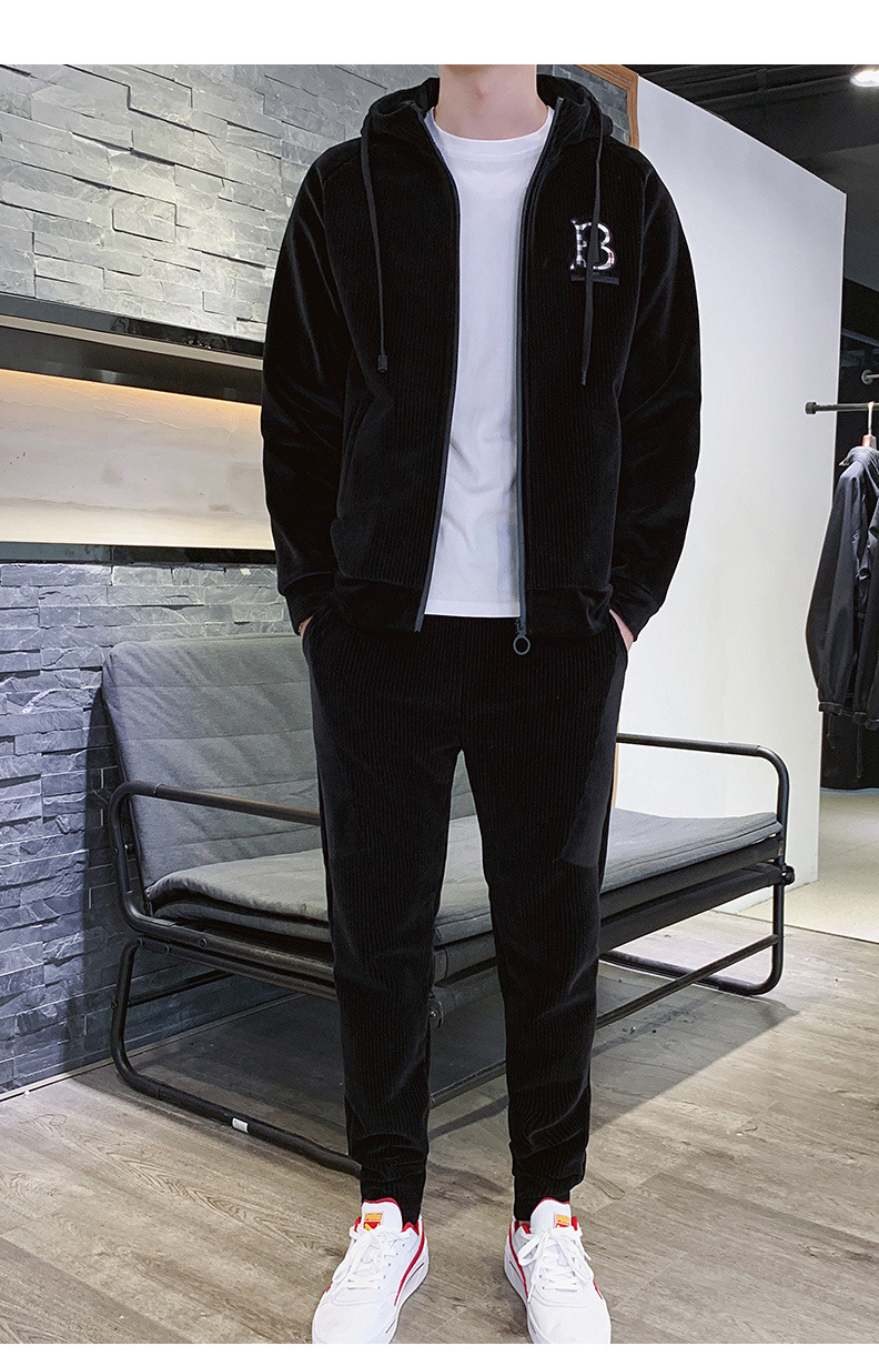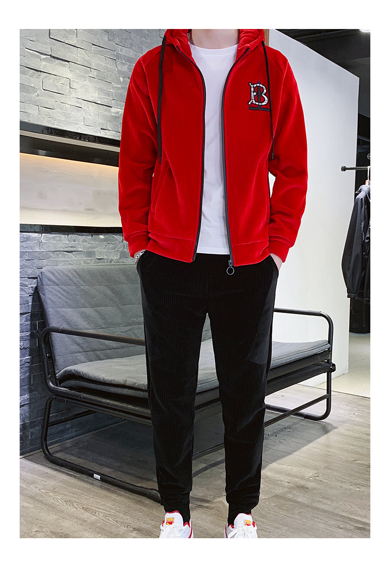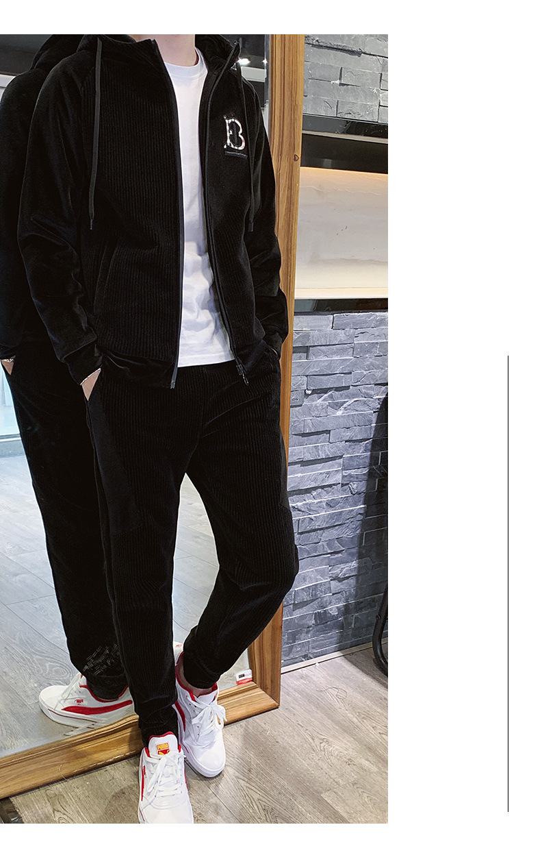 Traje deportivo para hombre Otoño e Invierno Nueva ropa deportiva de terciopelo dorado para hombre casual Chaqueta de punto con capucha de manga larga