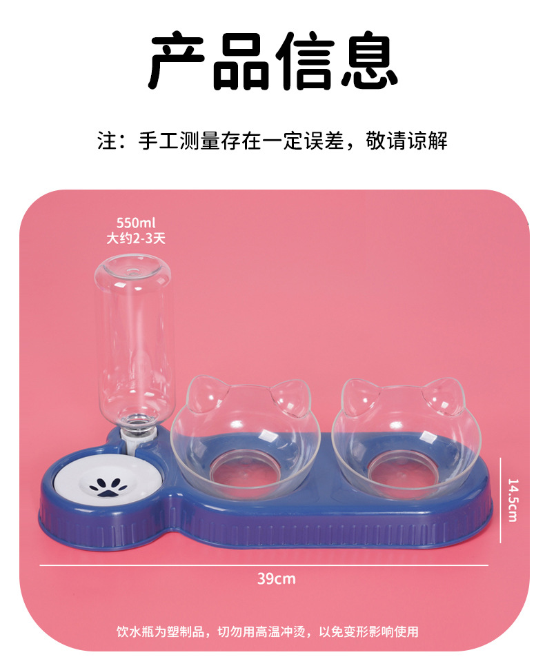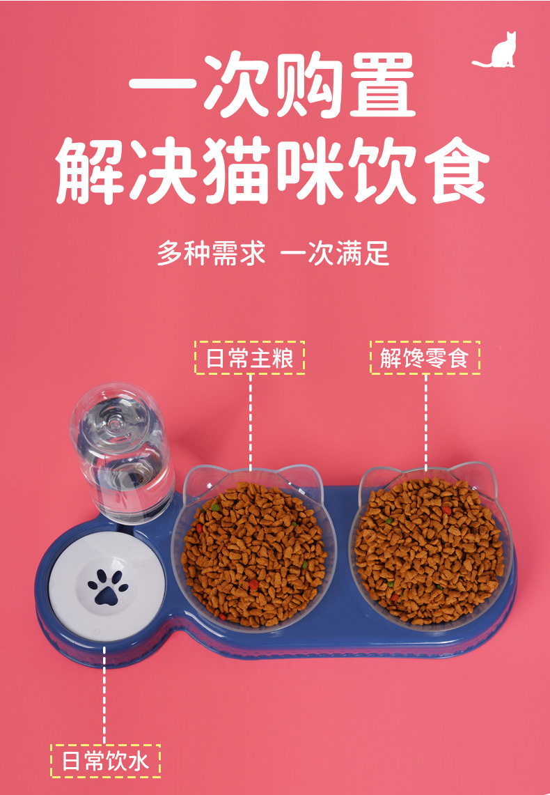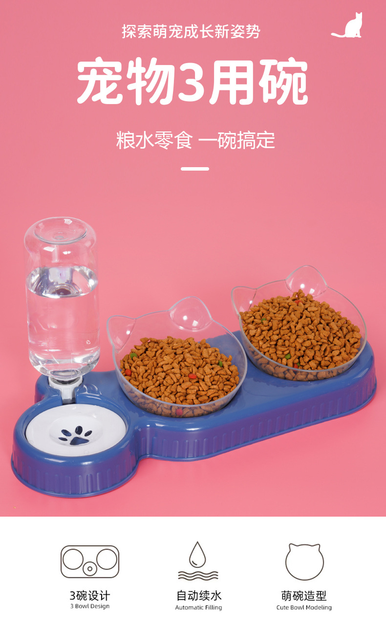 Cuenca del perro gato tazón alimentador de mascotas anti-golpe tres cuencos dispensador automático de agua de gran diámetro cuenca del gato fábrica directa al por mayor