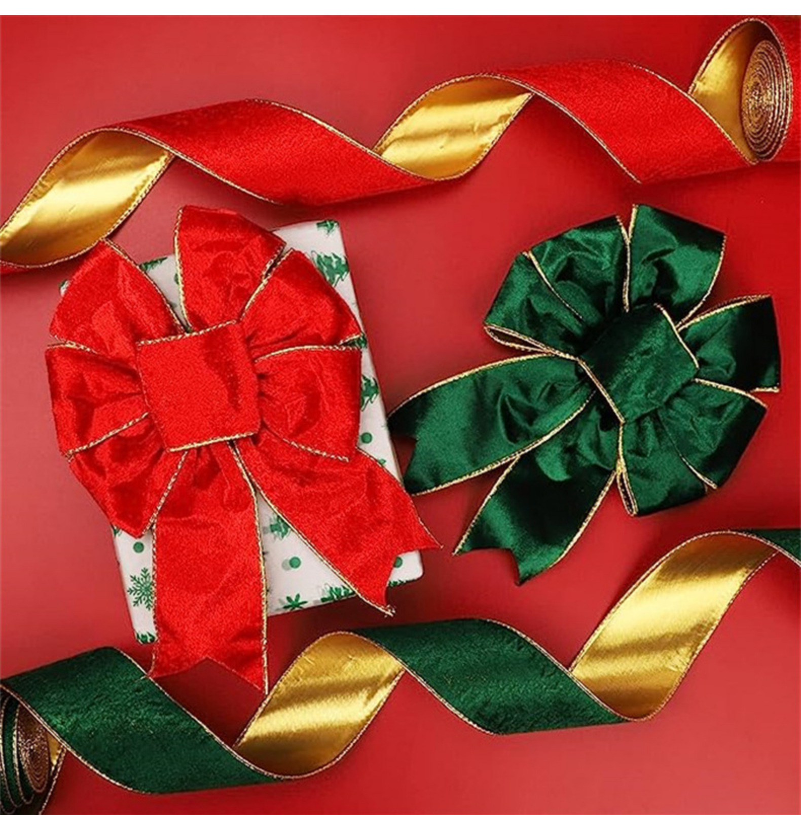 Transfronterizos clásicos rojos y verdes bordes de cinta de terciopelo decoración de árbol de Navidad dibujo cinta de arco de regalo cinta de terciopelo