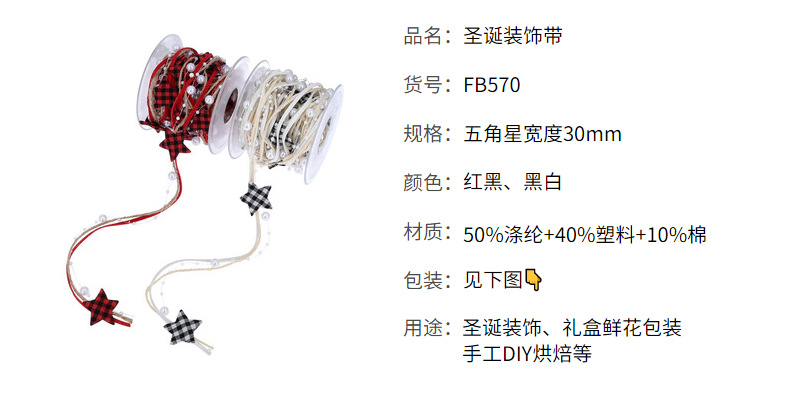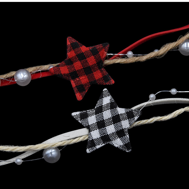 Cruz-frontera nueva Navidad Rojo Negro Plaid estrella de cinco puntas decoración con la decoración del árbol de Navidad DIY regalo correa a cuadros blanco y negro