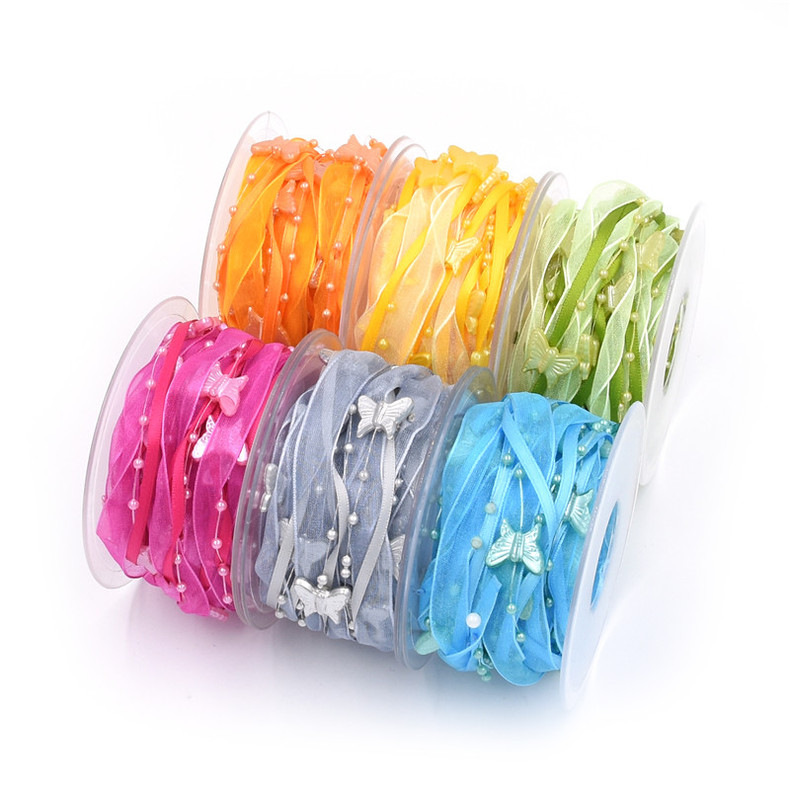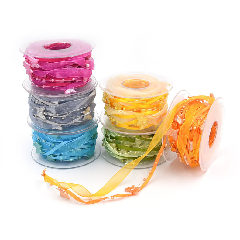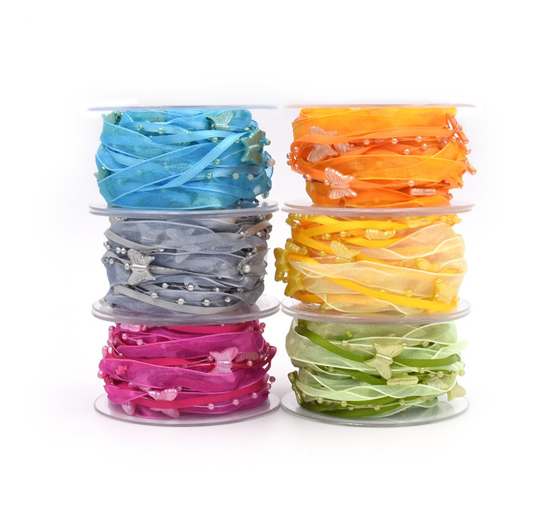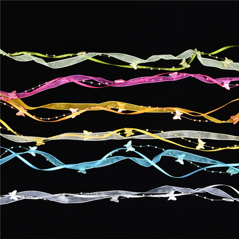 Nuevo transfronterizo primavera mariposa cadena de cuentas decoración cinta de mano material de jardinería de poliéster tejido a mano cinta