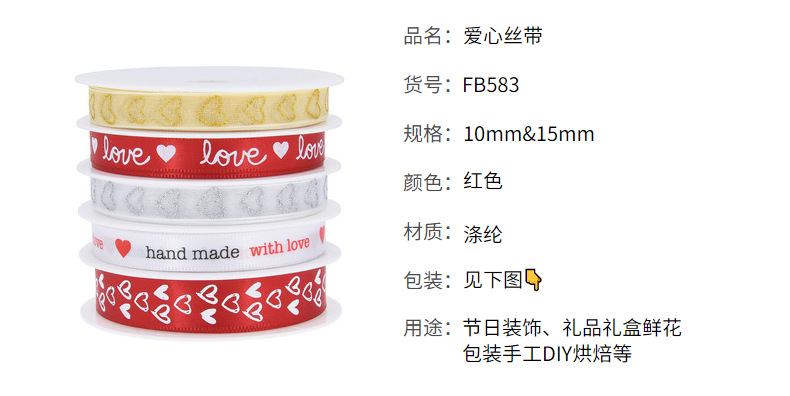 Amazon nueva boda transfronteriza Día de San Valentín conjunto de cinta impresa letra amorosa cinta regalo decoración de flores